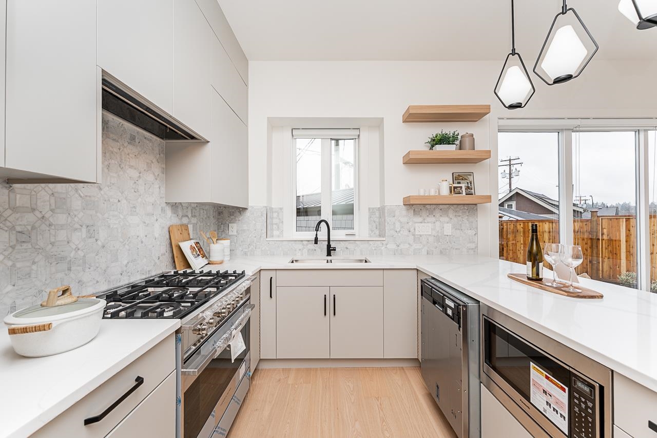 This stunning three-level, side-by-side duplex features a generously sized side yard and a thoughtfully designed layout. The main floor offers a bright living room, kitchen, and a convenient powder room. The second level includes two spacious bedrooms, each with its own ensuite, along with a dedicated laundry area. The third floor is dedicated to a luxurious primary bedroom showcasing breathtaking, million-dollar views of the mountains and West Vancouver. Open house on January 10th.and 11th, Saturday and ...
