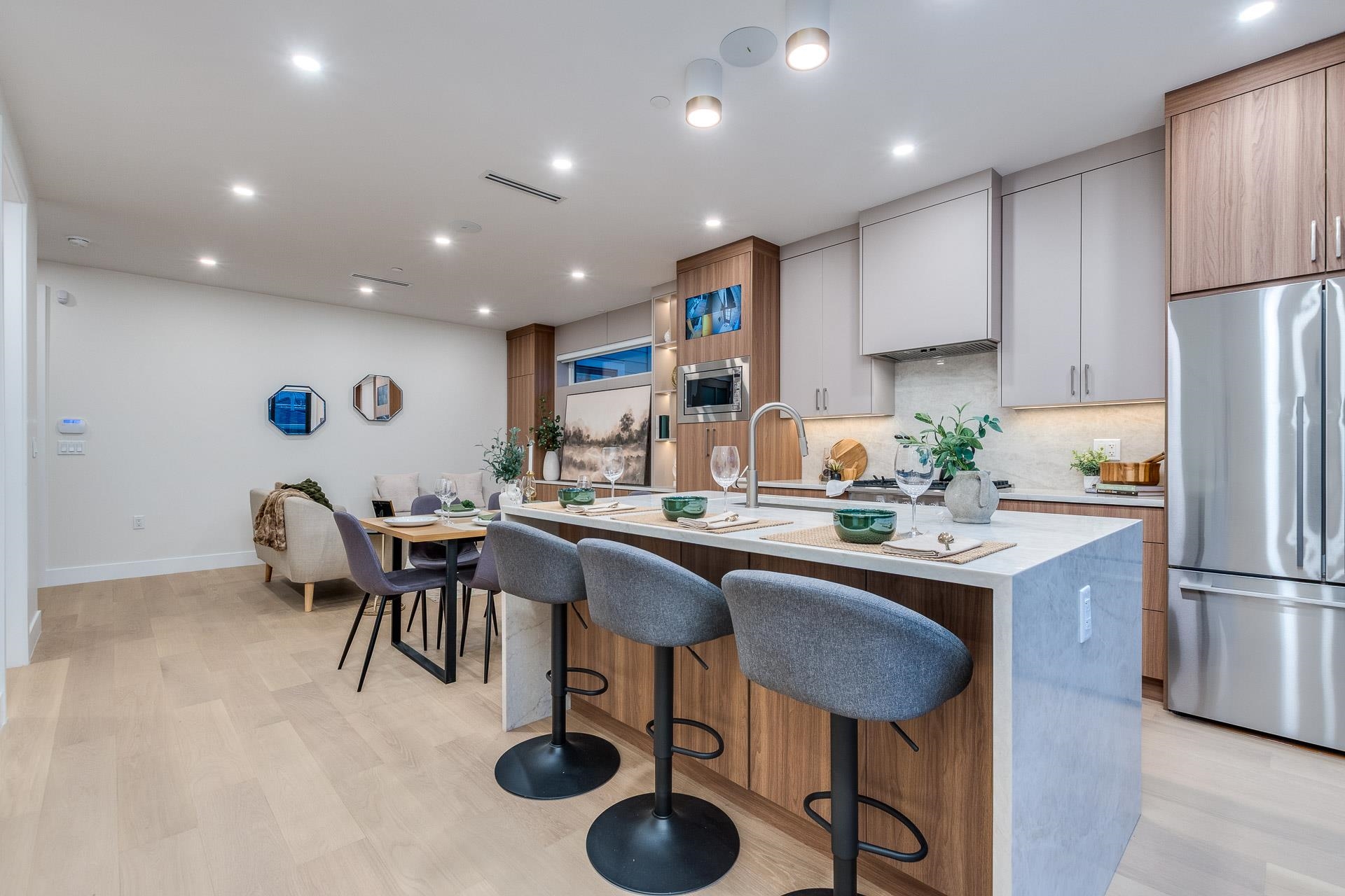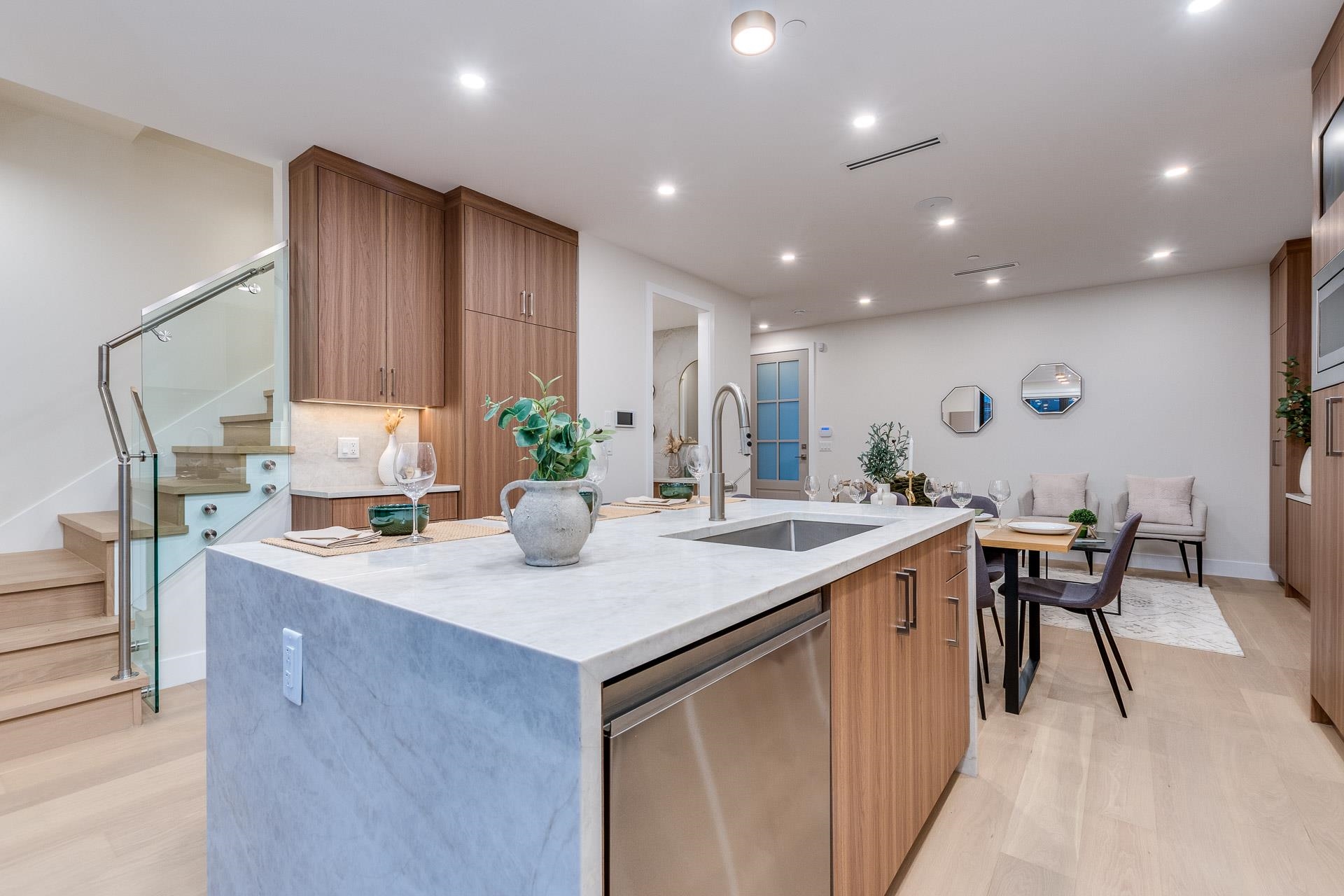 Experience modern living in this beautifully crafted 5-bed, 3.5-bath duplex in Killarney. The open-concept main floor features a chef-inspired kitchen with Fisher & Paykel appliances, quartz countertops, ample storage, custom millwork and built- ins. Accordion doors open to a covered deck and private backyard—perfect for indoor/outdoor living. Upstairs offers three spacious bedrooms, including a primary retreat with spa-like ensuite, walk-in closet, and private balcony. The lower level includes a self-conta...