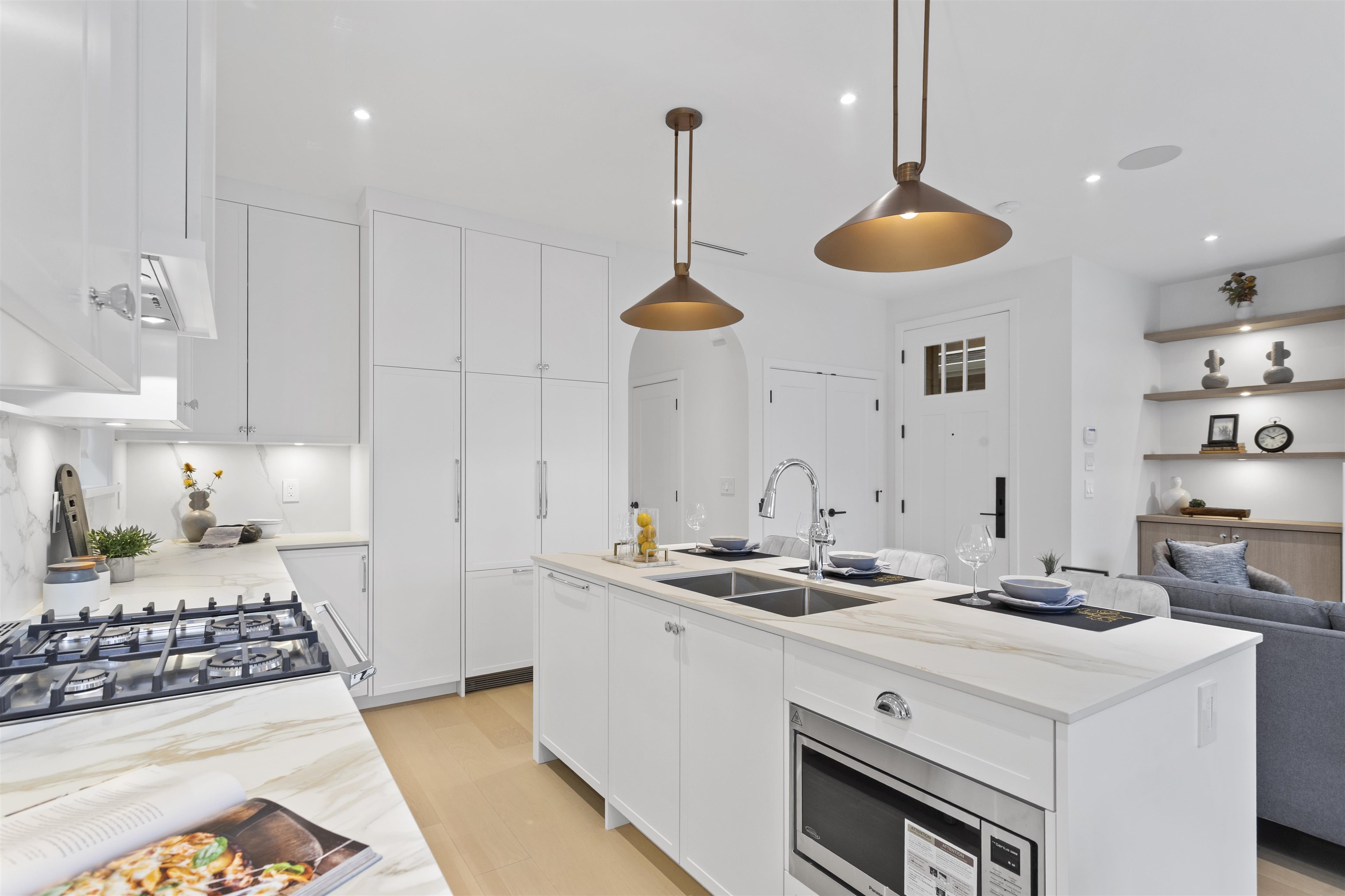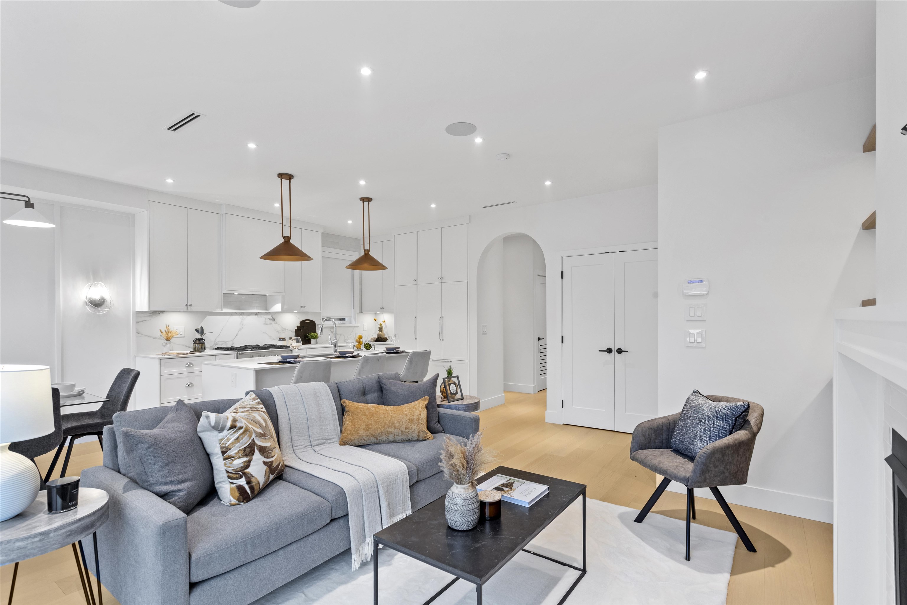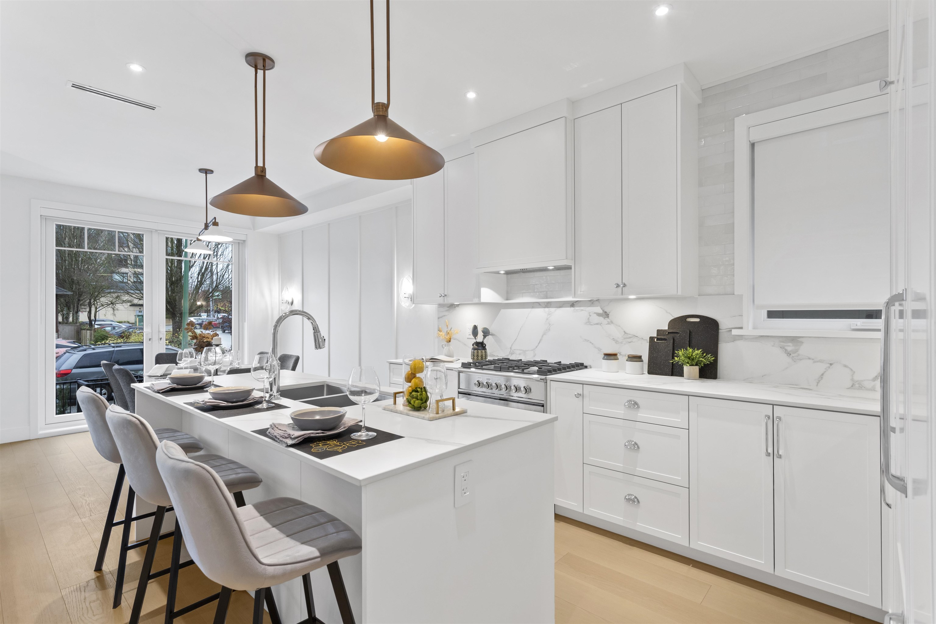Welcome to this farmhouse-style half duplex located in the heart of Vancouver Heights, built by Case Moderna. Offering under 1,900 sq ft of beautifully finished living space. The open-concept main floor showcases wide plank hardwood flooring thru out the main & upper floor, stone kitchen countertops, wainscoting walls and premium built-in Fisher & Paykel appliances, plus gas washer, dryer, stove and fireplace. French doors off the main-floor open to the outdoors, built-in speakers, security cameras, HRV, ga...