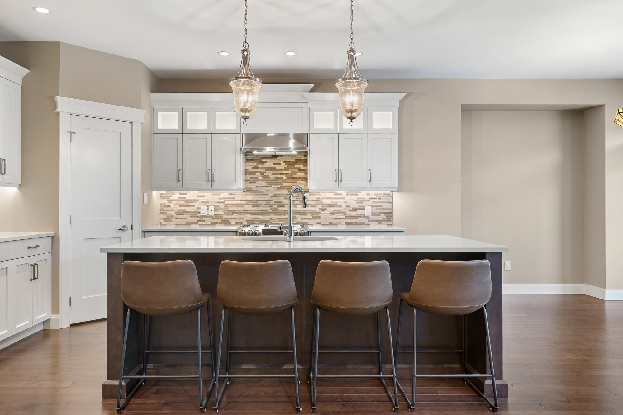 SPECTACULAR rancher in the sought-after Riverstone Estates community! This wheelchair accessible home offers an impressive open concept layout w/hardwood floors throughout. The spacious kitchen features a pantry, high-end SS appliances, gas range, quartz counters, & a generous island w/eating bar, flowing seamlessly into the dining & living areas — IDEAL for entertaining. Enjoy the serene back patio & private fenced yard. The living room boasts vaulted 9’ ceiling w/beams, gas f/p, & MASSIVE windows allowing...