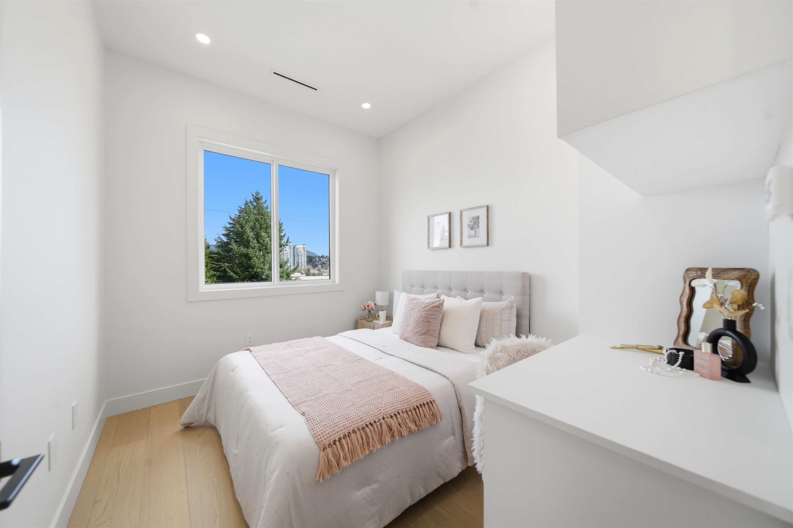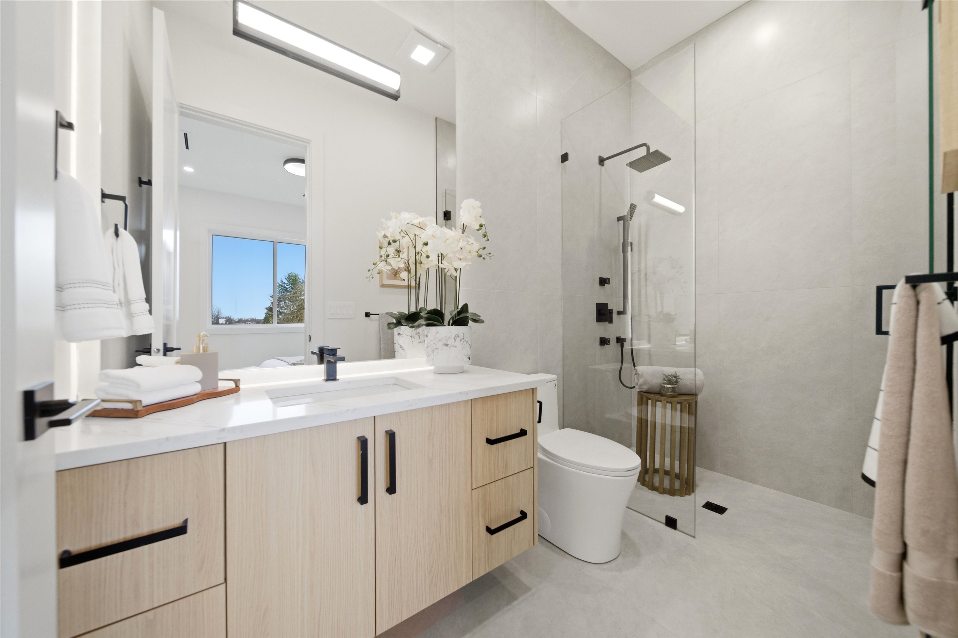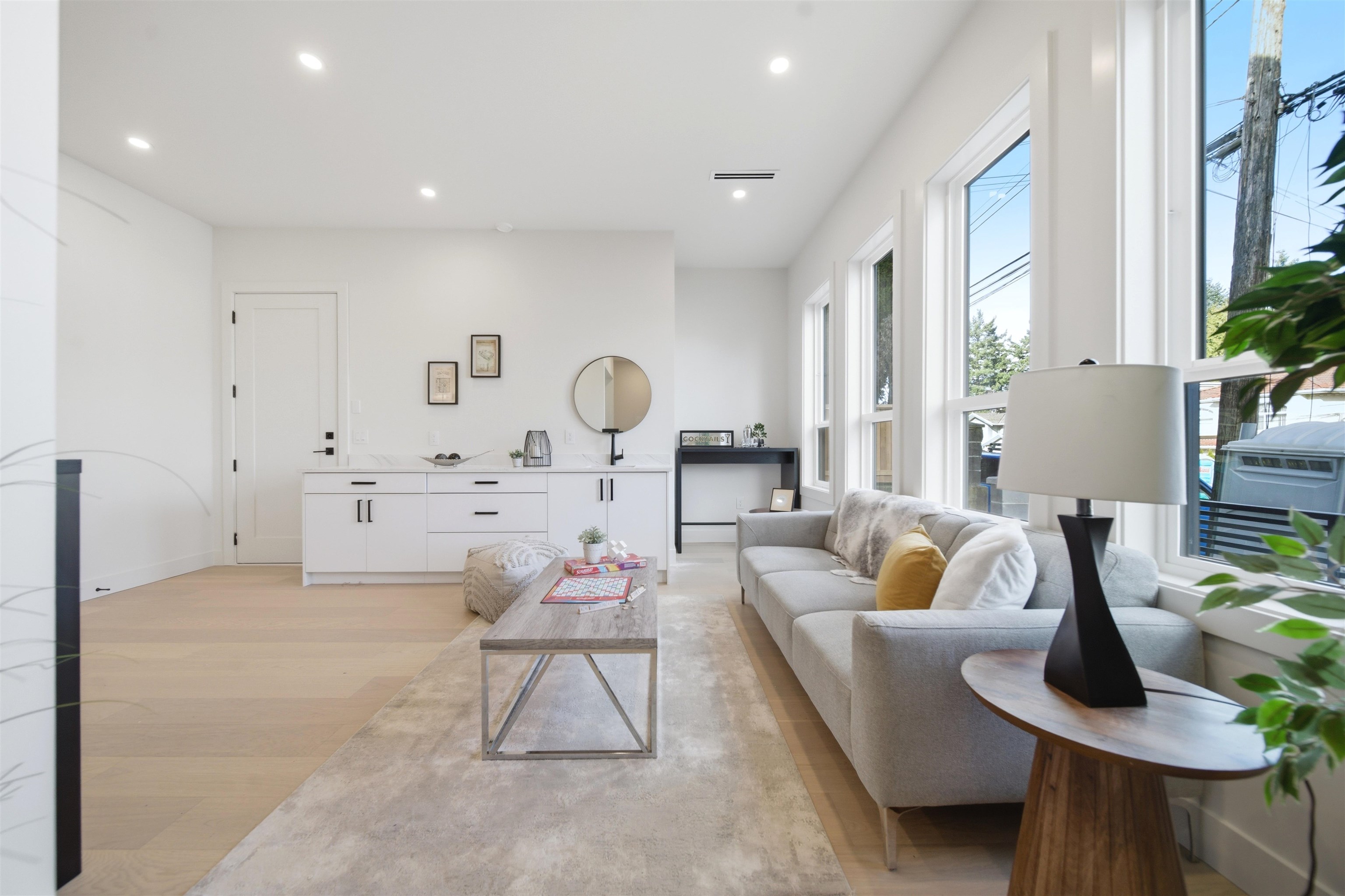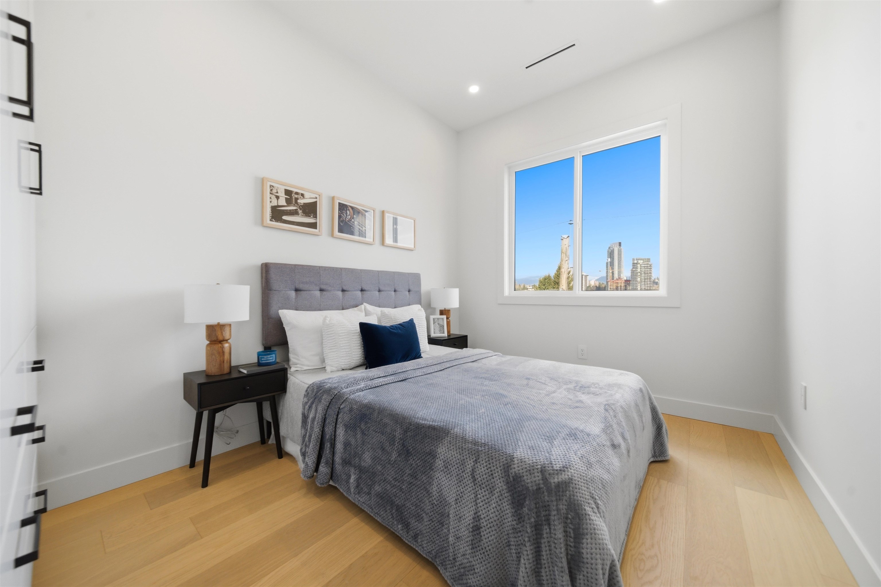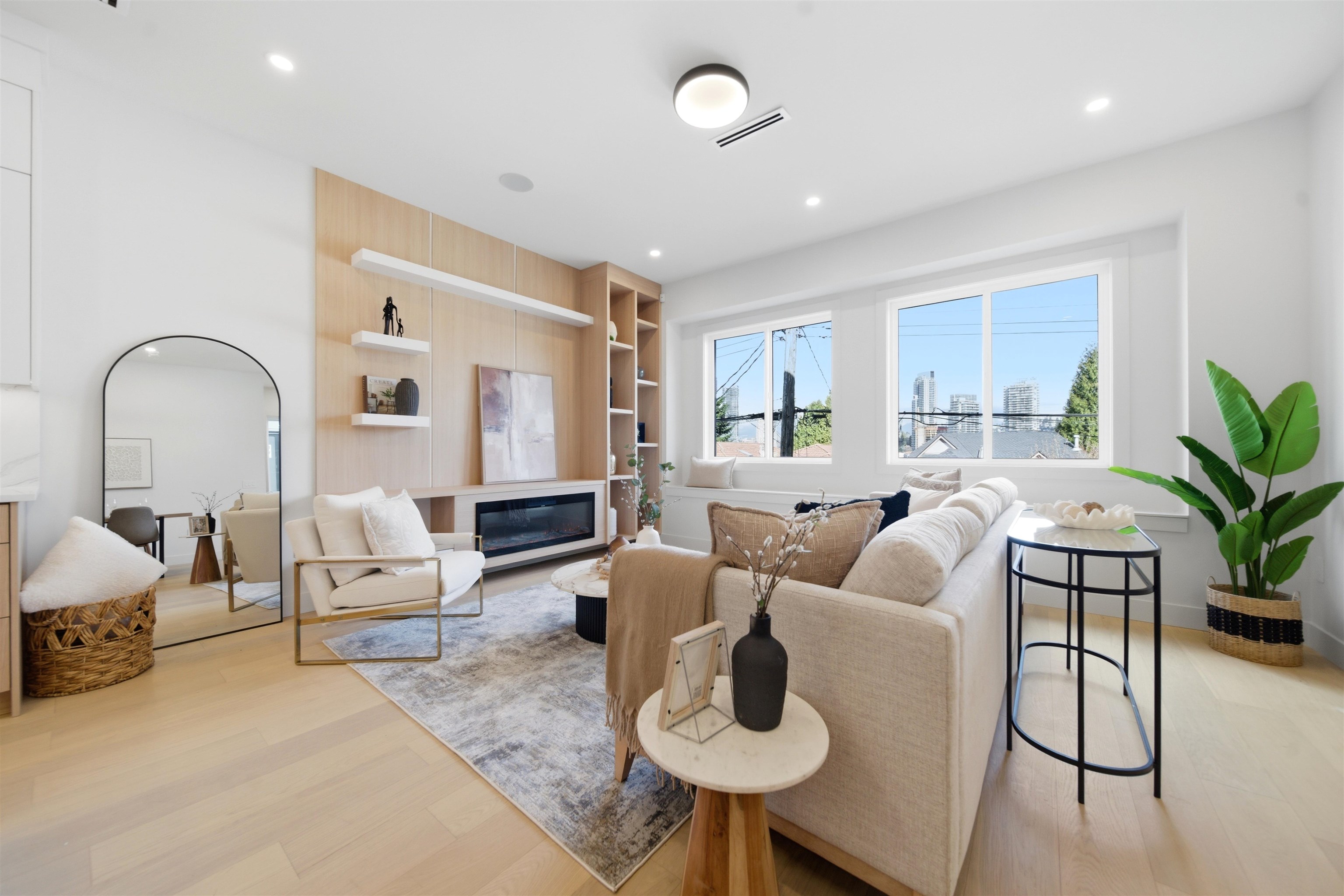 Welcome to The Manor Collection, a boutique development of six modern duplex homes in the heart of Burnaby. This brand new 5 bed, 3.5 bath residence offers approx. 2,151 sq ft of thoughtfully designed living with 10-ft ceilings on every level, engineered hardwood flooring, and custom white oak millwork. The open-concept kitchen features SMEG appliances, quartz countertops, and designer black hardware, flowing into a bright living space with an elegant electric fireplace feature wall. Enjoy radiant floor hea...