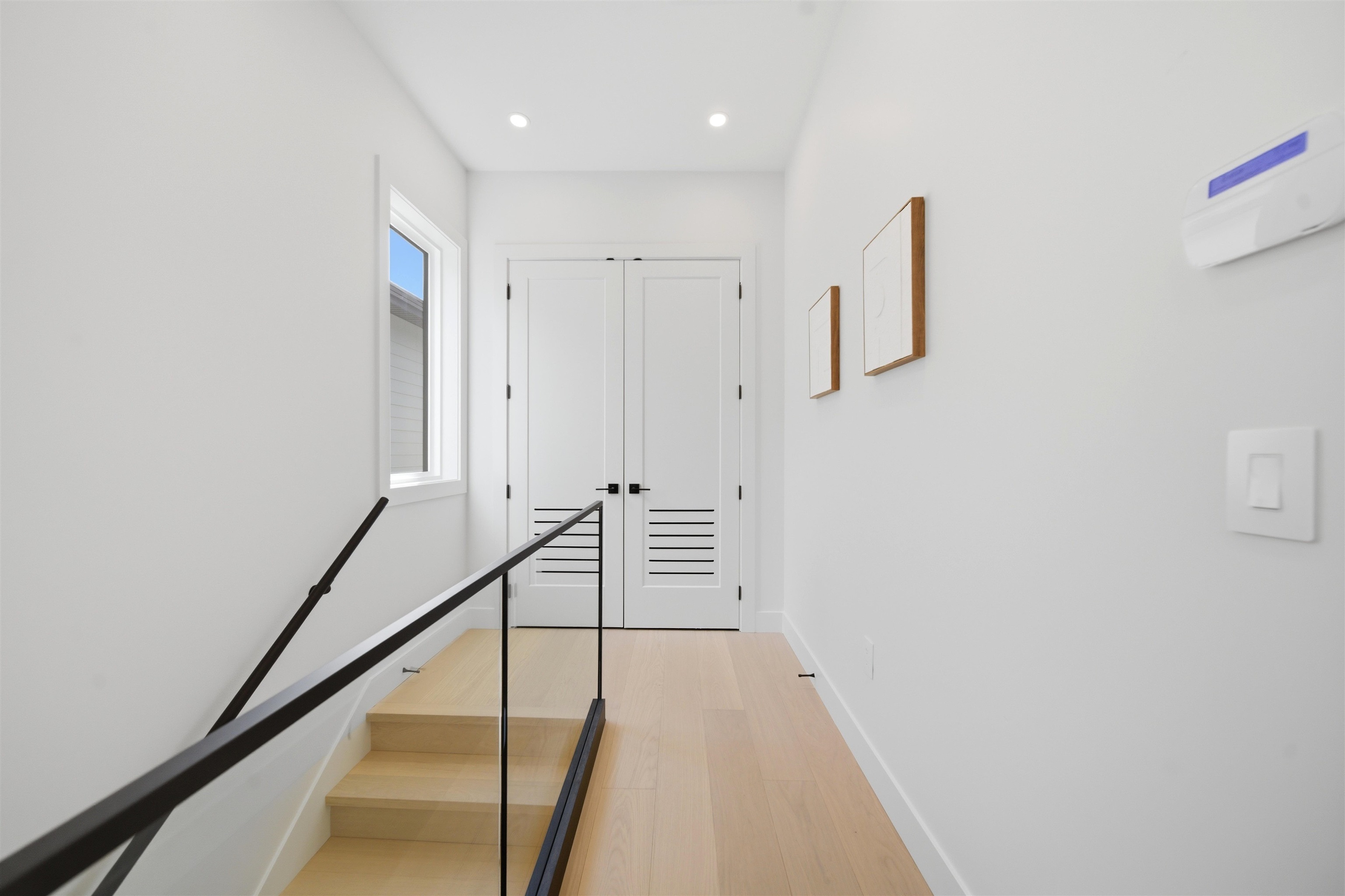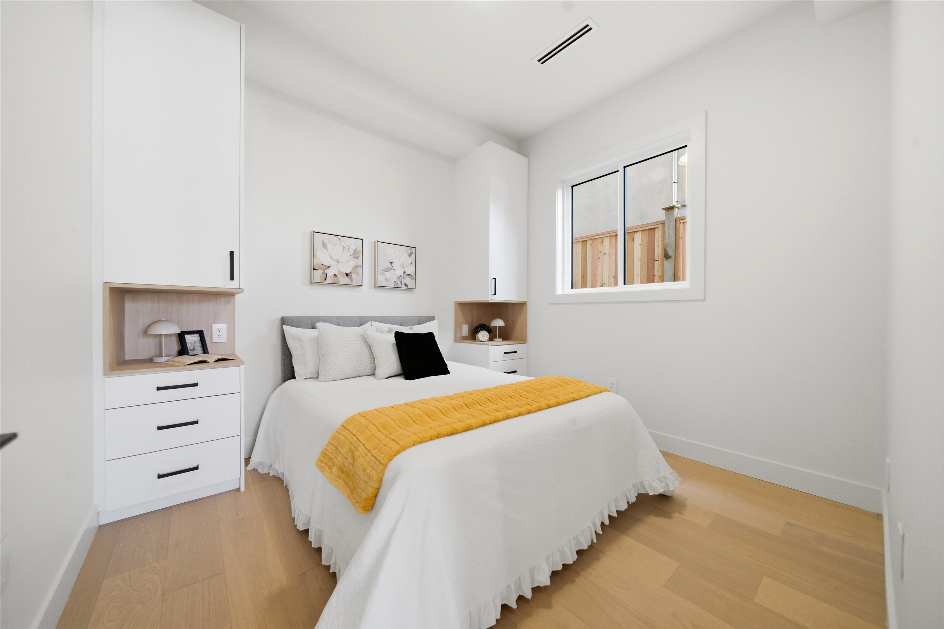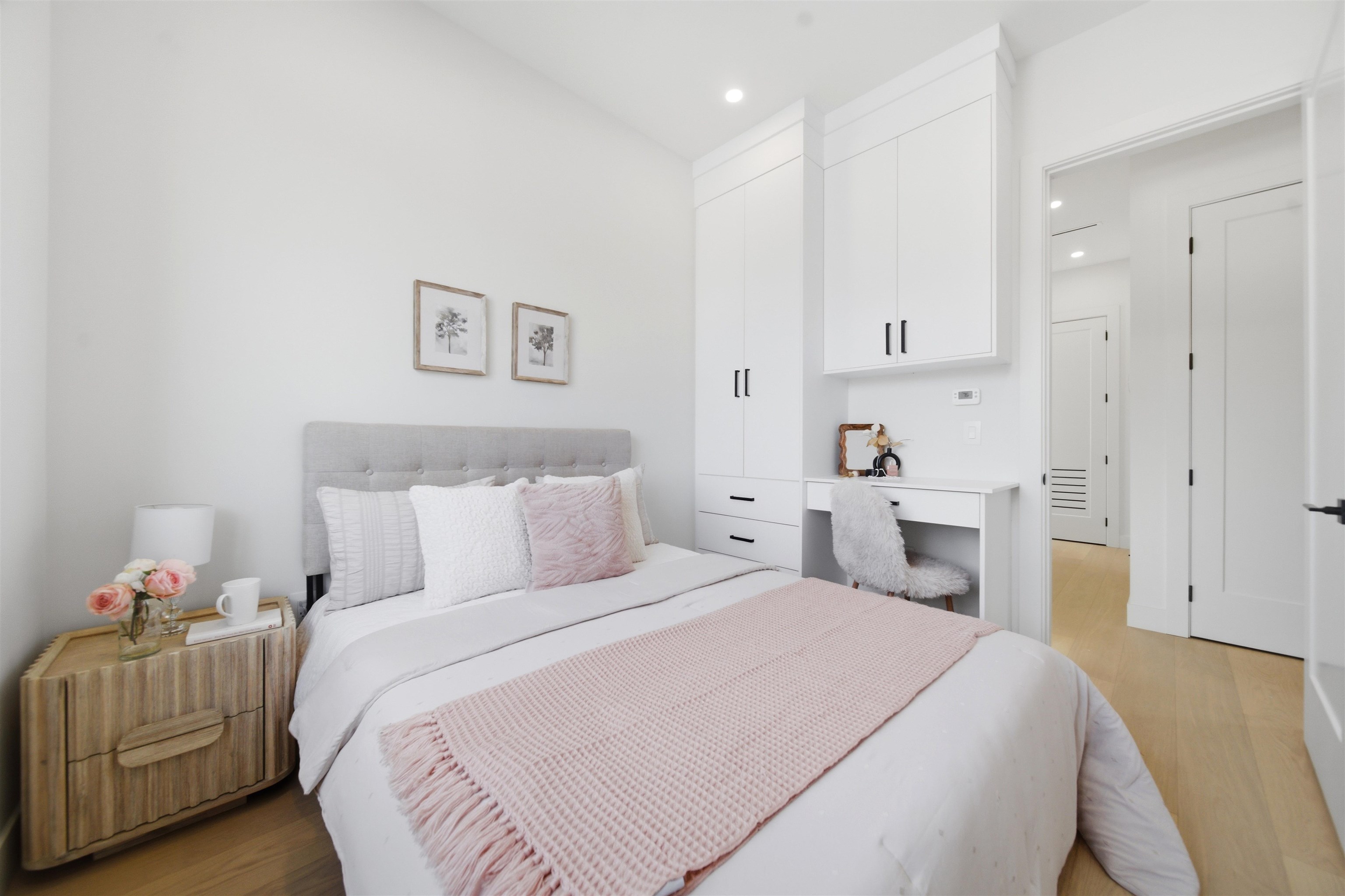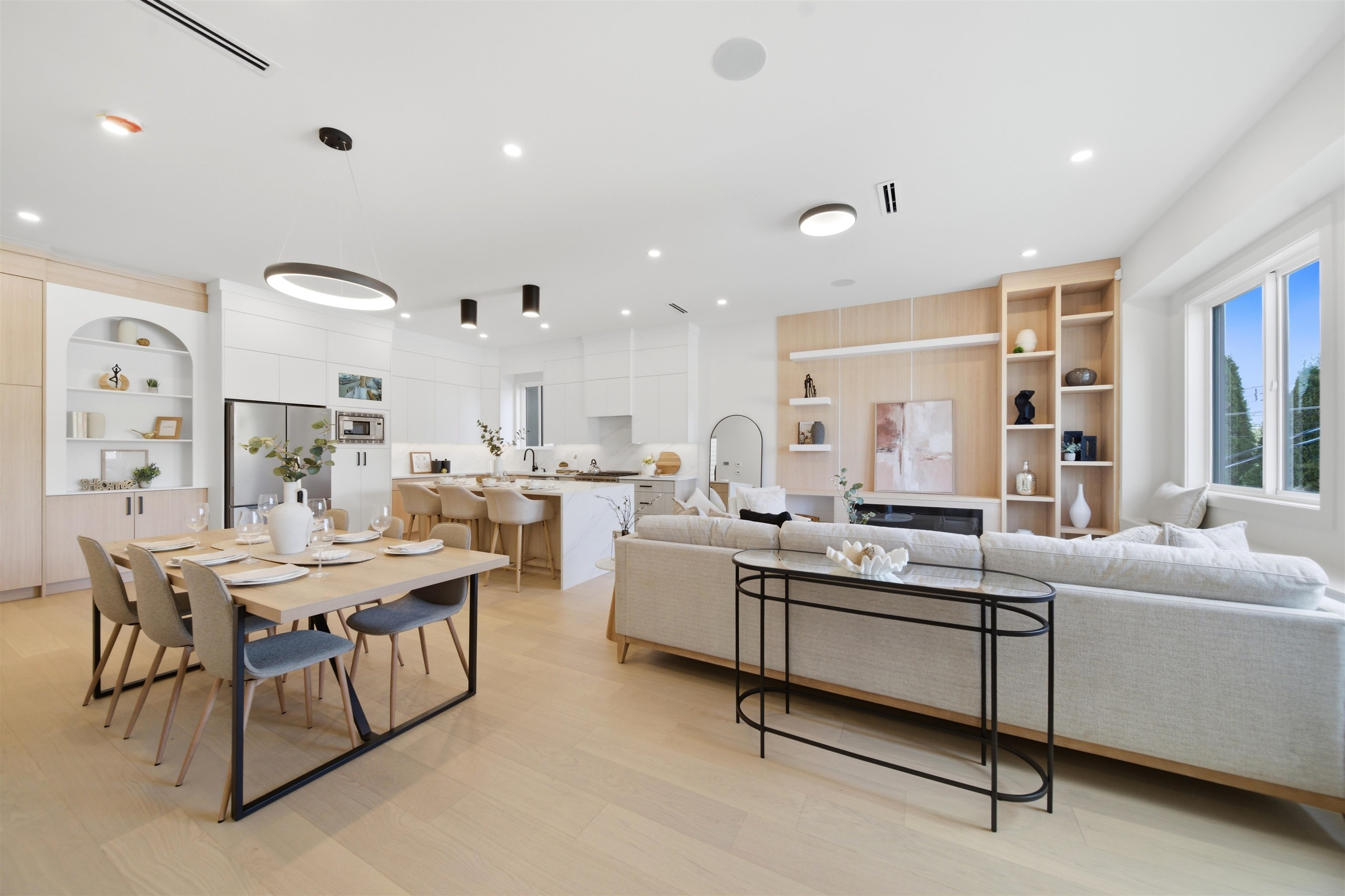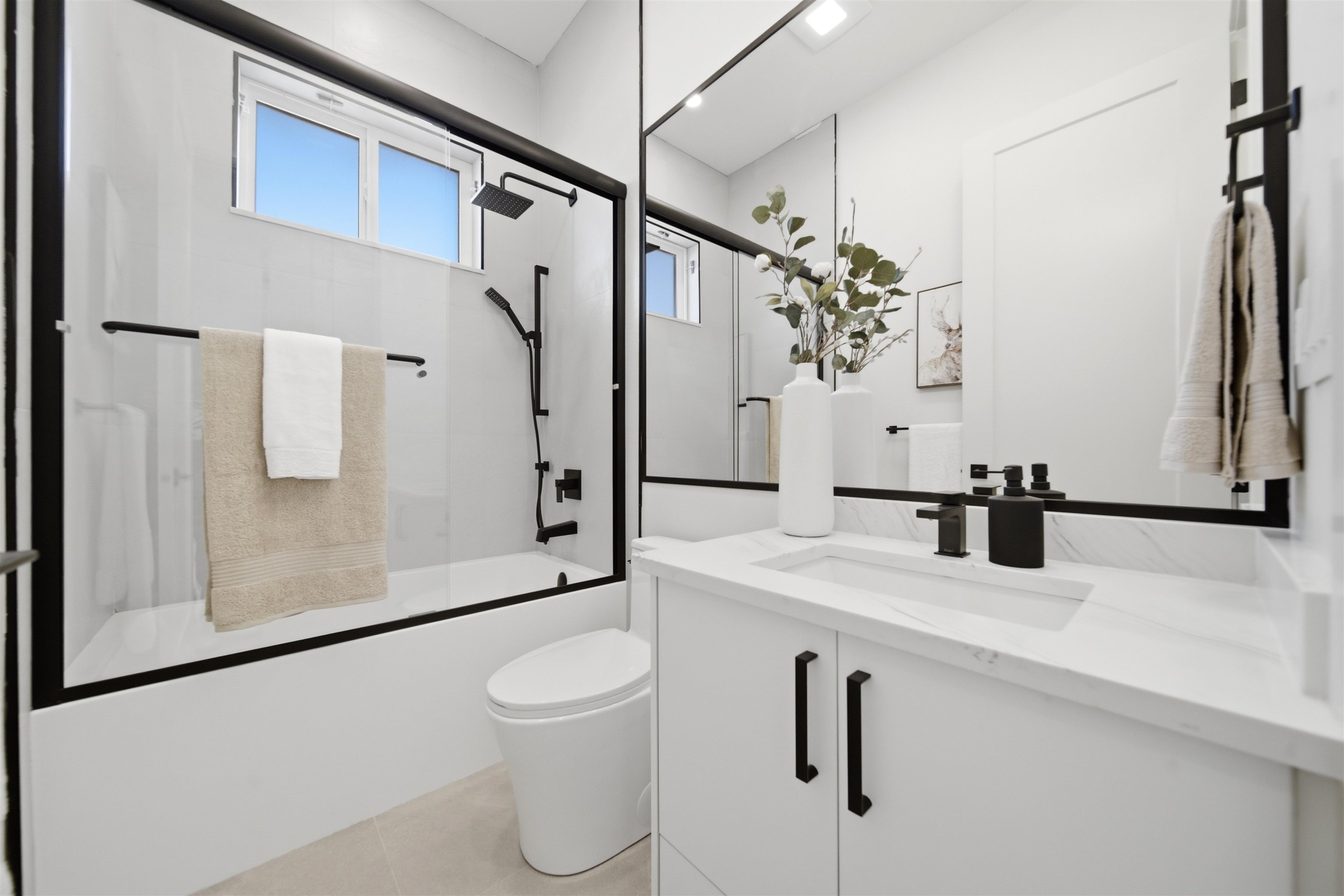 Welcome to The Manor Collection, a boutique development of six modern duplex homes in the heart of Burnaby. This brand new 5 bed, 3.5 bath residence offers approx. 2,151 sq ft of thoughtfully designed living with 10-ft ceilings on every level, engineered hardwood flooring, and custom white oak millwork. The open-concept kitchen features SMEG appliances, quartz countertops, and designer black hardware, flowing into a bright living space with an elegant electric fireplace feature wall. Enjoy radiant floor hea...