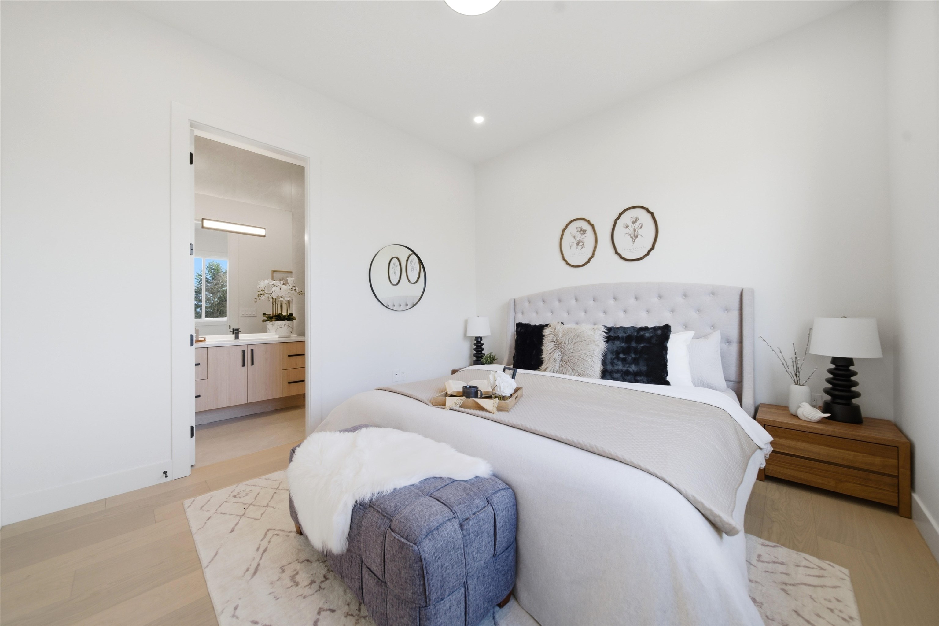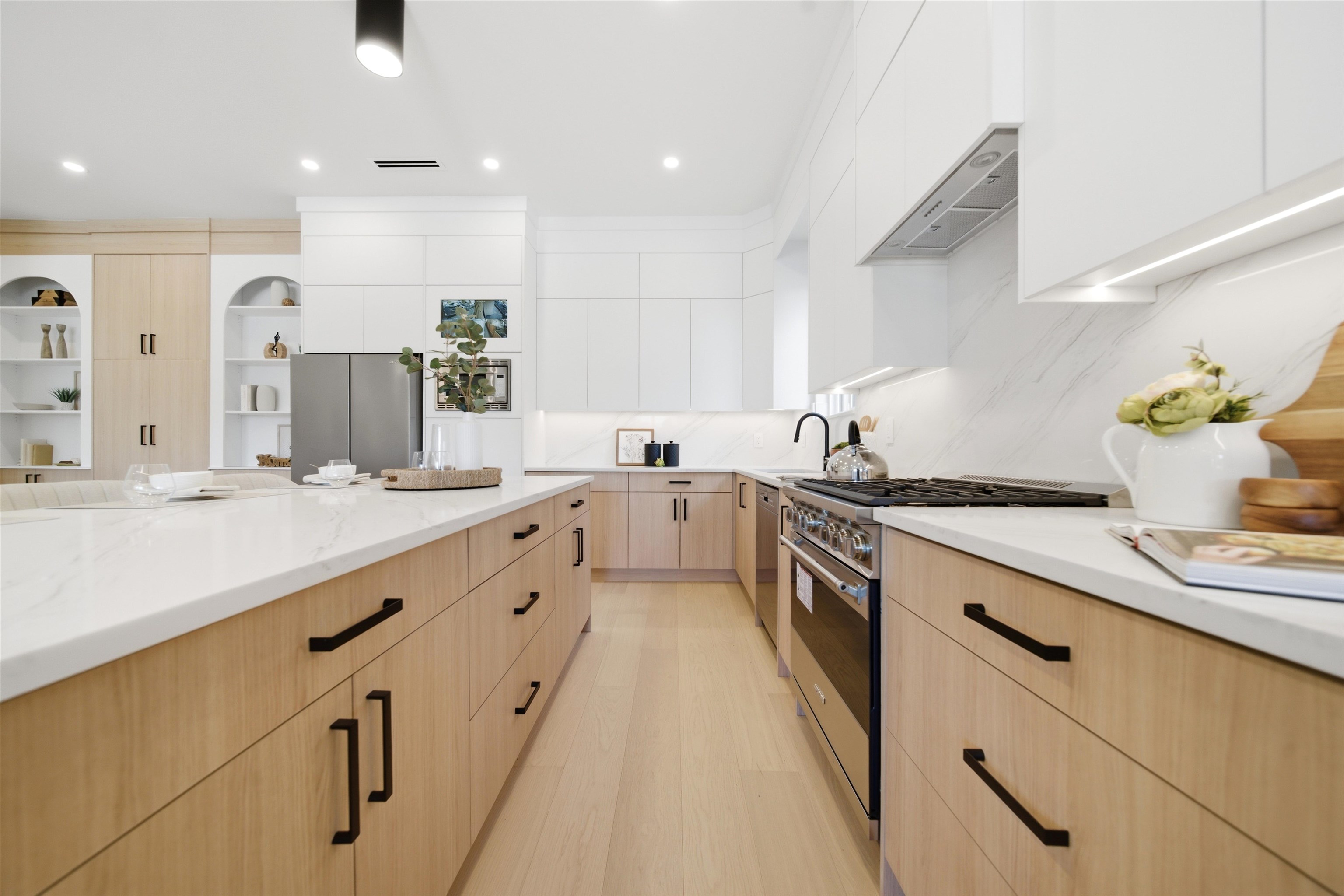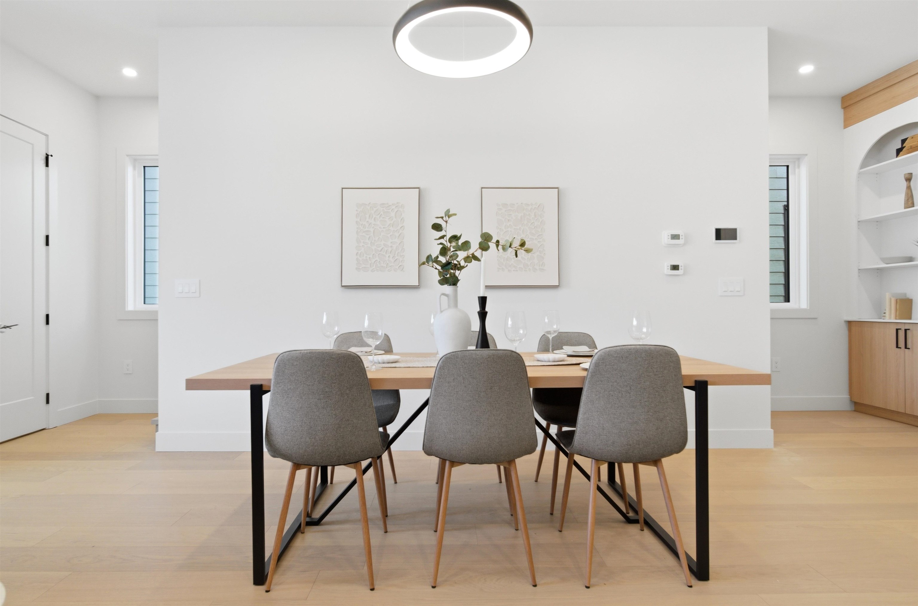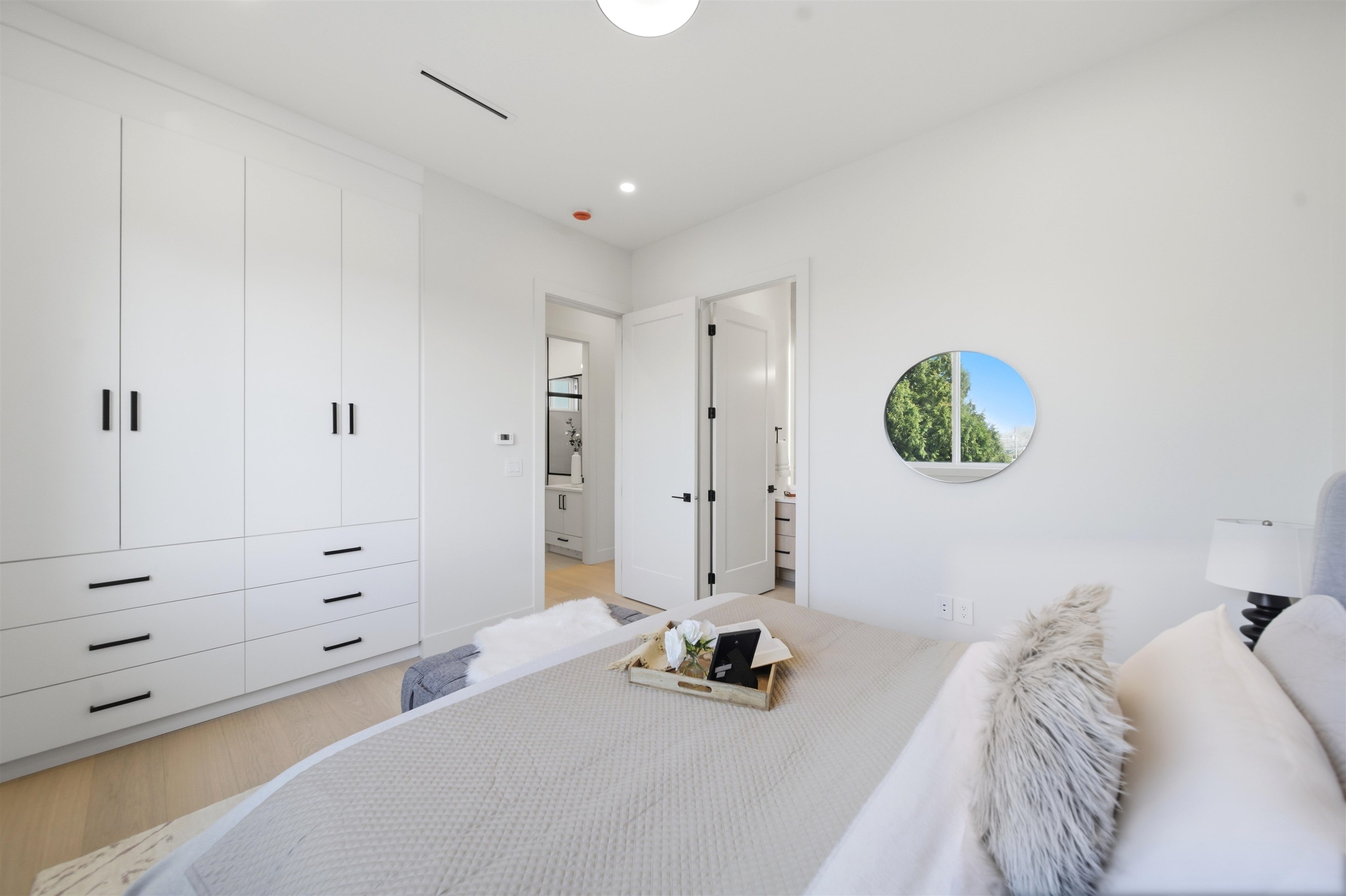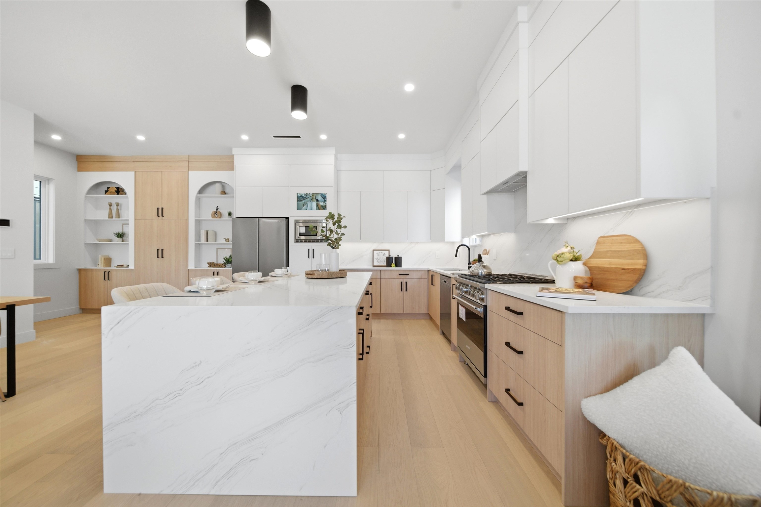 Welcome to The Manor Collection, a boutique development of six modern duplex homes in the heart of Burnaby. This brand new 5 bed, 3.5 bath residence offers approx. 2,151 sq ft of thoughtfully designed living with 10-ft ceilings on every level, engineered hardwood flooring, and custom white oak millwork. The open-concept kitchen features SMEG appliances, quartz countertops, and designer black hardware, flowing into a bright living space with an elegant electric fireplace feature wall. Enjoy radiant floor hea...