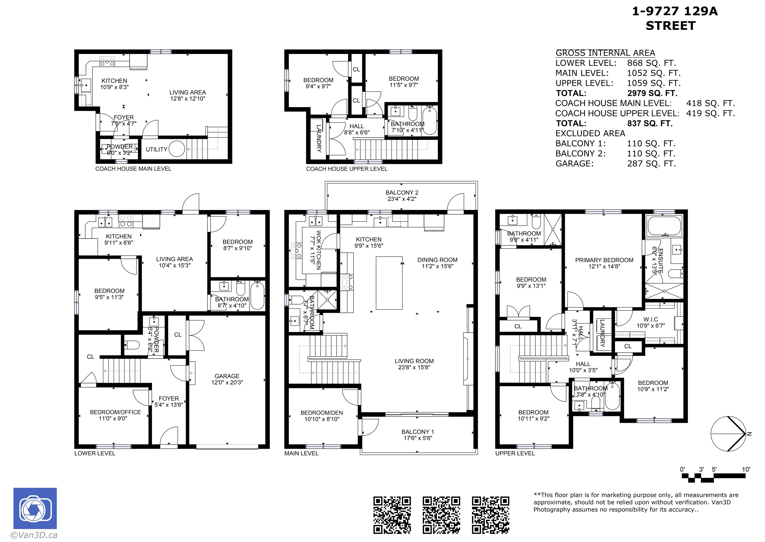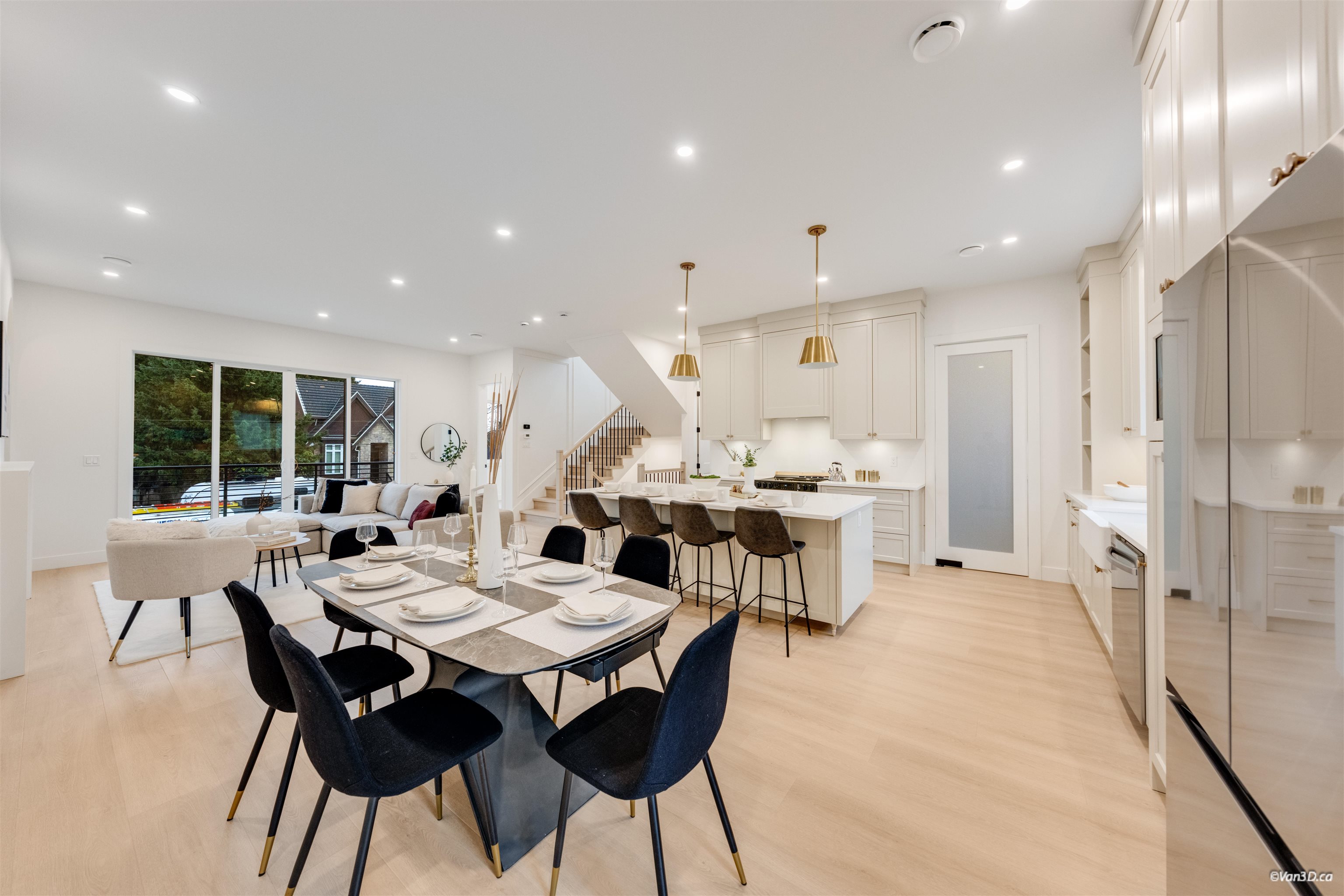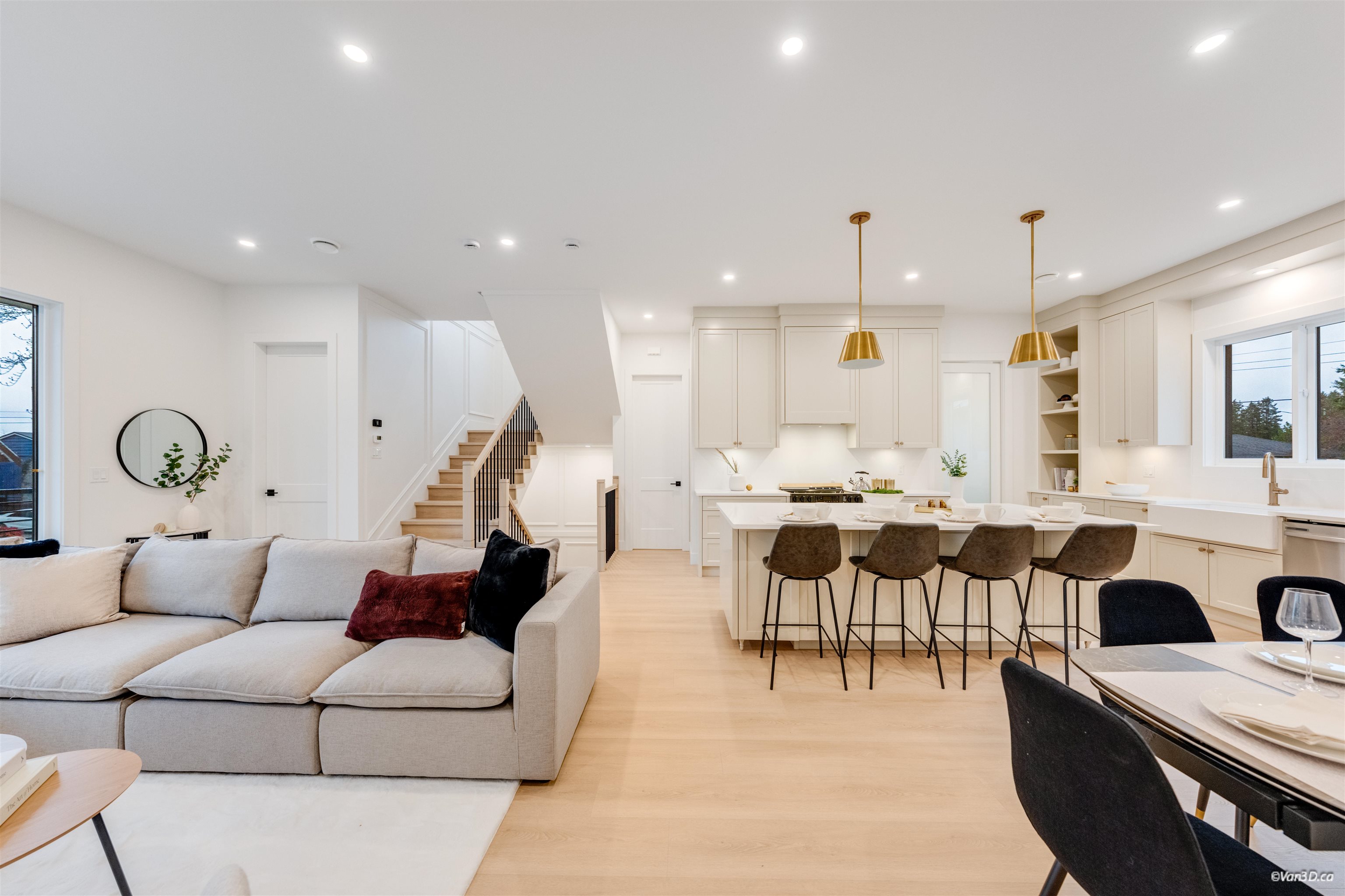 Brand-new 1/2 duplex offering approx. 3,000 Sqft. plus an 800 Sqft. 2-level coach house with back-lane access. This rare 10-bed, 8-bath property includes two legal suites - a 2-bed basement suite and a 2-bed 1.5 bathroom 2 level coach house ideal for rental income or multi-gen living. The main floor features a bright layout including a spice kitchen and a bonus bedroom/den. Upstairs offers 4 spacious bedrooms and 3 full baths. Below, an office/bedroom is reserved for upstairs use alongside the legal 2 bedro...