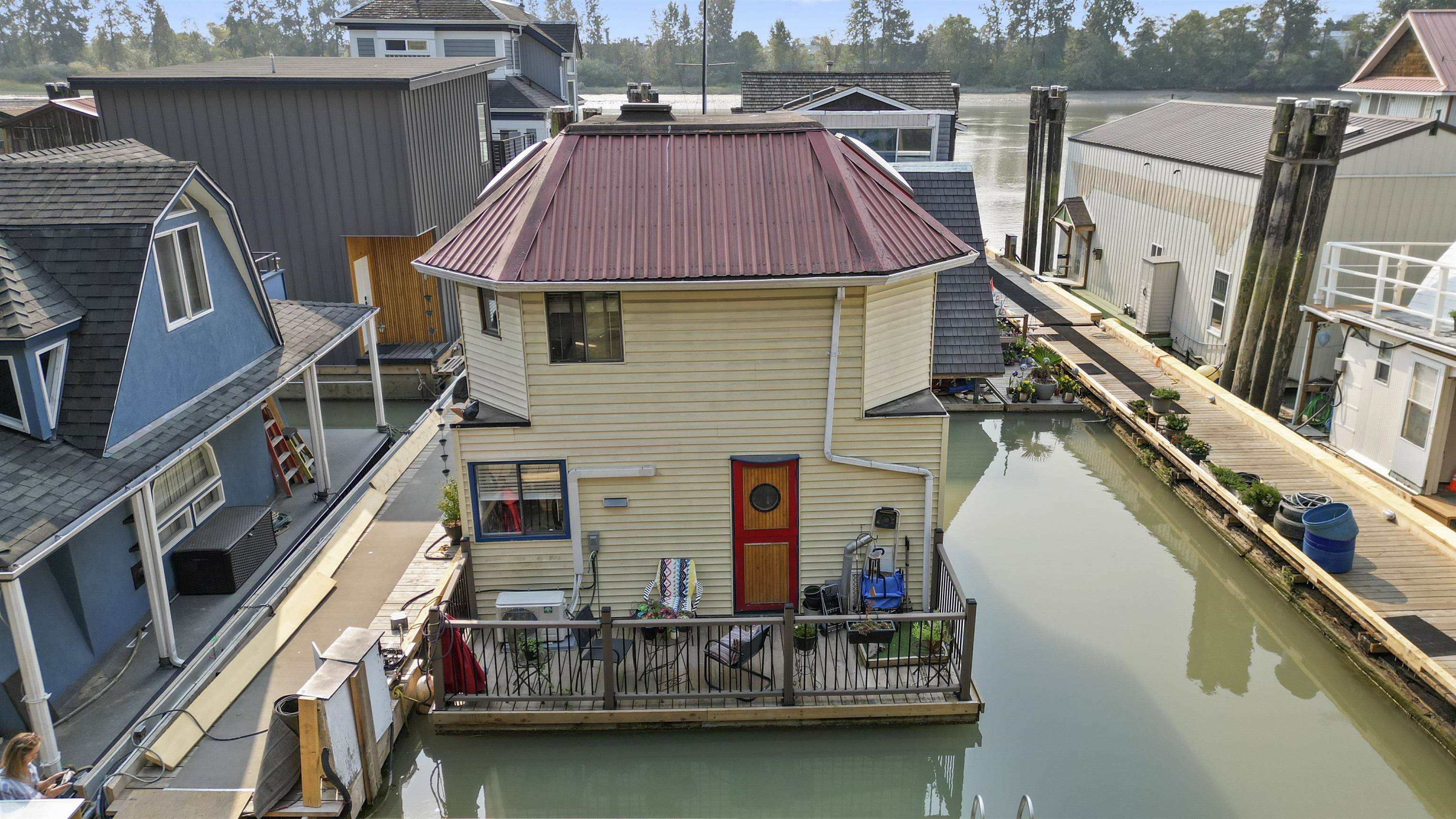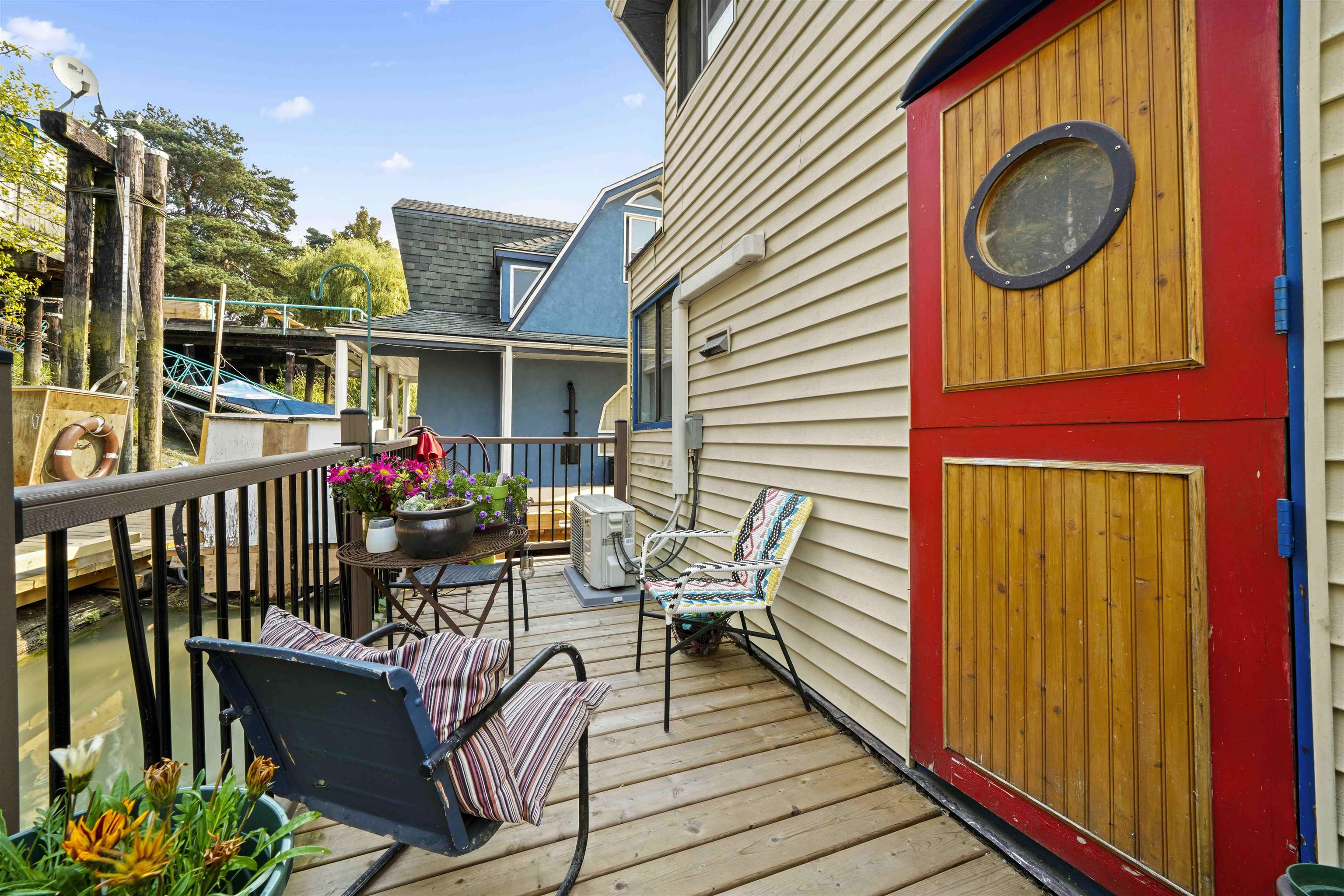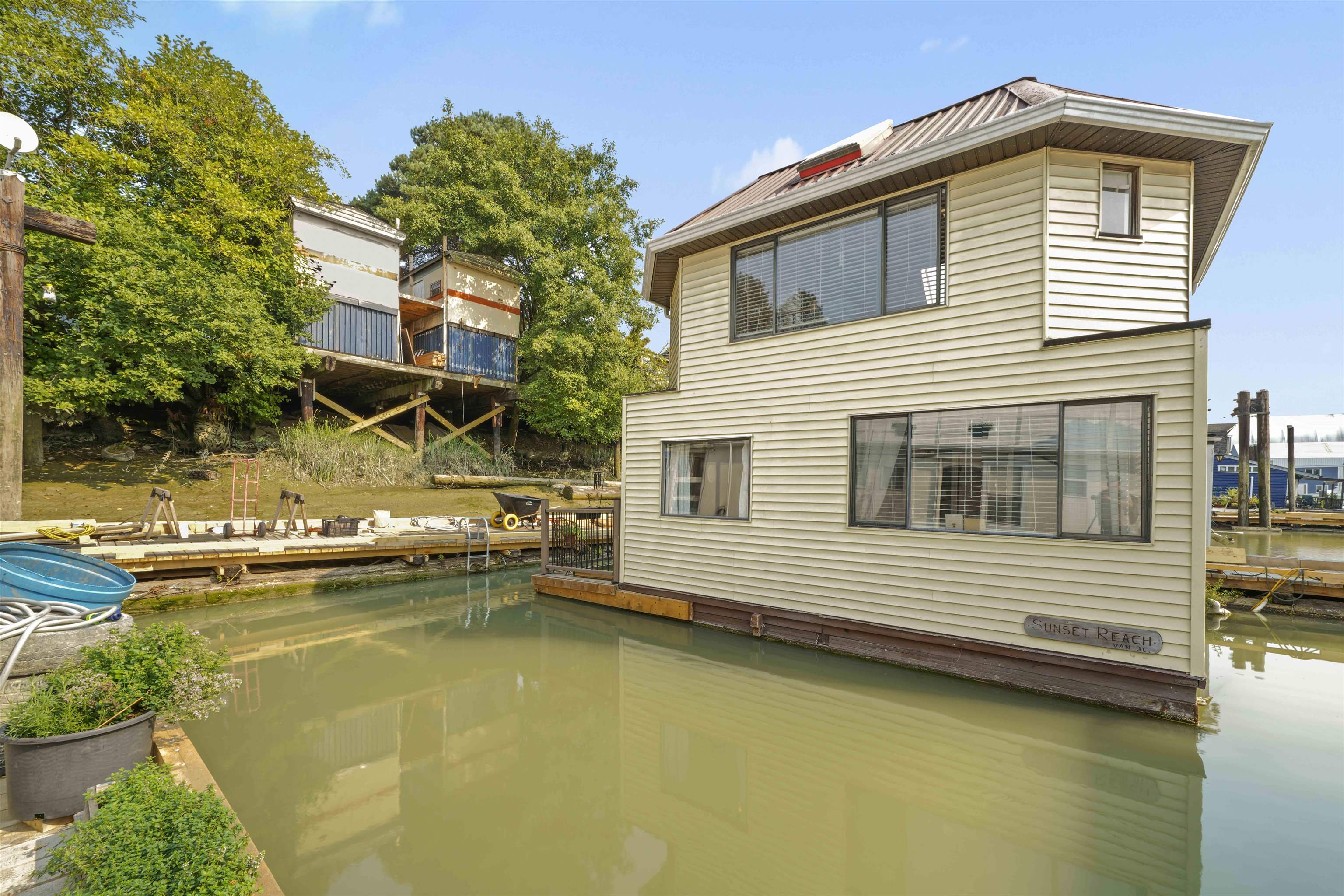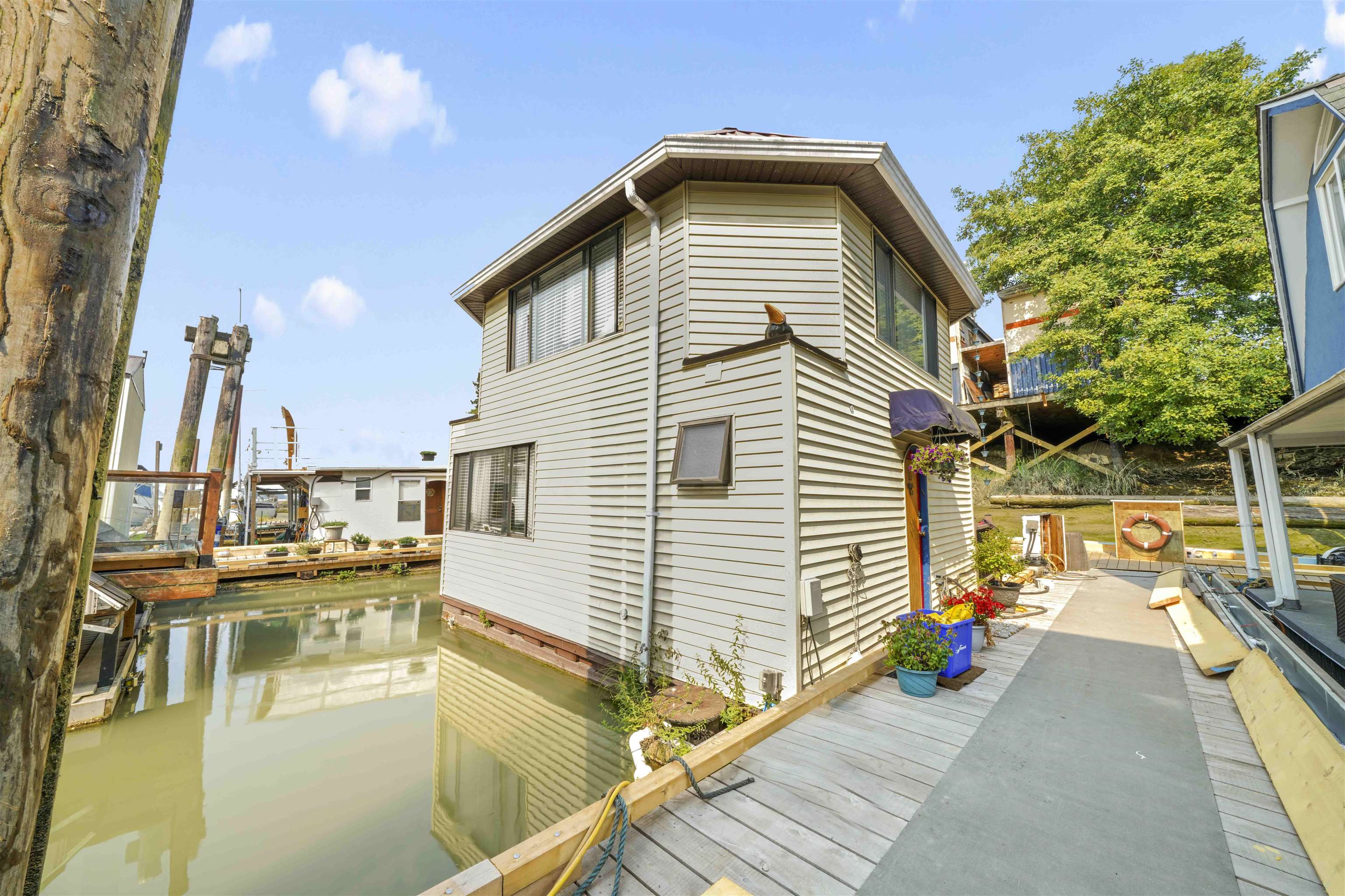 RIVERSBEND FLOATING VILLAGE. Is it time for a lifestyle change? This could be the one... she's called "SUNSET REACH" Reasonable and affordable in today's high priced real estate market.. yet so close to all the lower mainland suburbs. This home is bright and inviting ...with a wonderful-spacious upper floor (could be a 2nd bdrm) & vaulted ceilings. Features a heat pump, laundry and spacious sundeck to relax and enjoy nature all around you. Watch the resident swans glide around the homes. Live your best life...