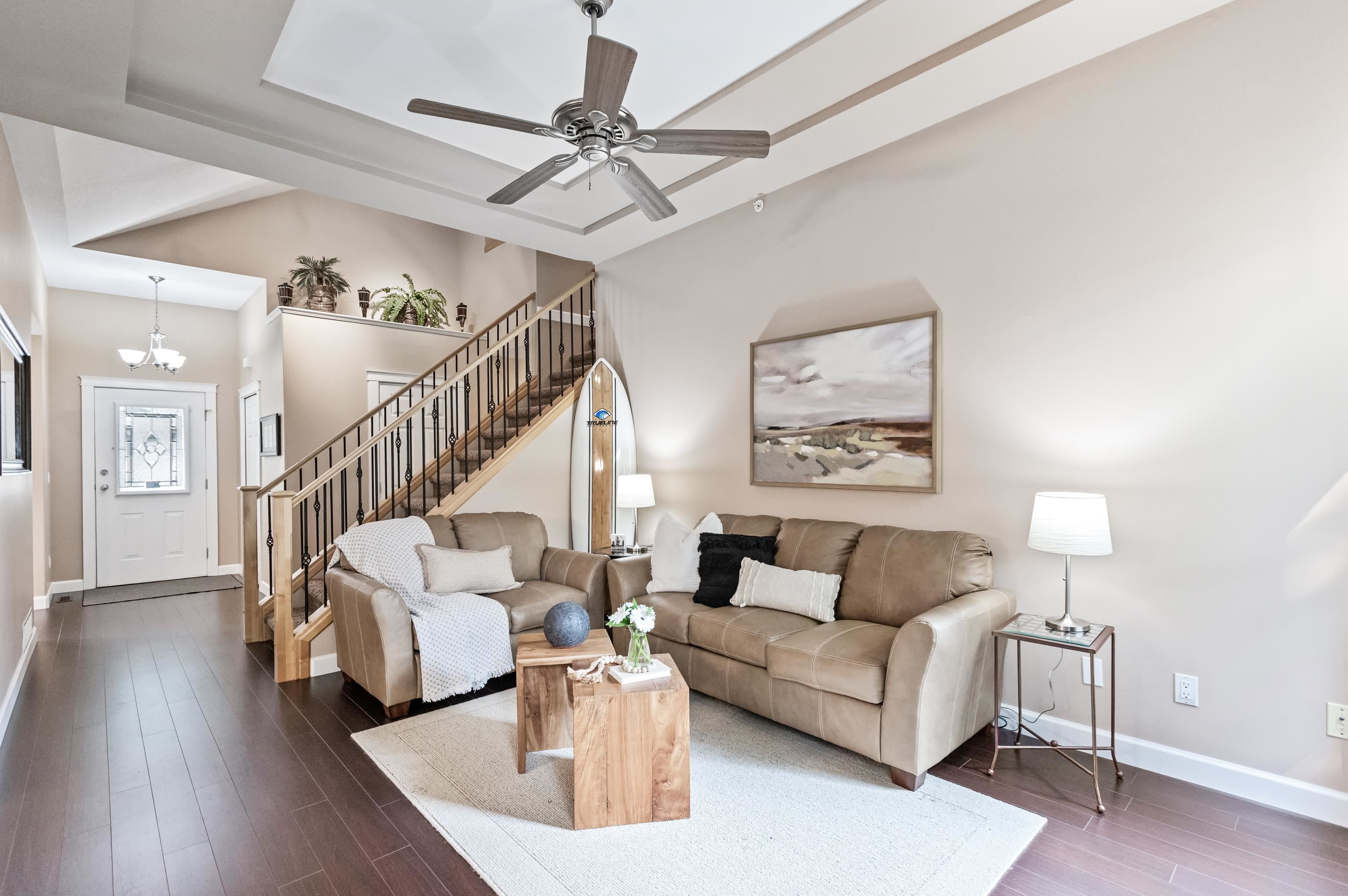 Welcome HOME! Looking for something special - you might just have found it here at the desirable gated Woodridge community. This home offers you the unique lifestyle of level entry living with TWO primary bedrooms if desired - total of 4 bedrooms. Upper level is a large suite w/2 W.I.Closets & 5 pc ensuite & main floor features a primary w/ ensuite (or use as a family room/den). High ceilings through-out the home including downstairs - where you have a rec.room-office & two further bedrooms. A duplex-styled...