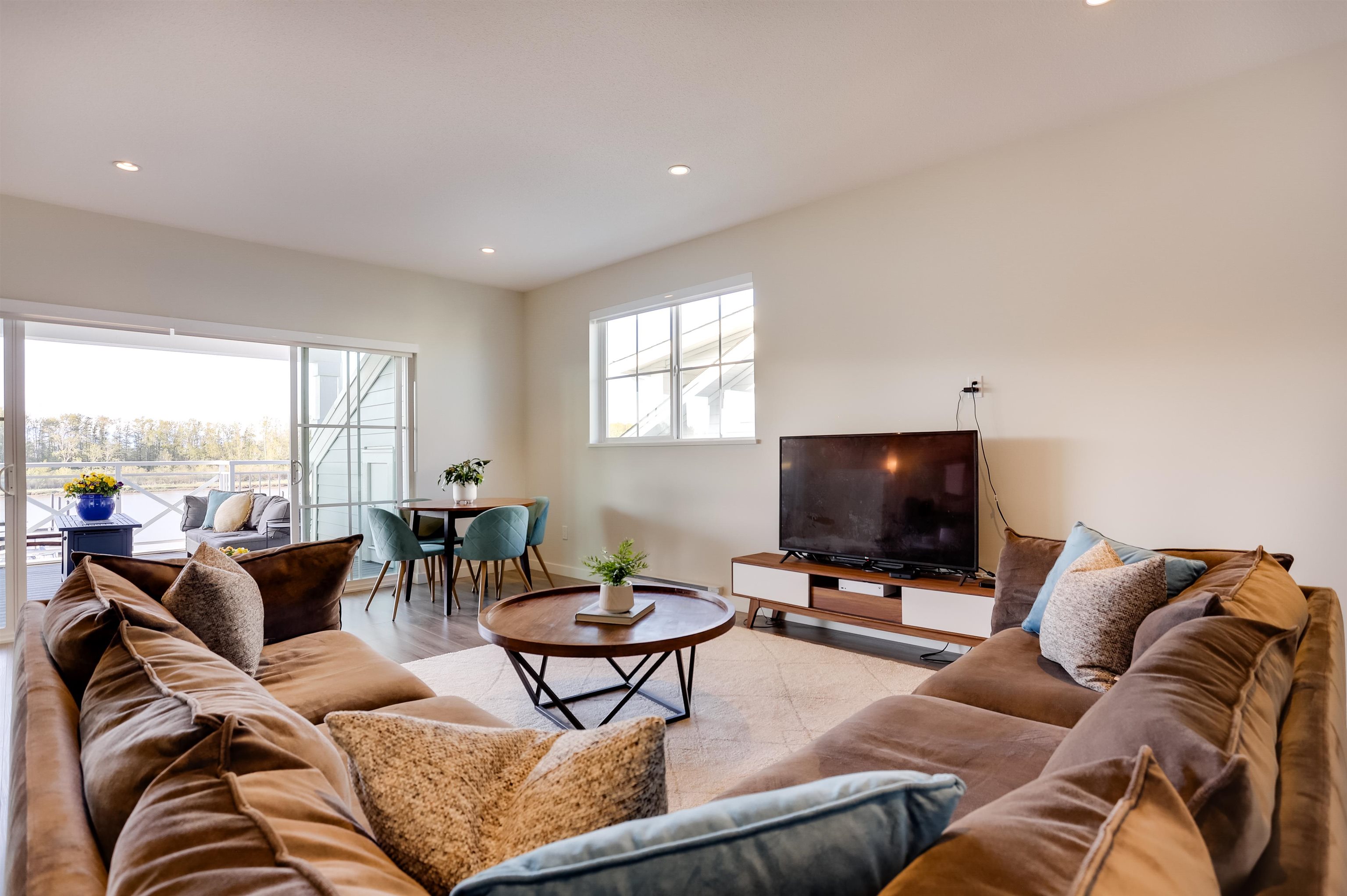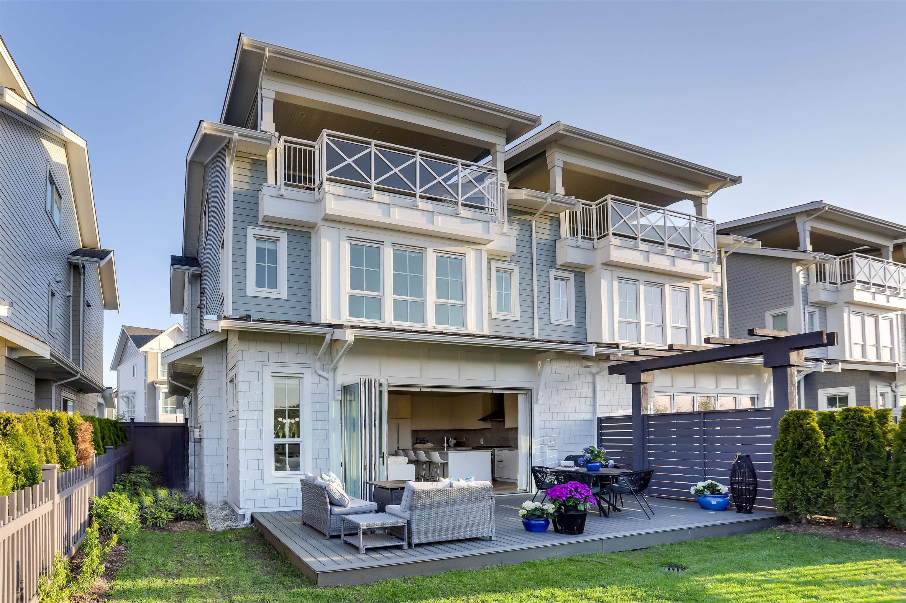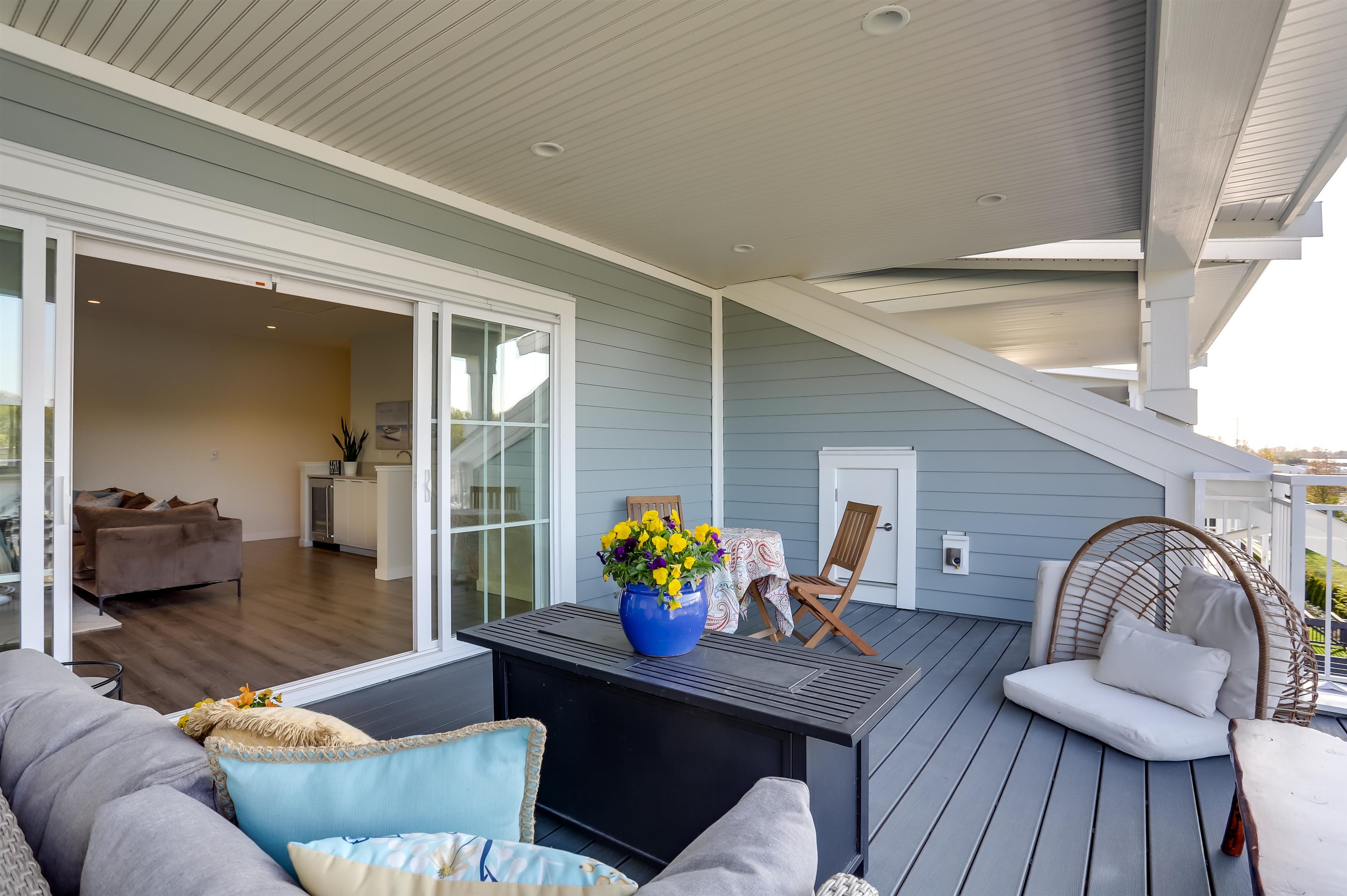 Live the dream in this duplex-style 4 bed, 4.5 bath luxury home in the exclusive Marinaside Collection at Westhampton, Ladner. With 2,720 sq ft of beautifully designed living space, enjoy soaring ceilings, stunning water views, and a chef’s kitchen featuring a gas range, wine fridge, and oversized island. Accordion doors open to a spacious patio and fenced yard — perfect for entertaining. Upstairs includes a games room/4th bedroom and a 260 sq ft covered deck with gas hookup. Stay cool with A/C in every roo...