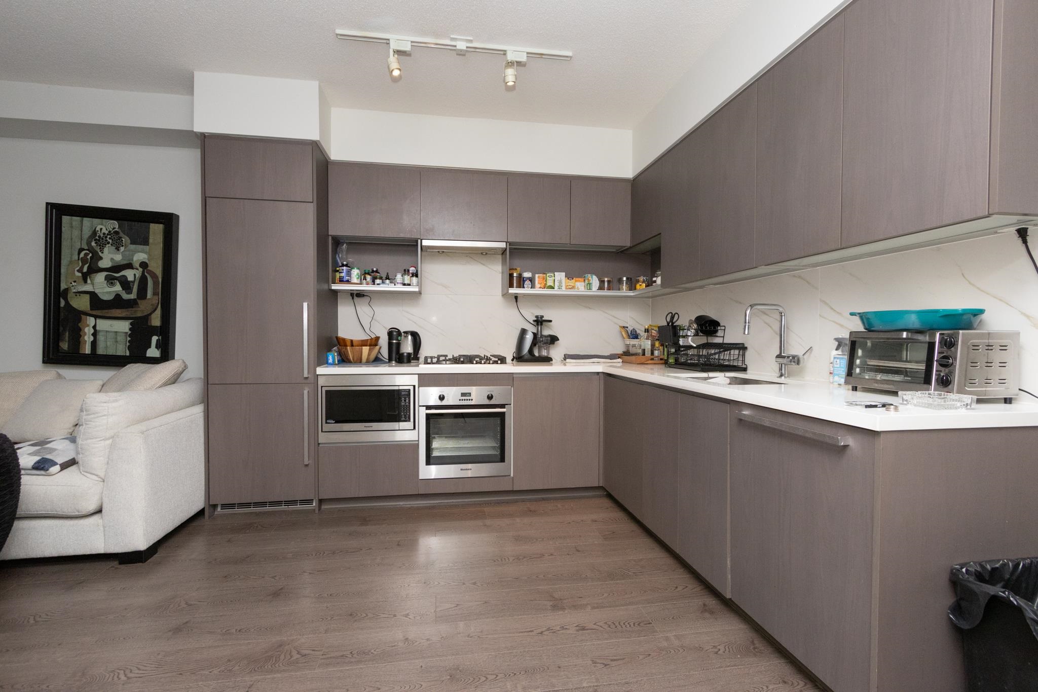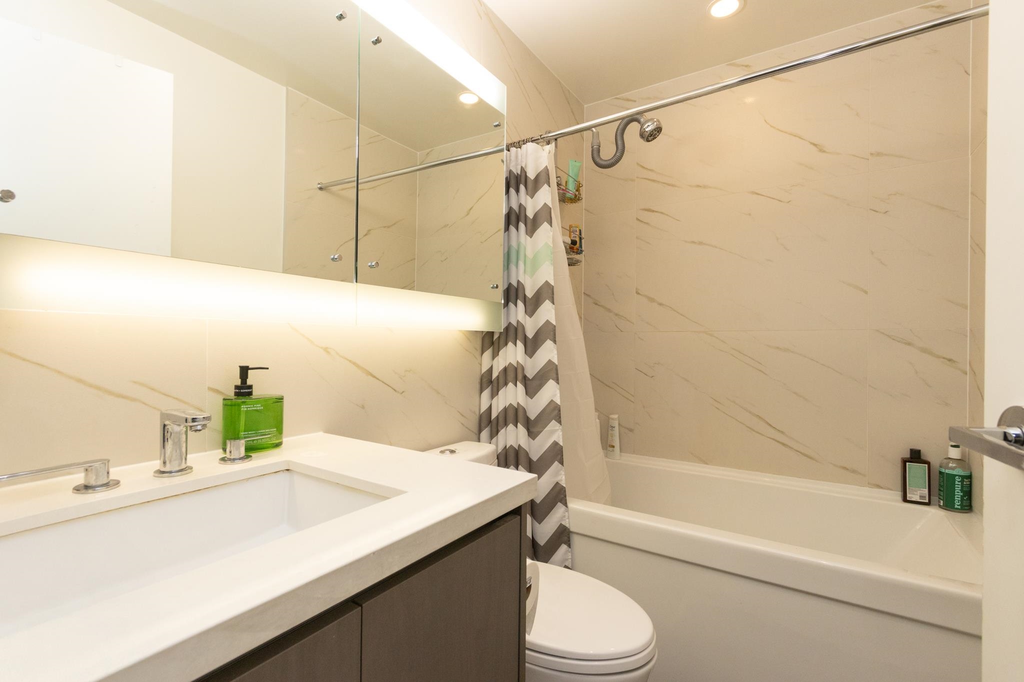Welcome to The Met by award-winning developer Concord Pacific. This spacious 1 bedroom plus den home is located on the quiet side of the building, overlooking Lobley Park. The unit features high 8’8” ceilings, a Blomberg appliance package, updated flooring in the primary bedroom, a den with a custom organizer—perfect for a home office—and a tiled patio. Residents enjoy resort-style amenities including an indoor pool, hot tub, steam room, sauna, fully equipped gym, bowling alley, golf simulator, karaoke room...