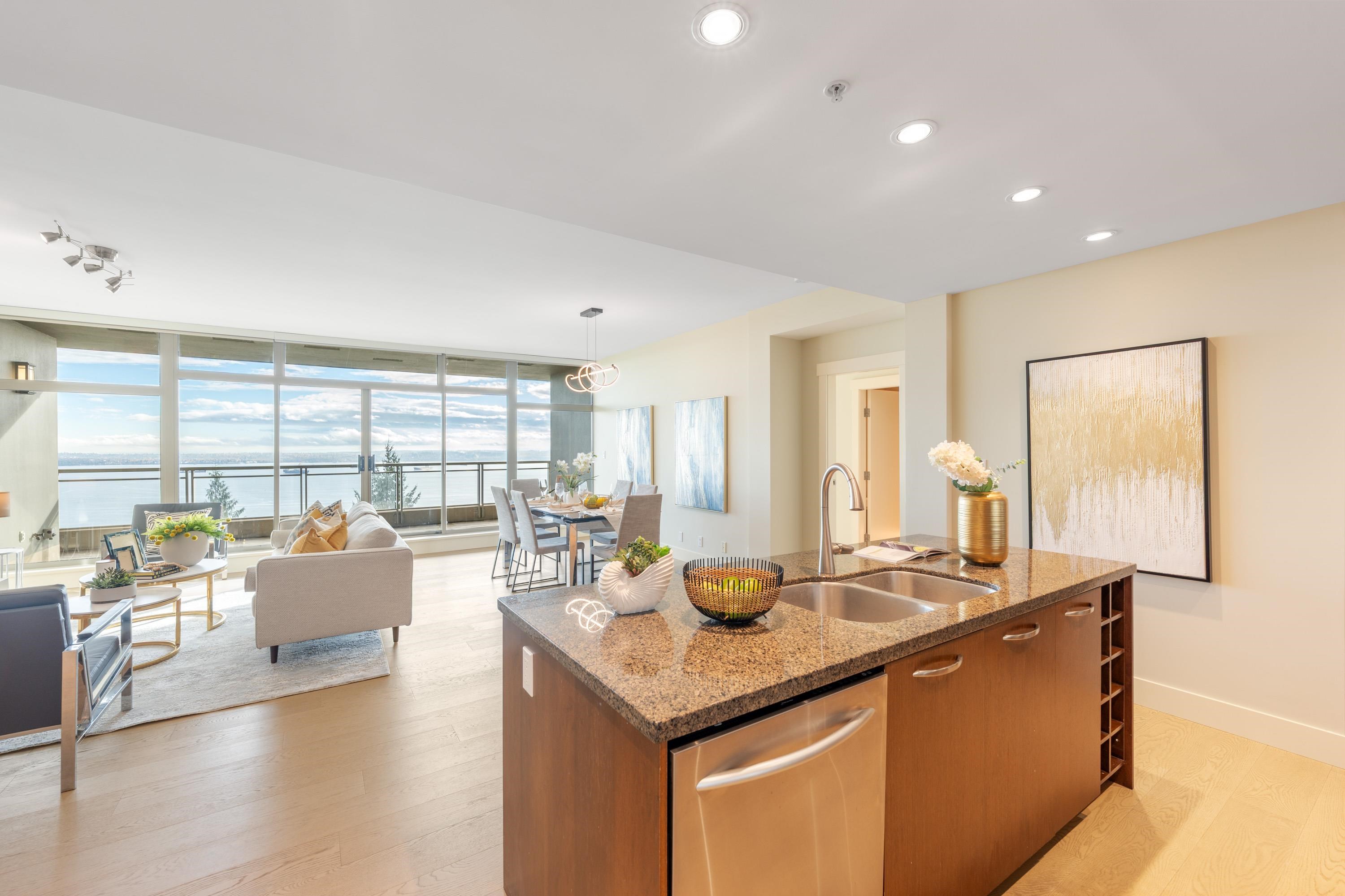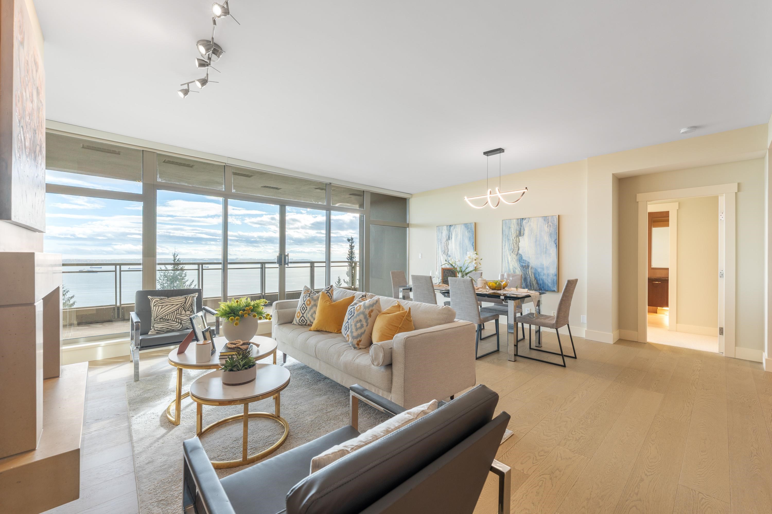 Panoramic Ocean, English Bay, Stanley park, DT and City views Unit in the StoneCliff-a luxury complex on 10 private acres! This South-Facing 2bdrm+2 full bathroom+1 open den has bright, open-design floor plan and comfortable living size with 9’ ceiling. Relax in the living, dinning and family rooms all while overlooking the sky-blue ocean. Stretching from the magnificent Mt. Baker, to the lush green Stanley Park, blending into the elegant English Bay, and flowing into the vast limitless Pacific Ocean. A go...