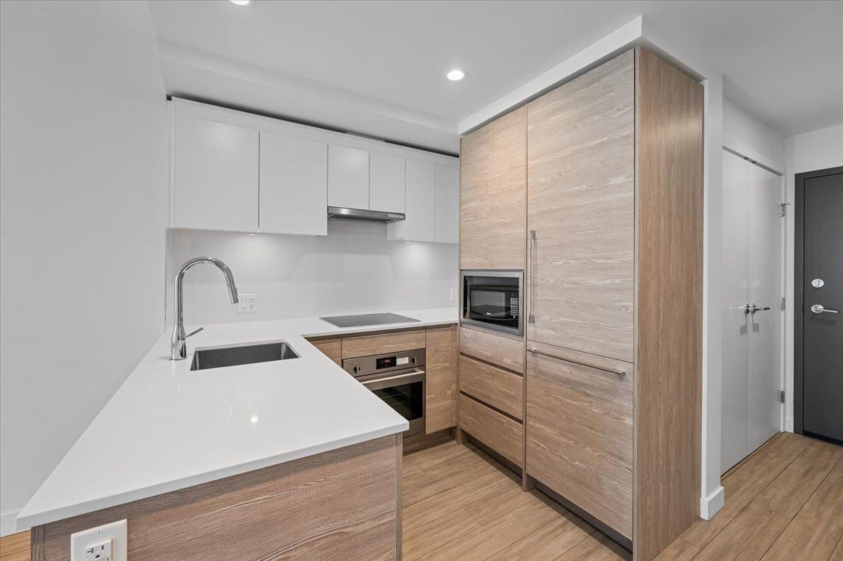 Welcome to Hub 2 King George Hub, where smart design meets everyday convenience. This north facing home offers beautiful mountain and city views and a highly efficient with no wasted space. Immaculately maintained, the open layout is filled with natural light and flows seamlessly to a private balcony -perfect for morning coffee or evening downtime. The contemporary kitchen features quartz countertops and integrated appliances, ideally for daily living and entertaining. Comes with 1 parking + 1 storage locke...