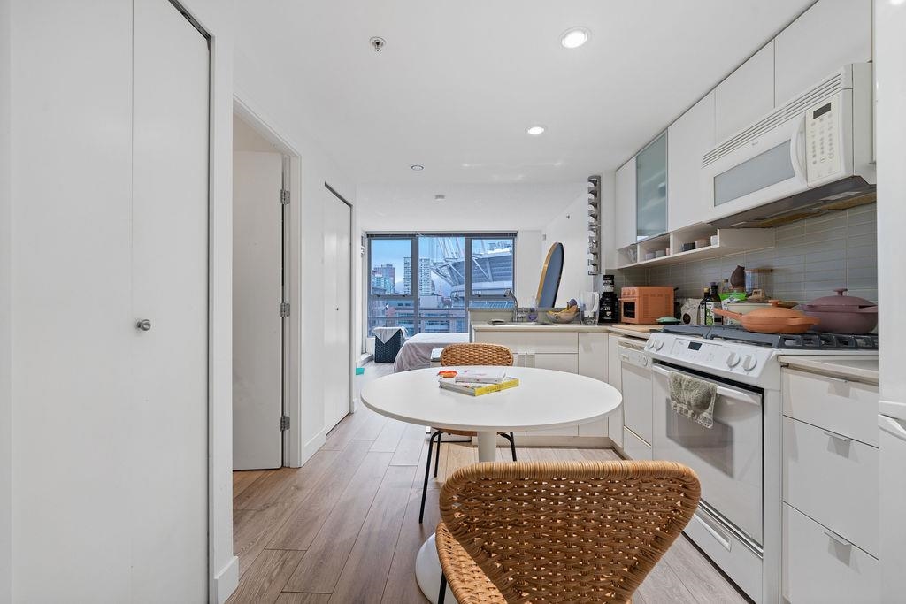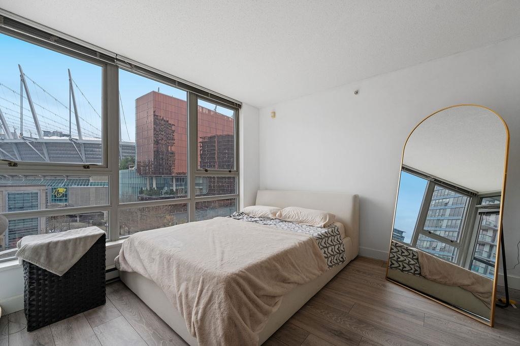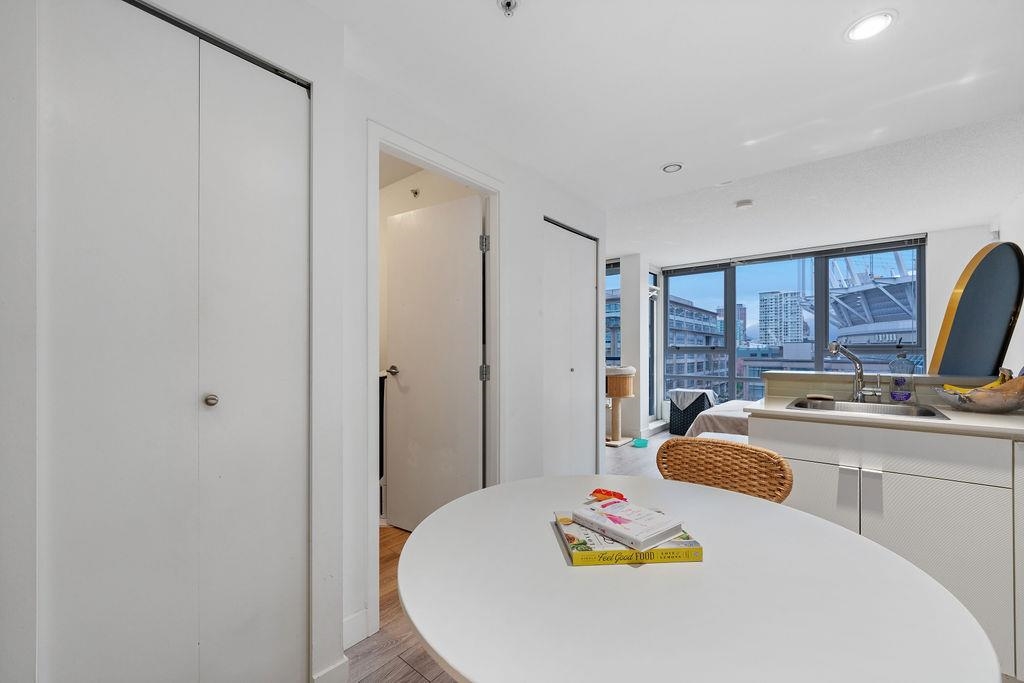 Welcome to The Max by Concord Pacific! This 445 sq. ft. Studio plus Den offers stunning city views of Parq Casino and BC Place. Expansive windows fill the space with natural light, while the Den offers flexibility as an office, walk-in closet, or storage. Well maintained home with updated flooring and bathroom vanity. Enjoy building amenities including a pool, hot tub, sauna, steam room, yoga studio, well equipped gym, media room, and concierge. An ideal starter home or investment opportunity.