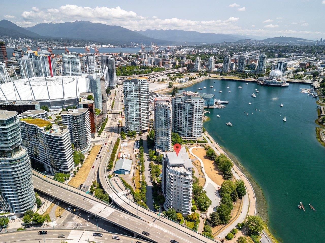 YALETOWN WATERFRONT - Absolutely stunning & gorgeous unobstructed False Creek water views from this beautifully renovated 1,192 SF 2 bed/2 bath piece of heaven. Bright, quiet SE CORNER home filled with natural light & floor to ceiling windows,. Extensively renovated (over $200k) in 2021. Move in ready - nothing needs to be done! Both parking & oversized locker conveniently located on P2. Everything Vancouver has to offer is at your doorstep: shopping, restaurants, Skytrain, seawall, casino, Rogers Arena, BC...