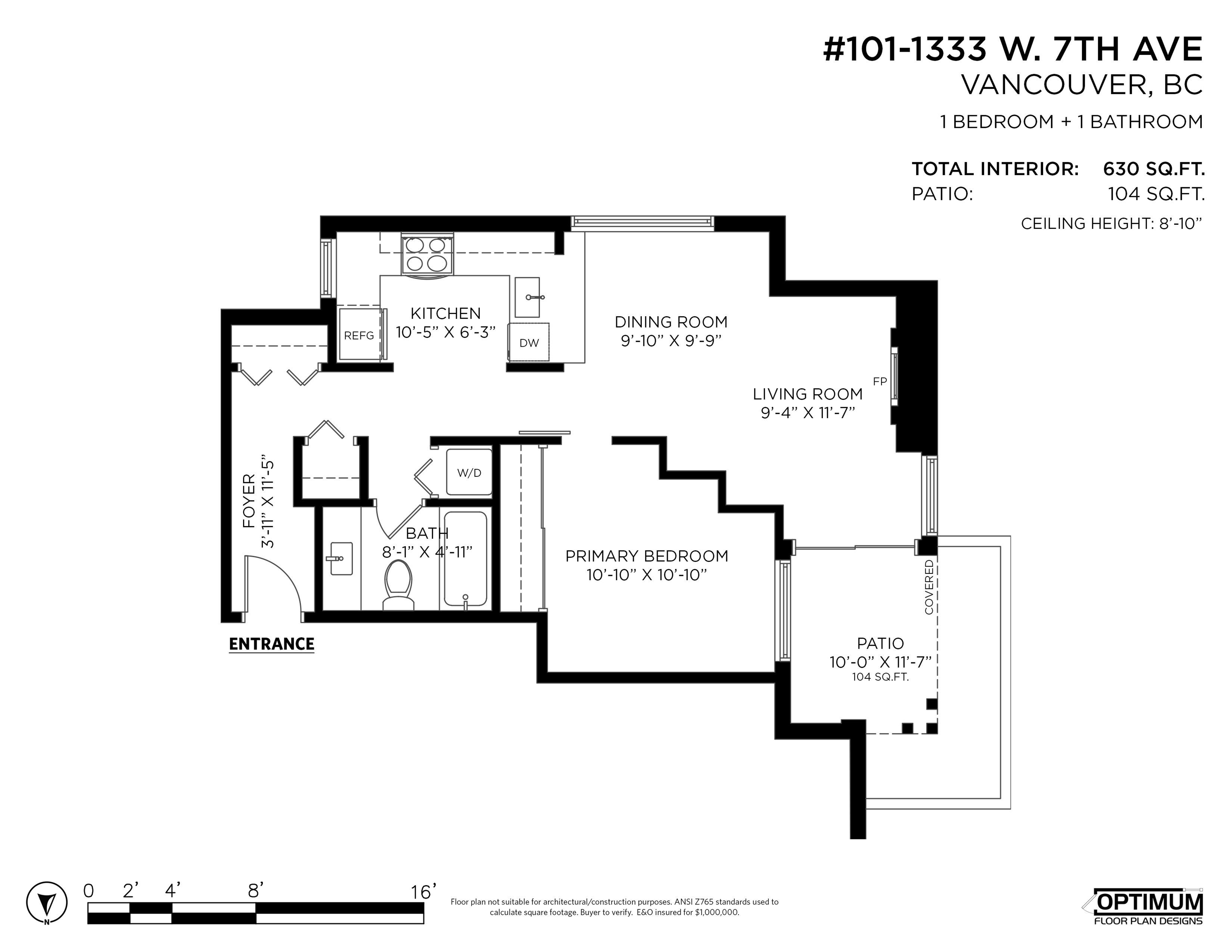 Well-located 630 sq ft 1 bed, 1 bath home in the desirable Fairview neighbourhood. This bright and functional residence features a fully renovated kitchen and bathroom, in-suite laundry, and a comfortable living space that opens to a very private 104 sq ft ground-level patio. The non street facing patio is secure, and quiet, making it ideal for relaxing or entertaining. Enjoy excellent access to Granville Island, Broadway, and Downtown, with SkyTrain and major transit routes nearby. Pet-friendly building wi...