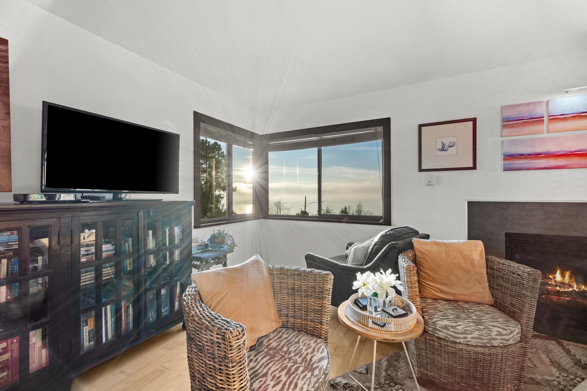 Panoramic Ocean & Coastline Views! The home is the entire front of the building - very private with only one shared wall (corner unit on both sides). Spectacular views! Enriched with natural light, this south-facing 2 bed, 2 bath home features 1,178 sqft with many renovations. The gas fireplace (gas included in fees) makes the home feel so cozy while watching the sunset on the ocean. Well managed building with many recent updates: decks, railings, elevator modernization, exterior & interior paint. In-suite...