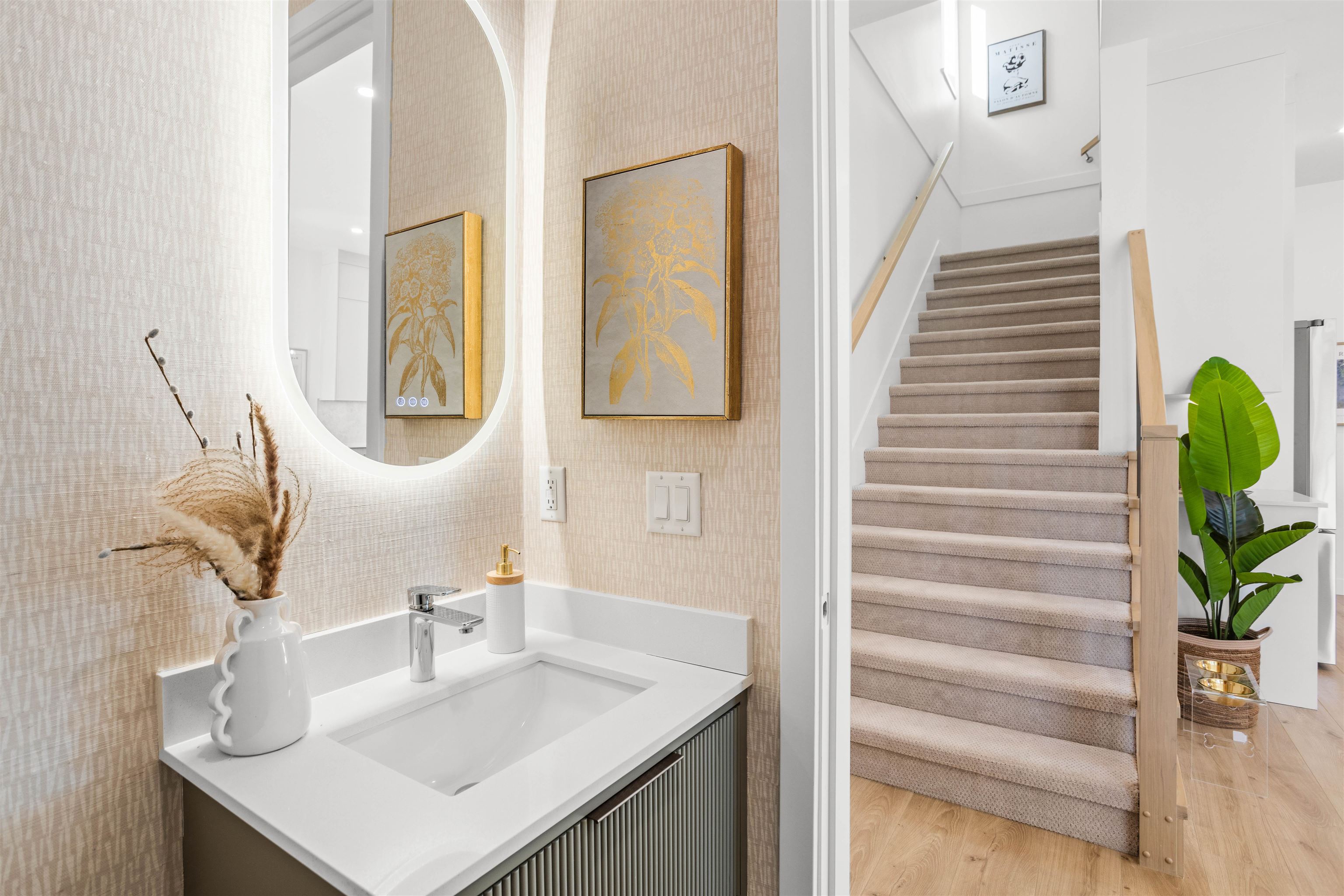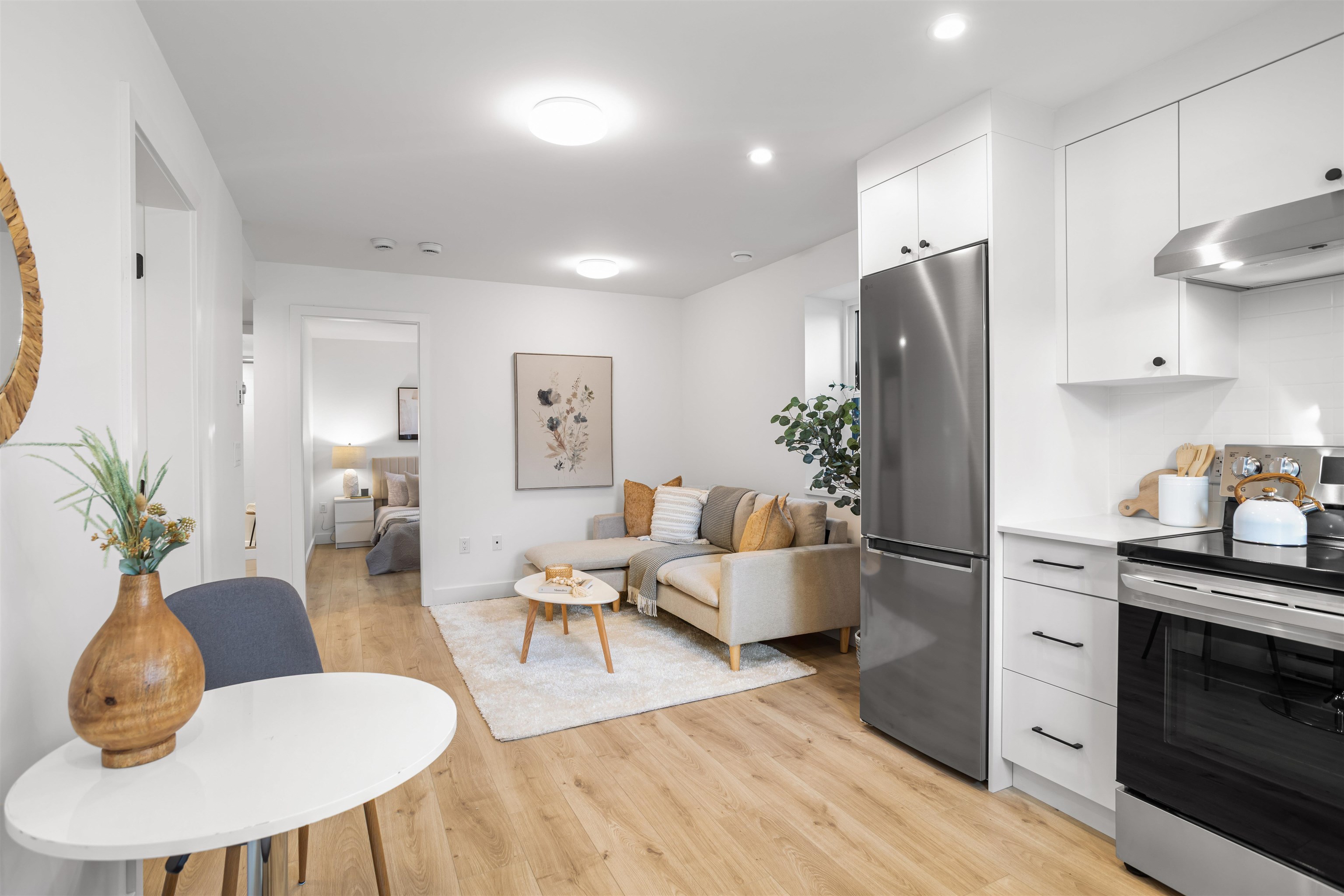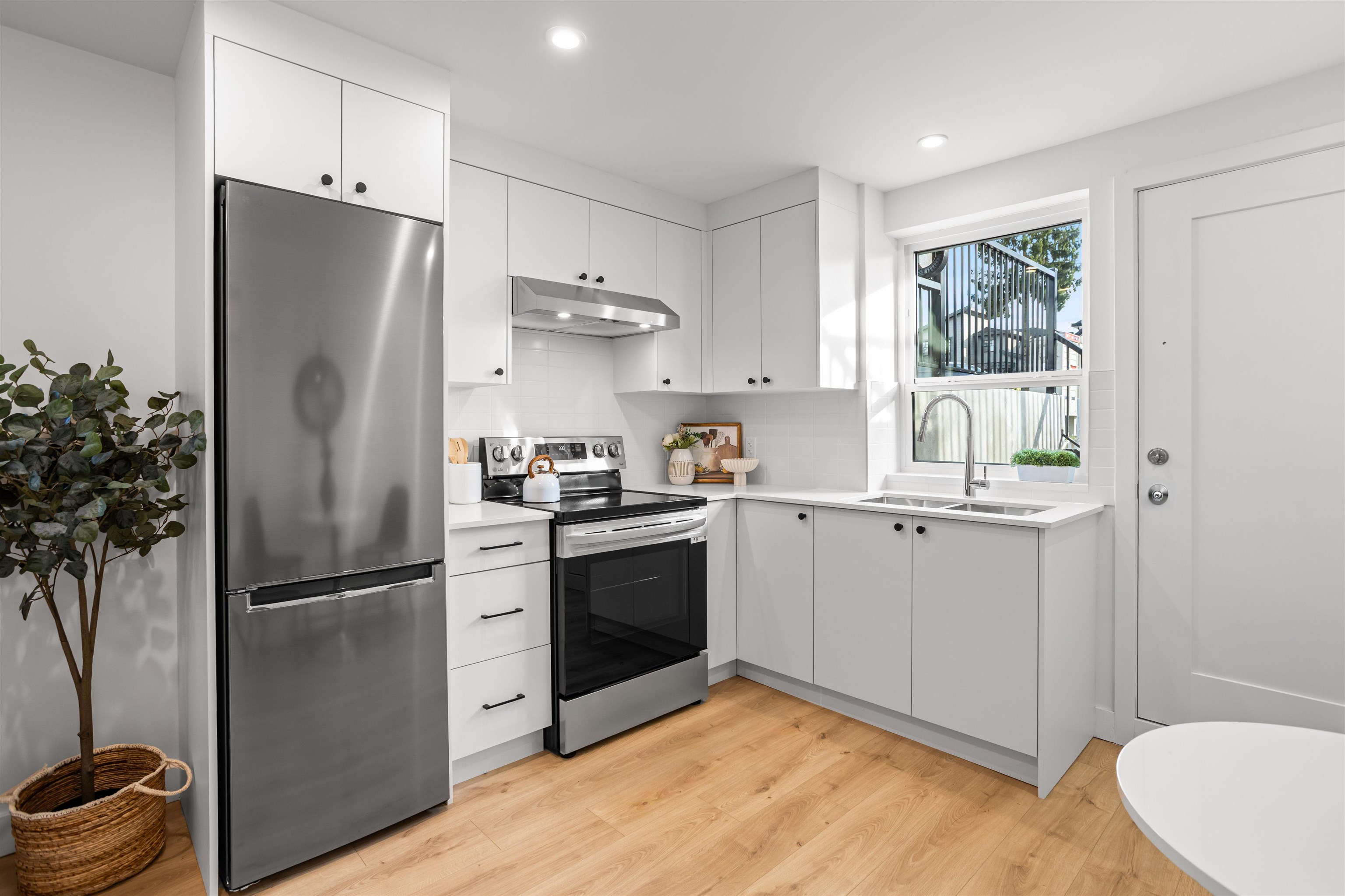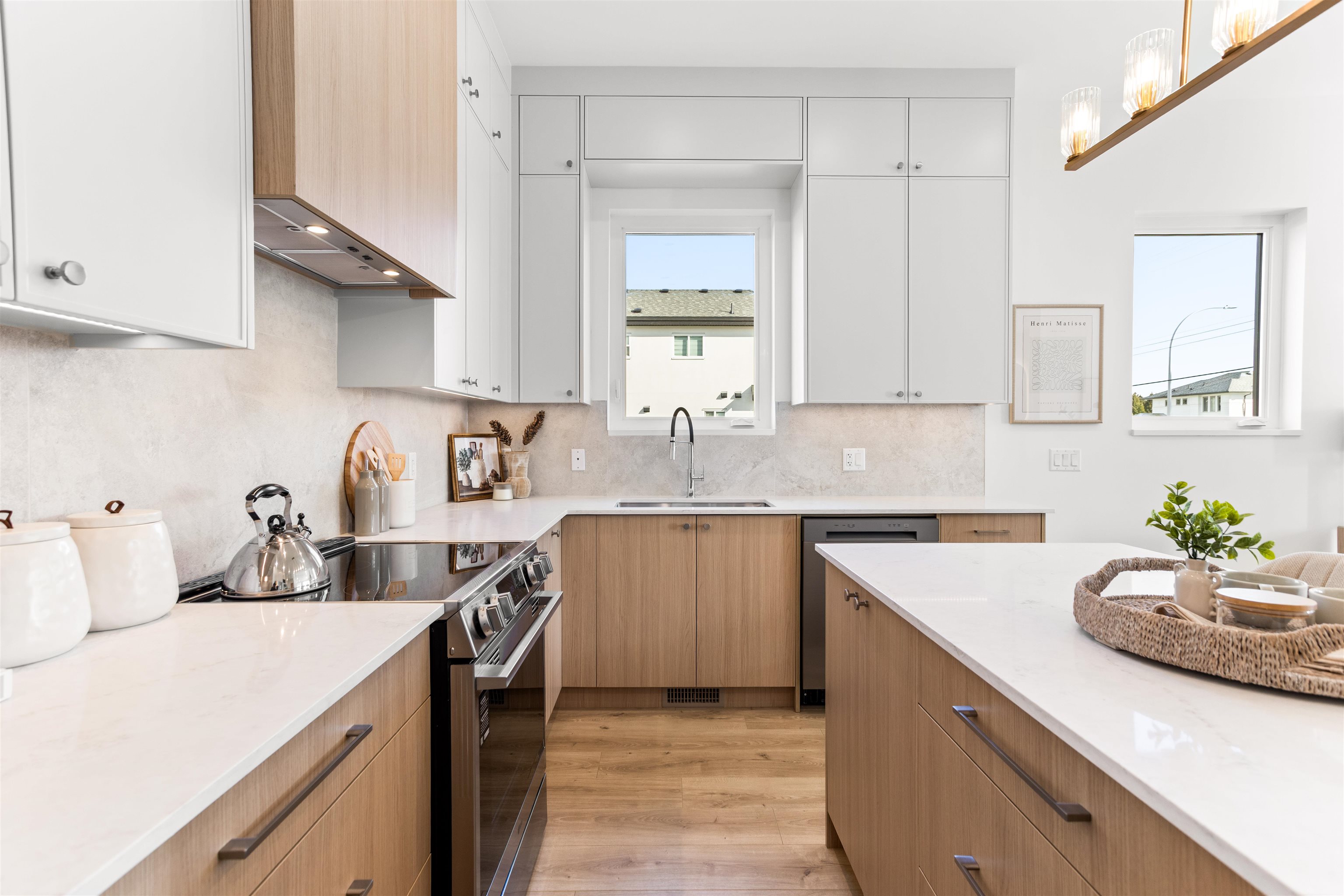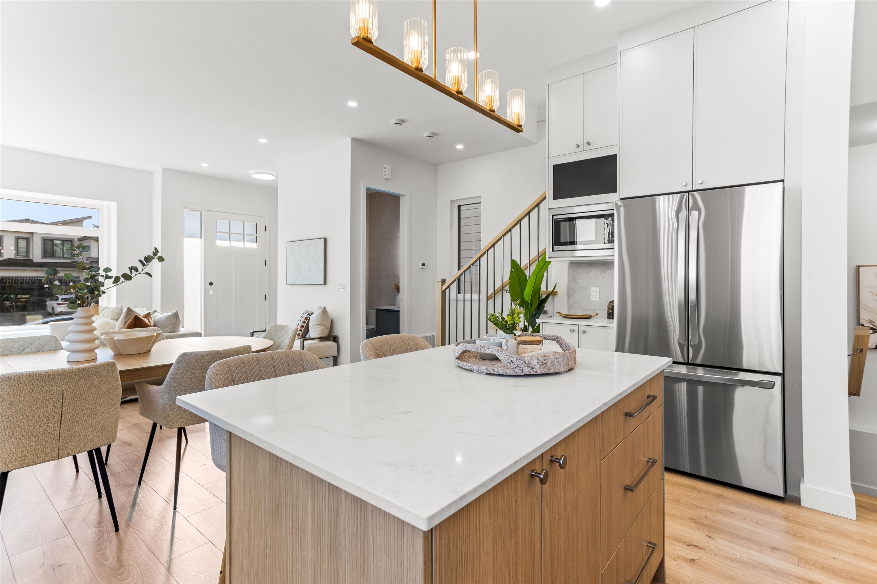 Boutique collection of modern duplex homes in sunny South Surrey!This 3 bed, 2.5 bath half duplex with a 2-BED LEGAL SUITE offers a functional layout ideal for growing families or rental income.Main floor features a spacious kitchen with custom cabinetry, quartz countertops, stainless steel appliances w/induction range, and a large island with eating bar. Enjoy 10’ ceilings, laminate flooring plus a high-efficiency gas furnace and A/C for year-round comfort. Built-in millwork included – custom TV wall, entr...