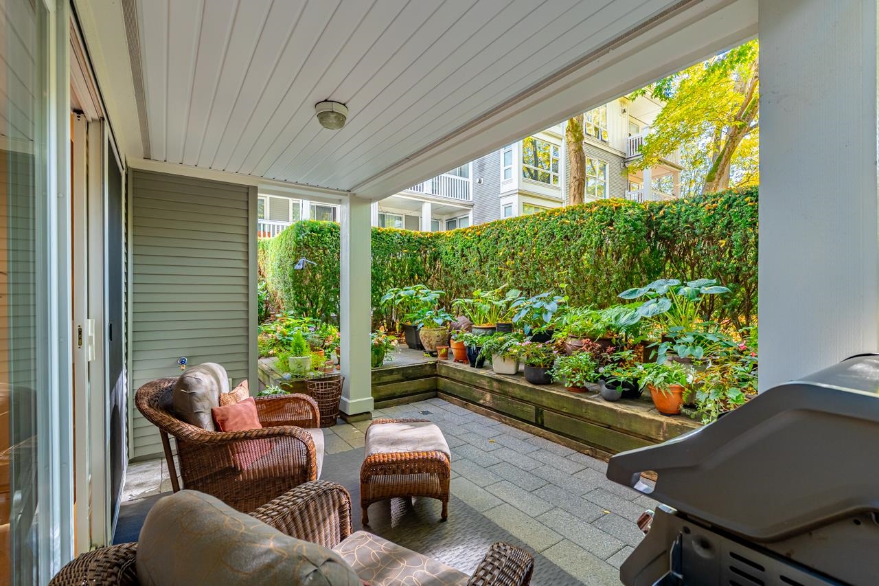 Greenwich on w 5th - one of the most sought-after buildings in Kitsilano. Rarely avail, CORNER UNIT 2 bed plus den (den can be used as 3rd bedroom with built in murphy bed and wardrobe) 2 bath with large walk out ground level 172 sq ft patio - access right on to a private gated green yard. The NEWLY RENO’ED space features a well-designed open floor plan ideal for entertaining that gives a townhome feel. Meticulously managed building located steps away from Arbutus Greenway, Fifth Avenue Cinema & endless sho...
