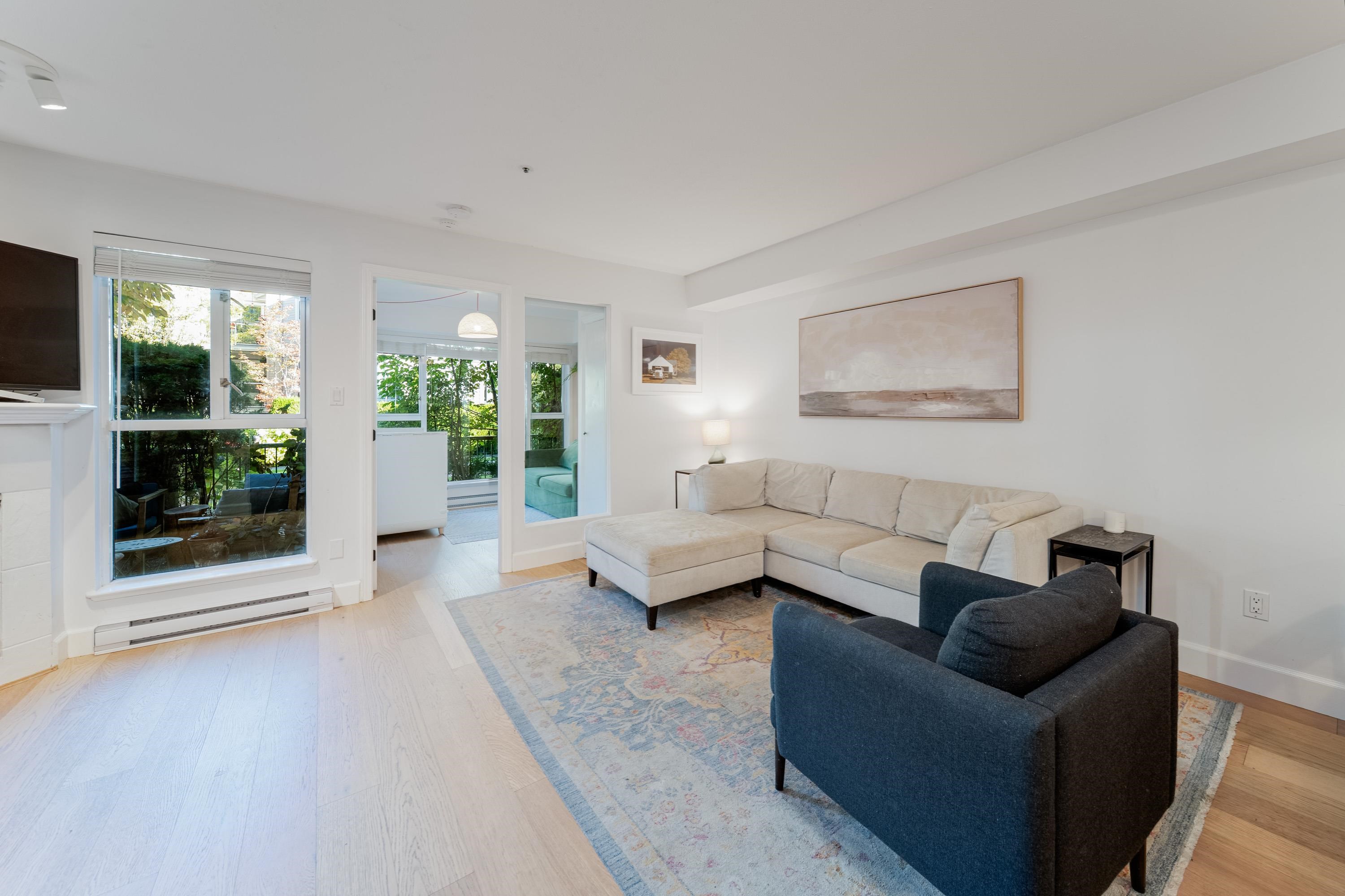 Experience the perfect blend of comfort and convenience in this desirable main floor condo located just off Main Street. Boasting 2 spacious bedrooms and a large in suite storage area, this home is ideal for both relaxation and entertaining. Cozy up by the gas fireplace on chilly evenings, or enjoy your huge fenced patio/yard area perfect for morning coffee or evening gatherings. Situated in the highly sought after Main Street location, close to transit, shopping, coffee shops, restaurants and all the v...