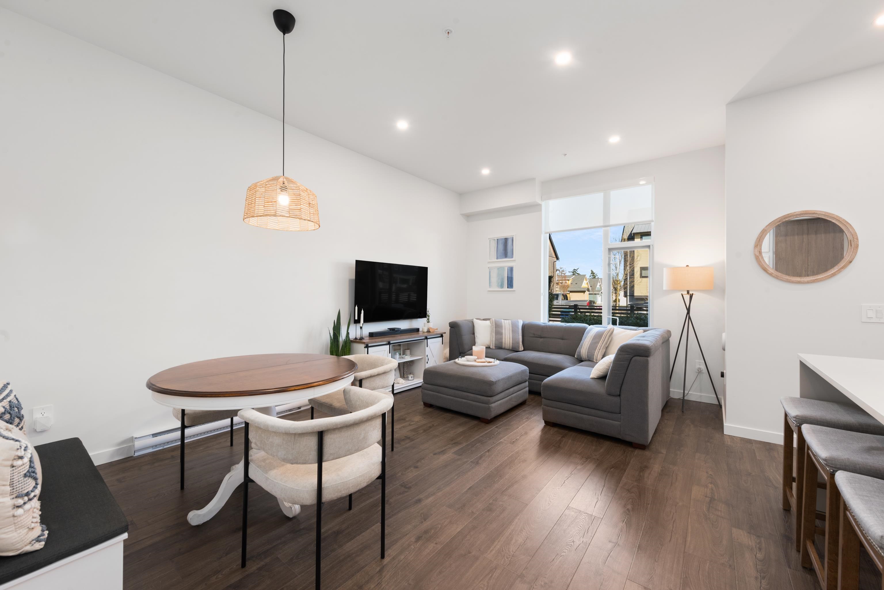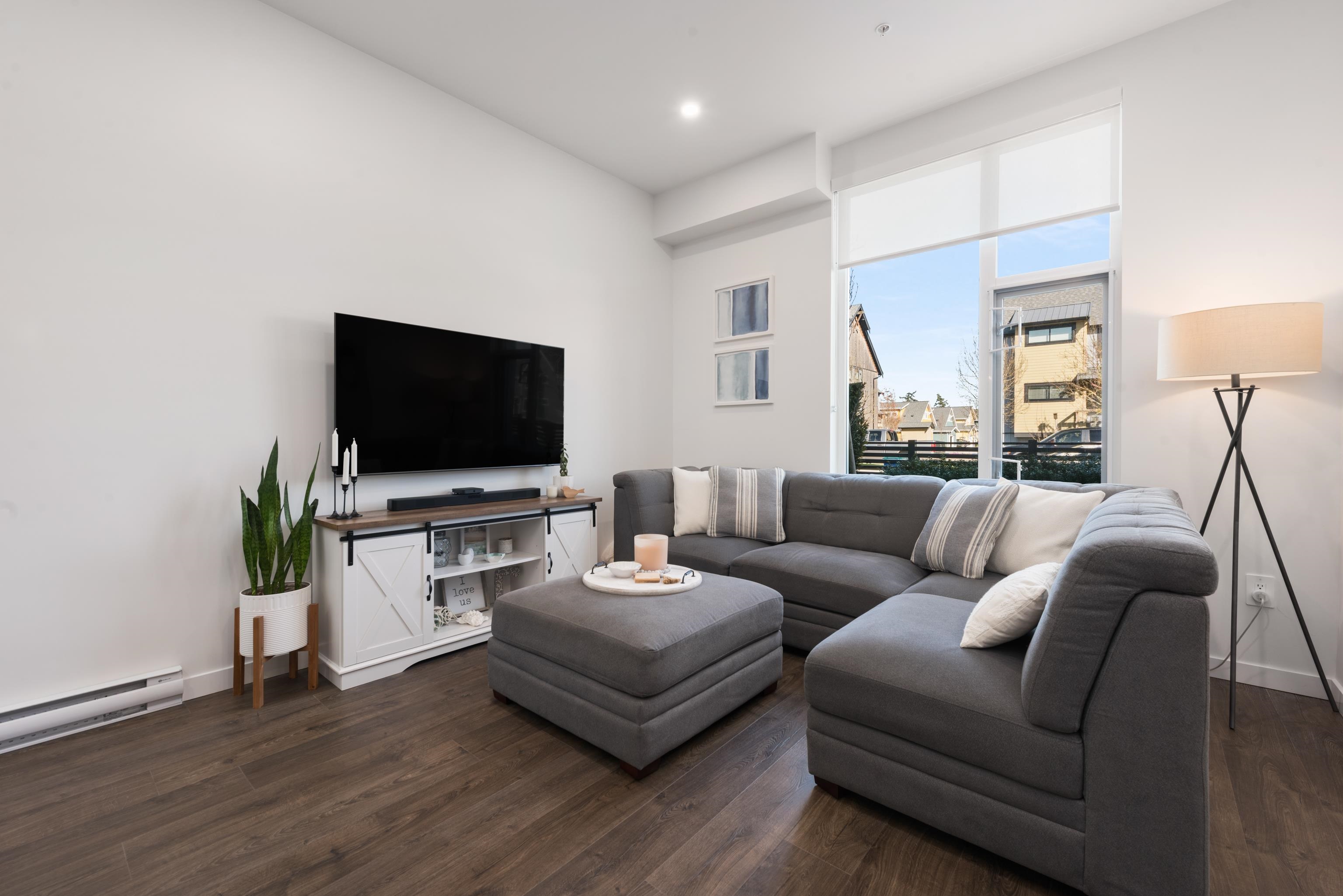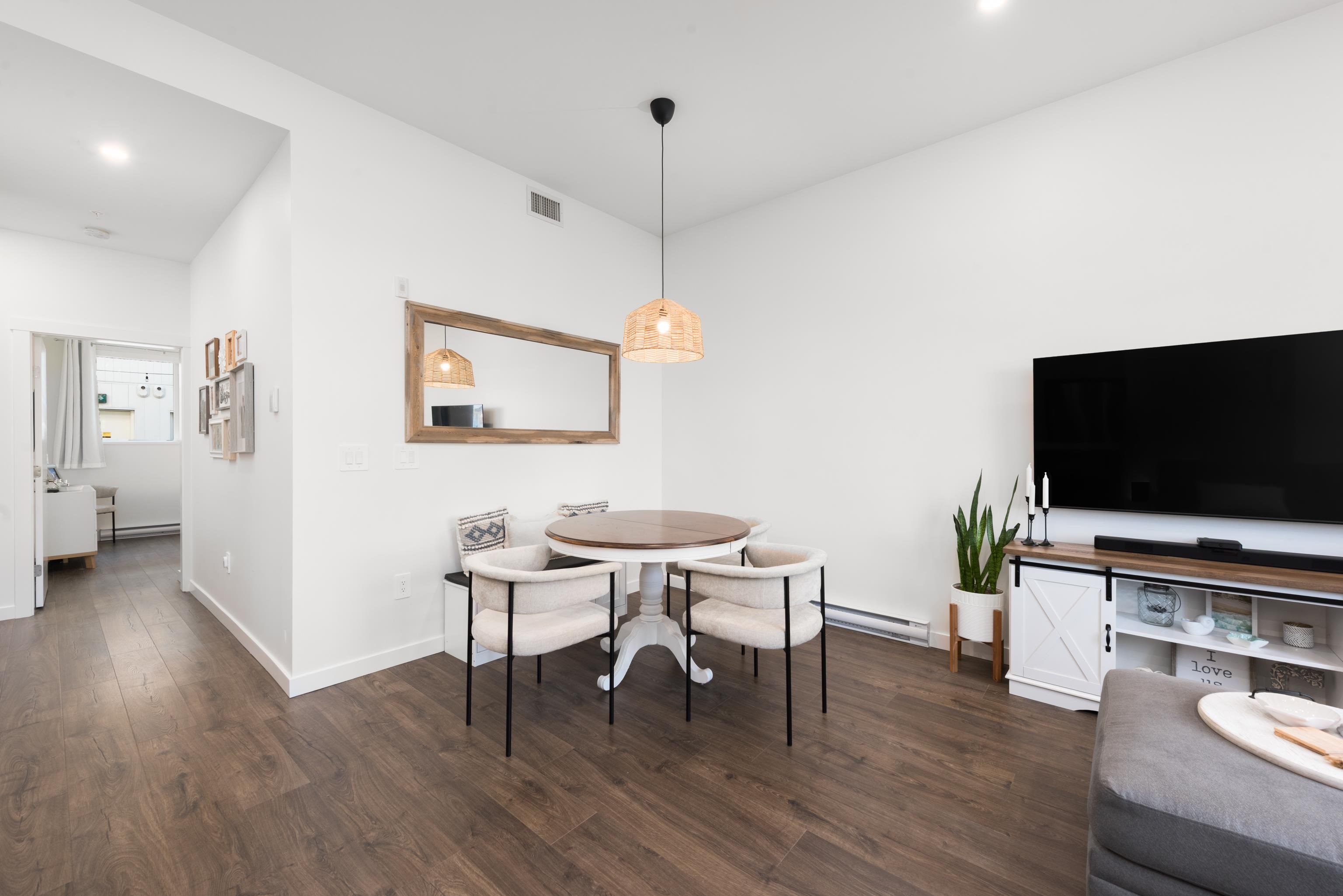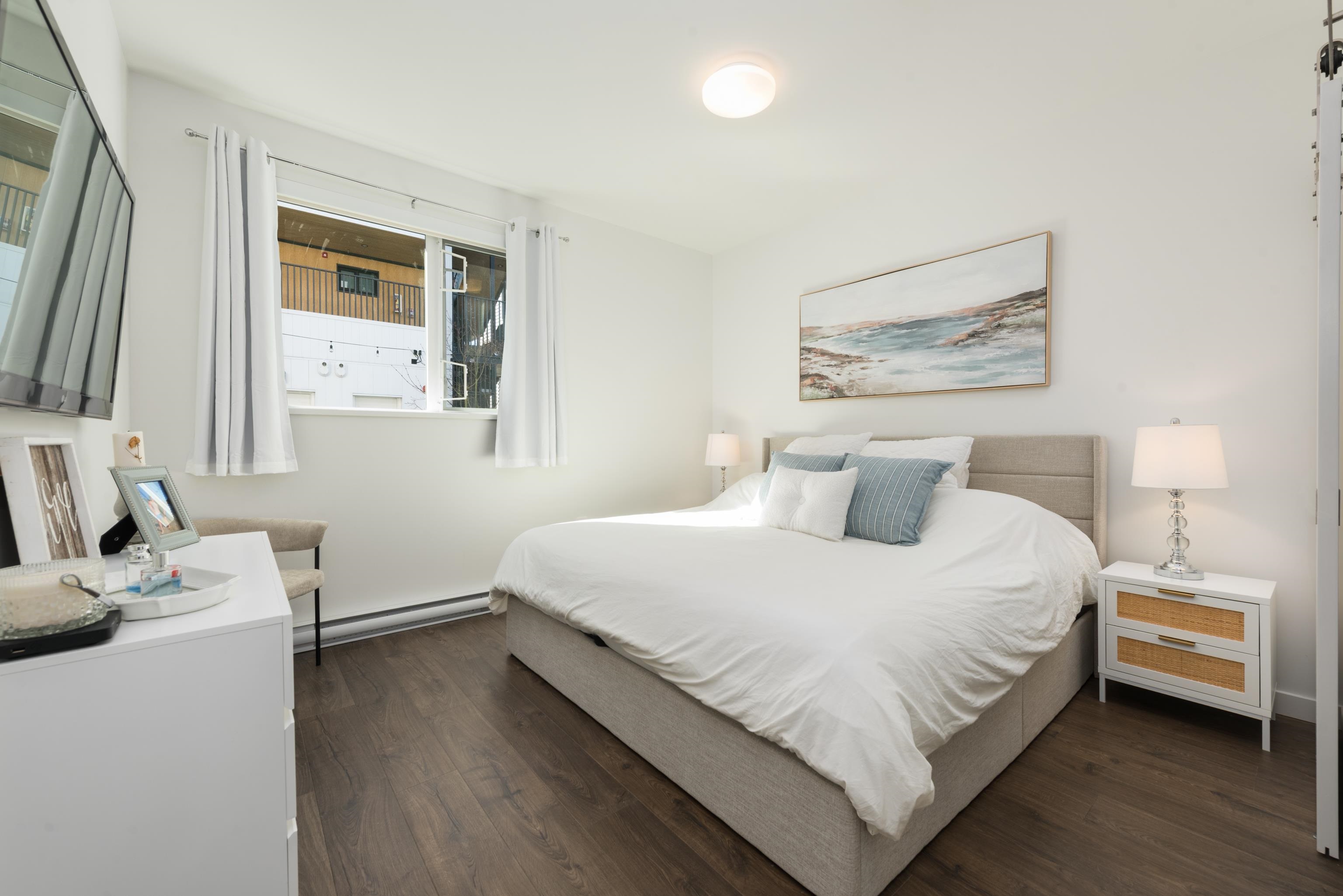Tucked away on the quiet east side of District Flats, this 2 bed, 2 bath ground-floor corner home offers a rare blend of privacy, natural light, and thoughtful design. With 917 sqft of well-planned space, enjoy overheight ceilings throughout and soaring 12-ft ceilings in the living area, creating an open, airy feel rarely found on the ground level. This east-facing position brings softer morning light, cooler afternoons, and noticeably less foot and vehicle traffic for a more peaceful setting. The open layo...