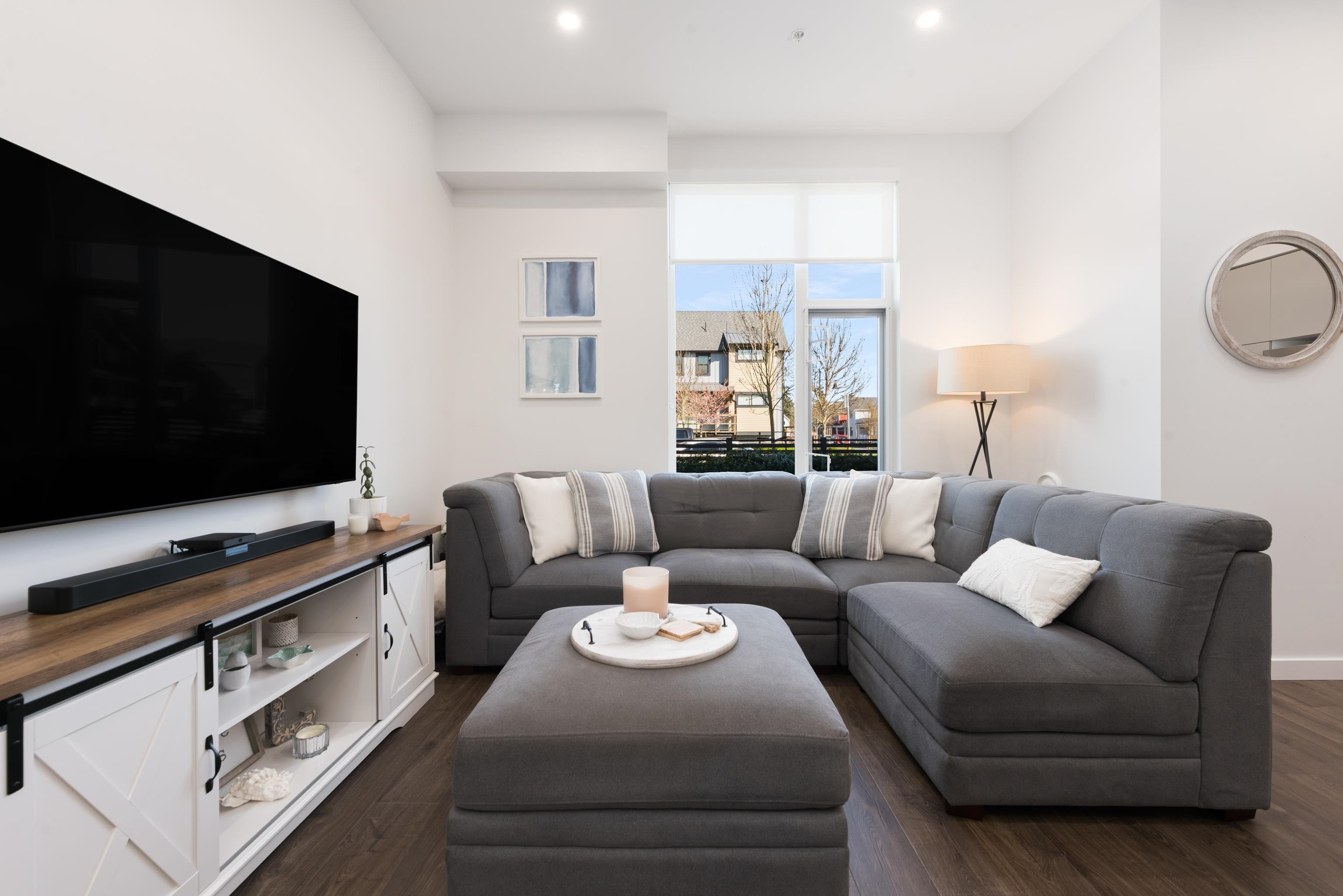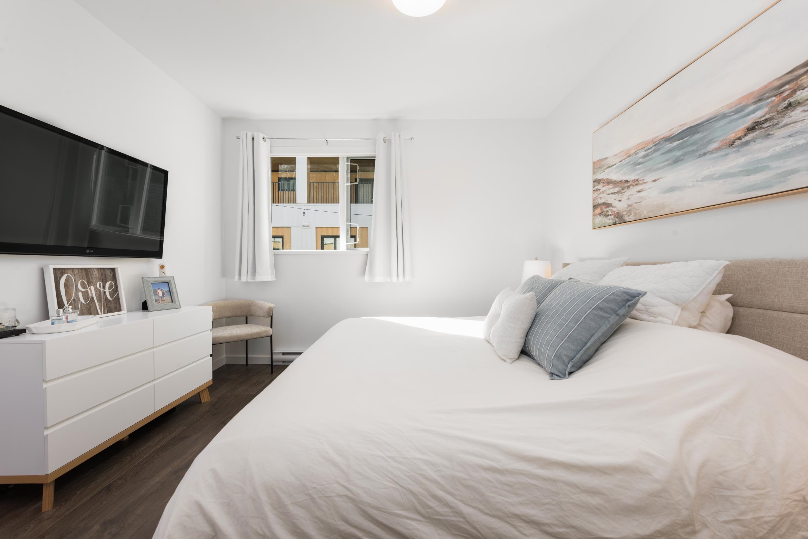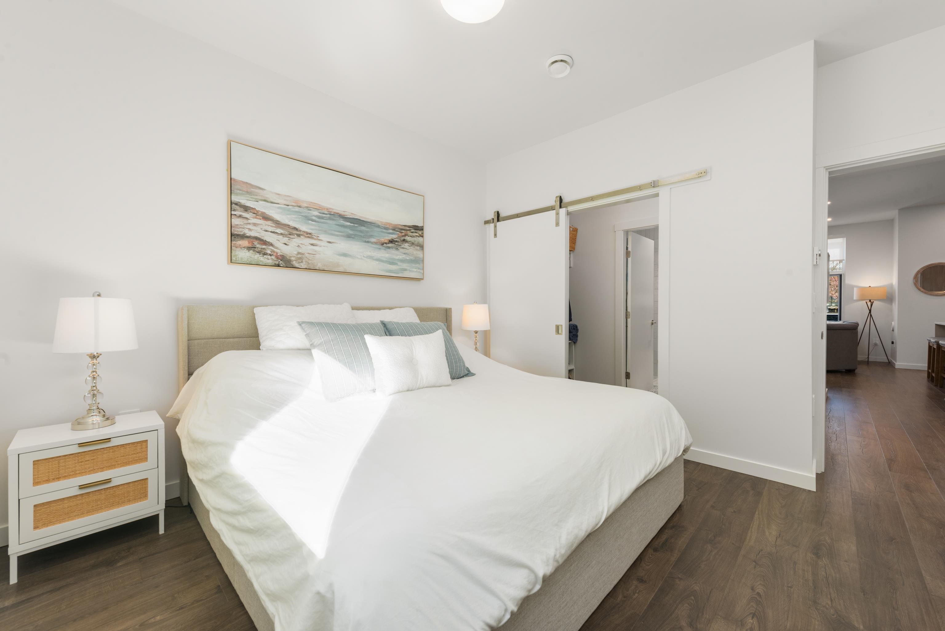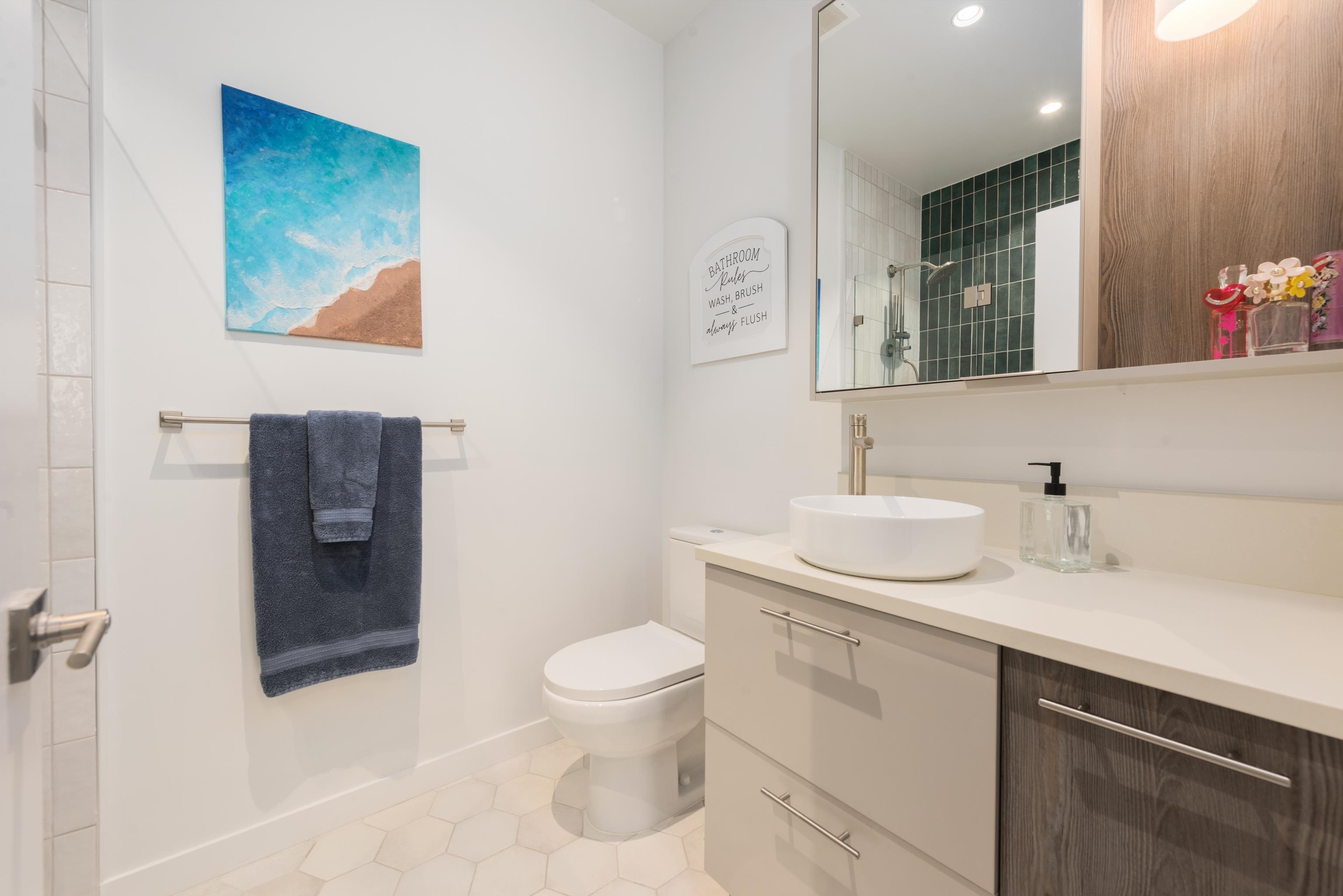 Tucked away on the quiet east side of District Flats, this 2 bed, 2 bath ground-floor corner home offers a rare blend of privacy, natural light, and thoughtful design. With 917 sqft of well-planned space, enjoy overheight ceilings throughout and soaring 12-ft ceilings in the living area, creating an open, airy feel rarely found on the ground level. This east-facing position brings softer morning light, cooler afternoons, and noticeably less foot and vehicle traffic for a more peaceful setting. The open layo...