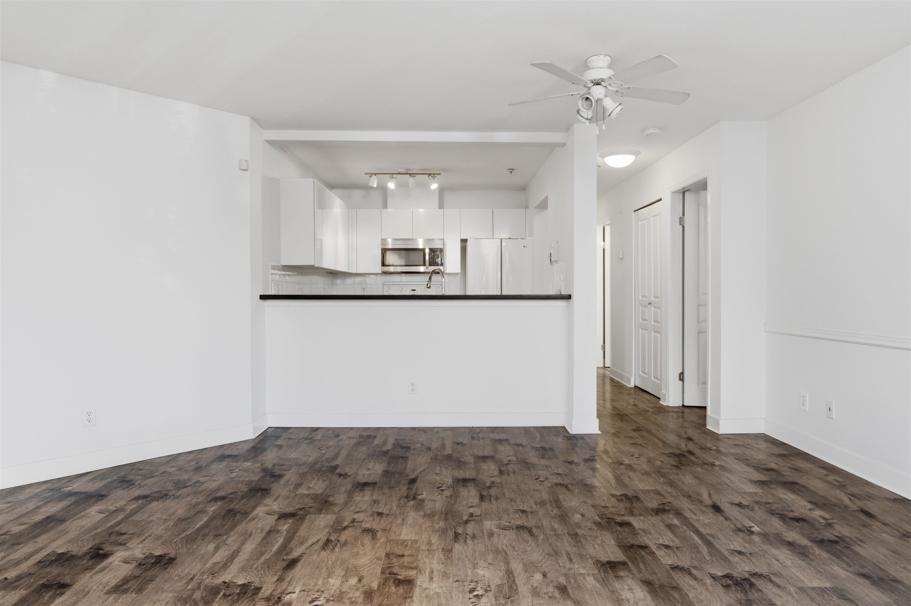 Live the vibrant serene waterfront lifestyle of River District! Quiet, connected and established part of RD community perfect for First Time Buyers and downsizers alike. Unique XL 1BD home w/ 2 bath + Bedroom sized Den, 1 parking, 1 storage locker PLUS storage room on patio w/easy access. Walk out onto your west-facing patio surrounded by lush greenery. Enjoy the beauty of living STEPS from the River waterfront. Ideal location for any Cat and Dog lovers! Generous Master fits more than just King bed. Large E...