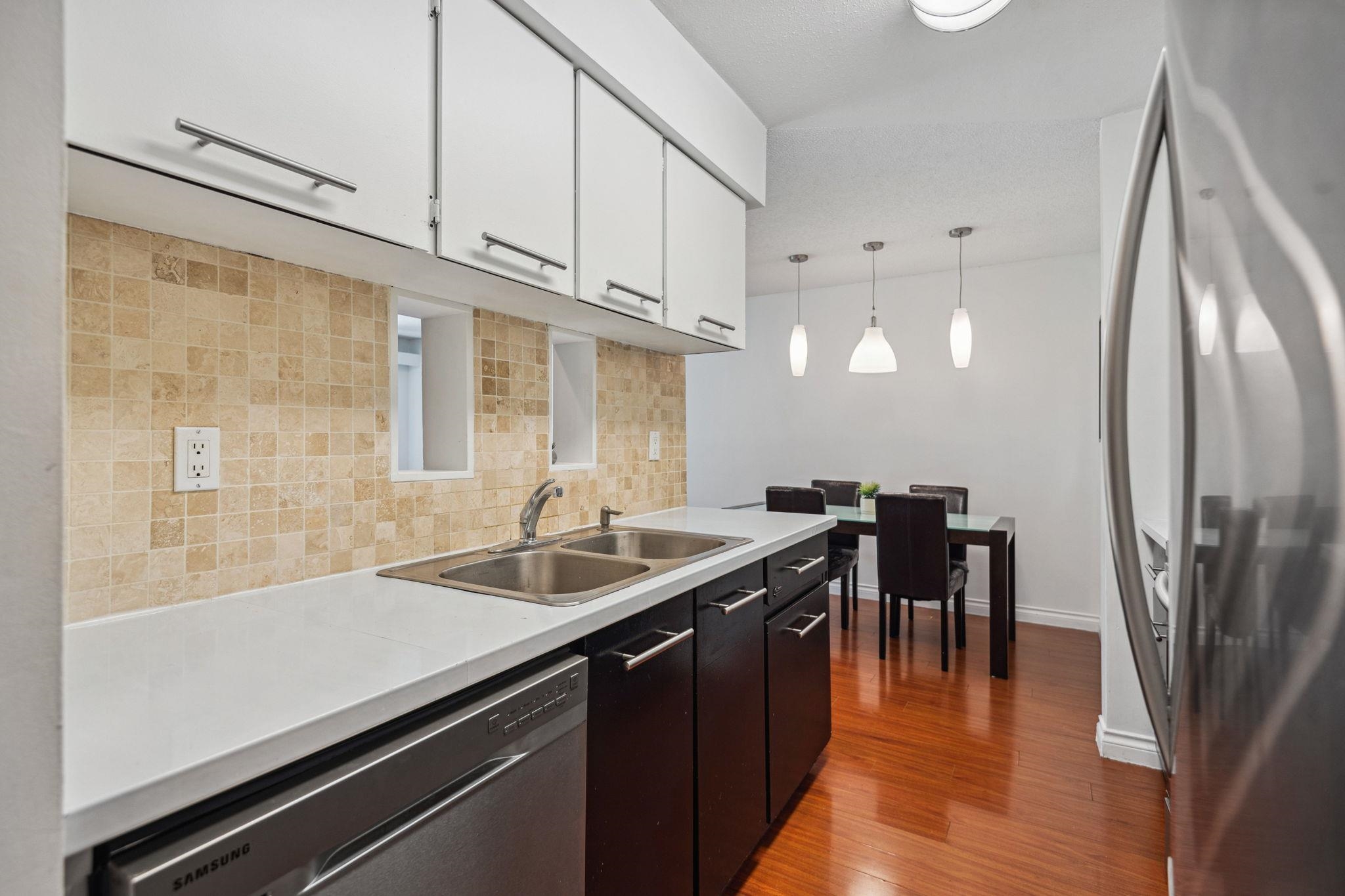 Welcome to Barclay Woods by Bosa! This beautiful 2-bedroom + Den ground floor unit is great for first time home-buyers and young families. Efficient and spacious layout. Direct access to green space from your balcony which is also visually appealing from within the unit. This location offers convenience as it's located just steps away from the Lougheed Skytrain Station. With the Lougheed Town Centre Shopping Mall and Koreatown within walking distance, you are never far from shopping and great dining options...