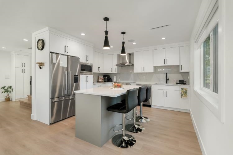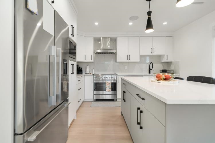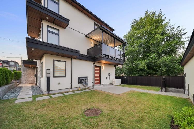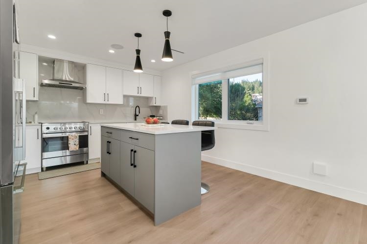 This stunning 5- bedroom side-by-side duplex offers 2205 sqft of luxurious living space in a prime location close to Burnaby North Secondary School and Burnaby Mountain Golf Course. The bright creek side duplex has open concept layout that features a modern kitchen with sleek quartz countertops, stylish backsplash, and premium FISHER & PAYKEL appliances. Enjoy year round comfort with HRV, Air conditioning, and Radiant floor heating throughout. Additional features include security cameras, an alarm system an...