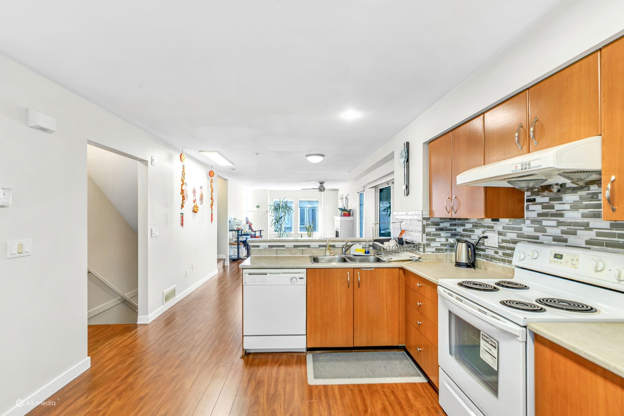Beautiful and refined townhome at Terrane. This meticulously well maintained corner unit, 3-bedroom, 2-bathroom original owner's residence offers 1,540 sq ft of thoughtfully designed space, featuring a very big wrap-around covered balcony, spacious living/dining area with elegant fireplace, a gourmet kitchen with raised breakfast bar, and an adjacent family lounge-perfect for entertaining or relaxing. Step outside to a private fenced patio ideal for summer BBQs or quiet evenings. The double tandem garage pr...