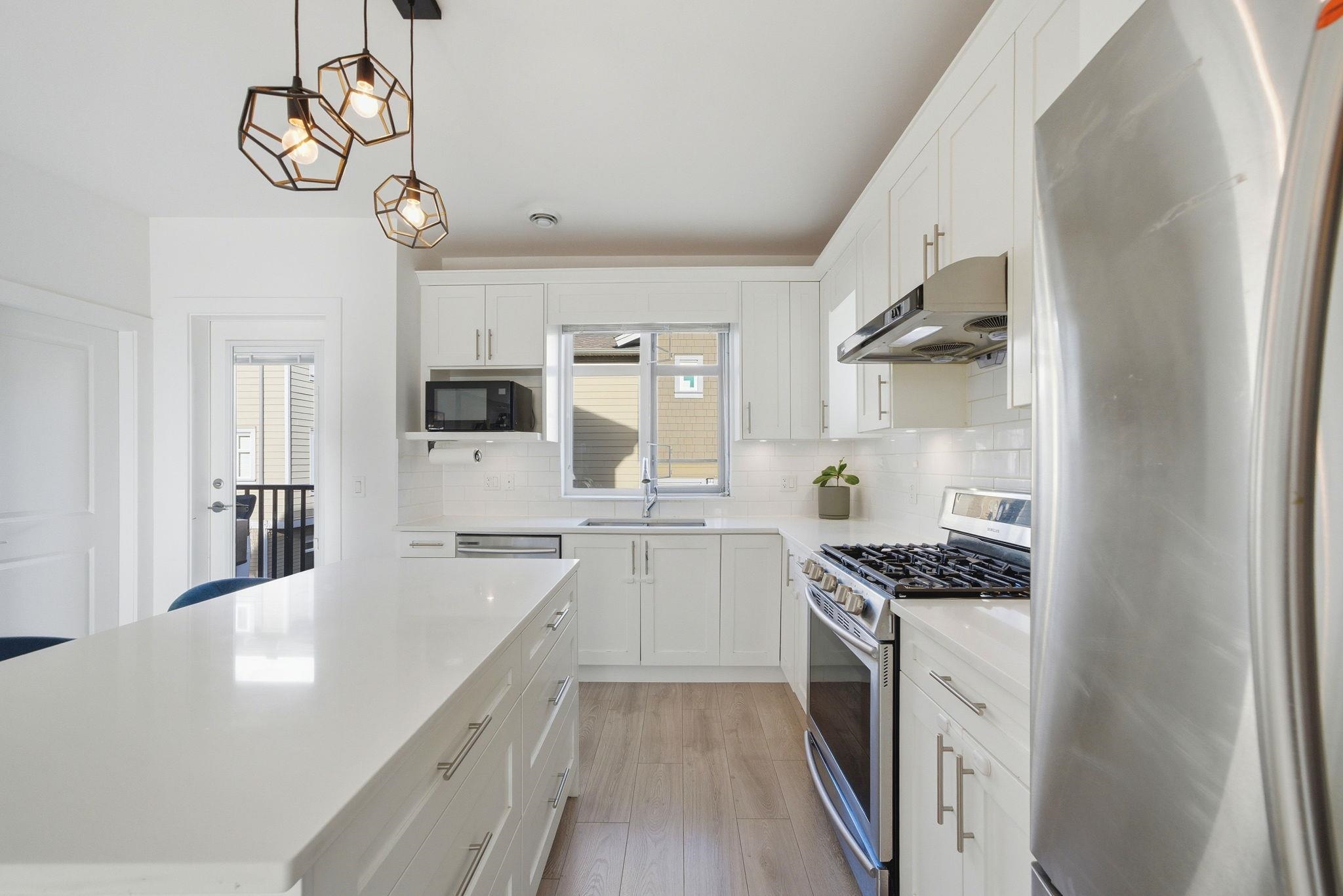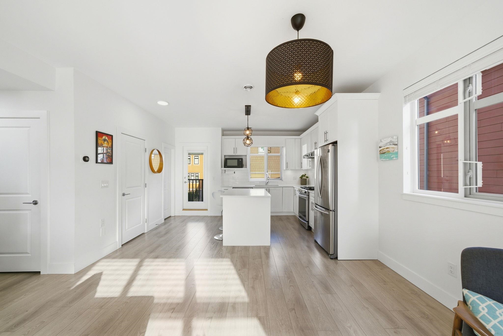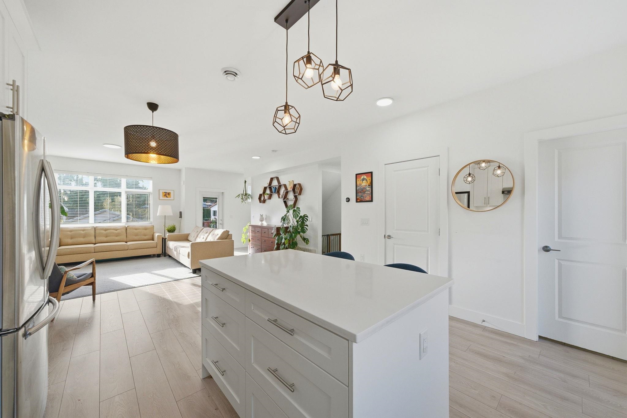 EXTREMELY RARE - DETACHED TOWNHOUSE - quiet street in Coquitlam's family friendly & highly desirable neighbourhood - Maillardville. 4 bed 3 bath 1657sf w/ fantastic open concept main flr feat quartz counters w/ large centre island, stainless appliances, white shaker cabinetry, wide plank laminate floors, spacious living/dining rooms, large windows & great natural light, powder room, front & back patios. Up 3 good sized bedrooms including a beautiful primary w/ walk in closet & 3 pce ensuite. South West view...