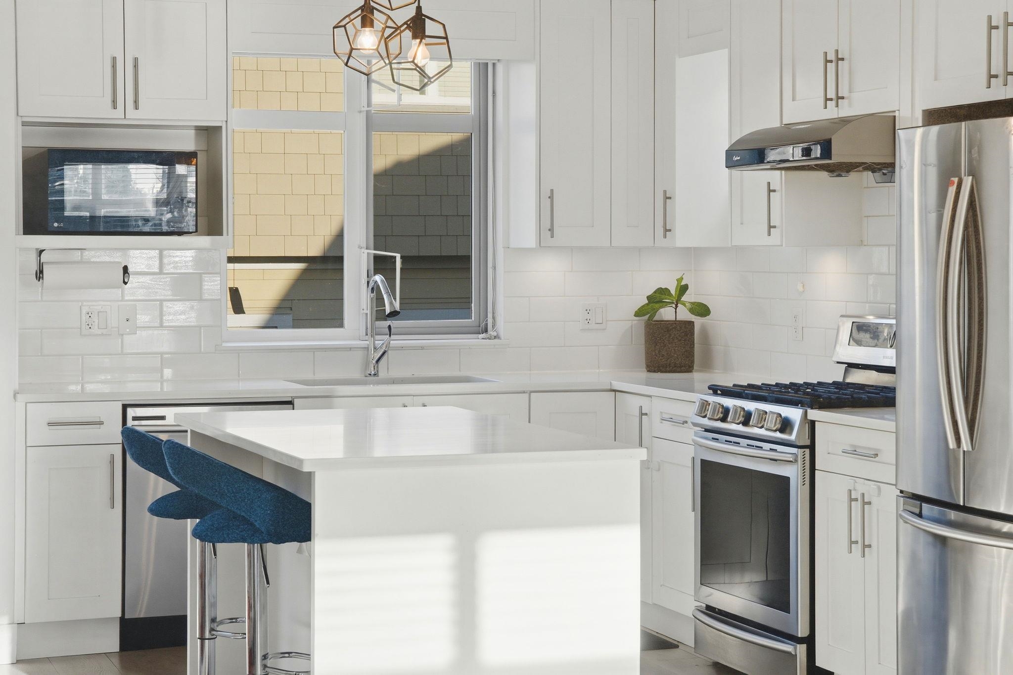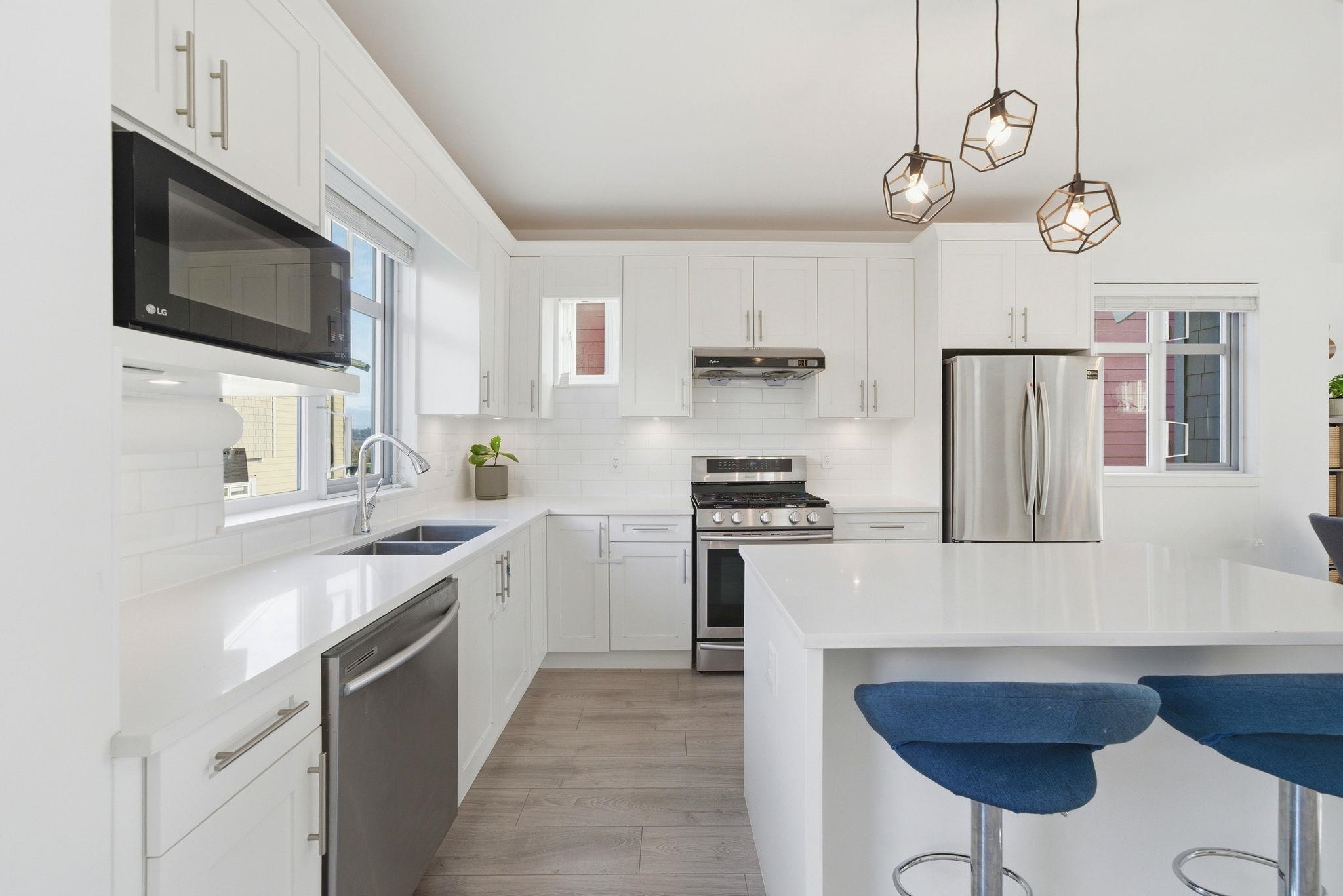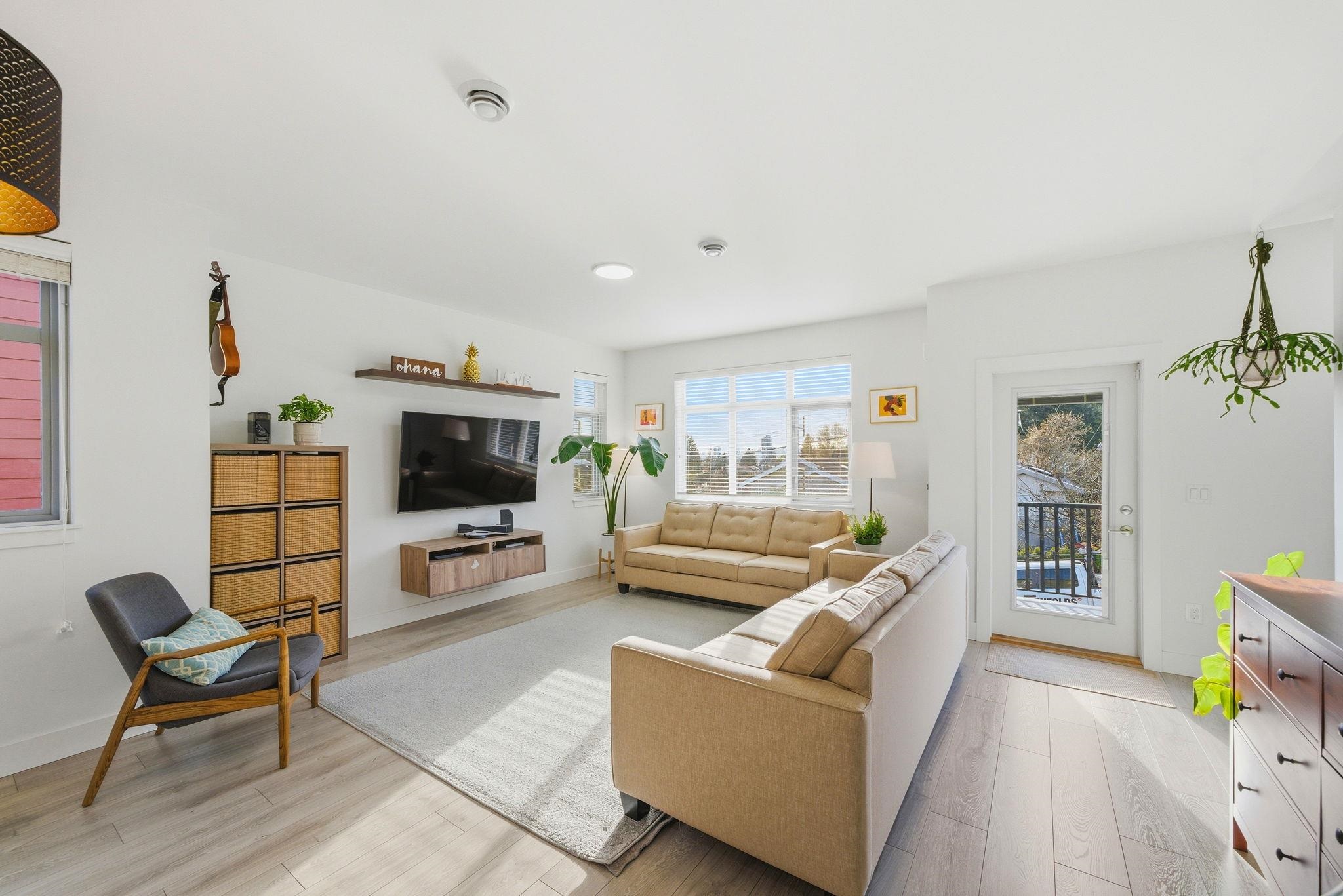 EXTREMELY RARE - DETACHED TOWNHOUSE - quiet street in Coquitlam's family friendly & highly desirable neighbourhood - Maillardville. 4 bed 3 bath 1657sf w/ fantastic open concept main flr feat quartz counters w/ large centre island, stainless appliances, white shaker cabinetry, wide plank laminate floors, spacious living/dining rooms, large windows & great natural light, powder room, front & back patios. Up 3 good sized bedrooms including a beautiful primary w/ walk in closet & 3 pce ensuite. South West view...
