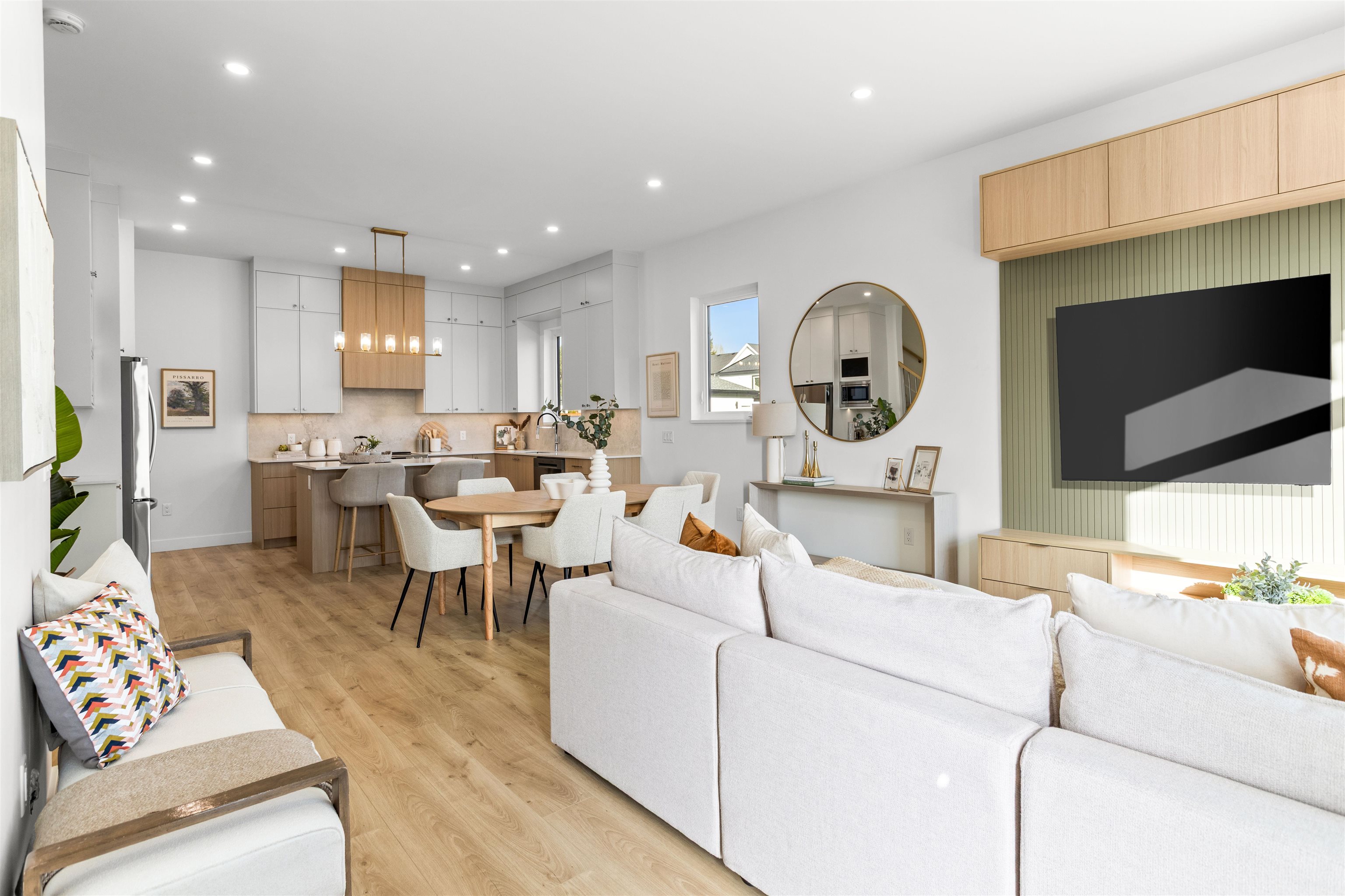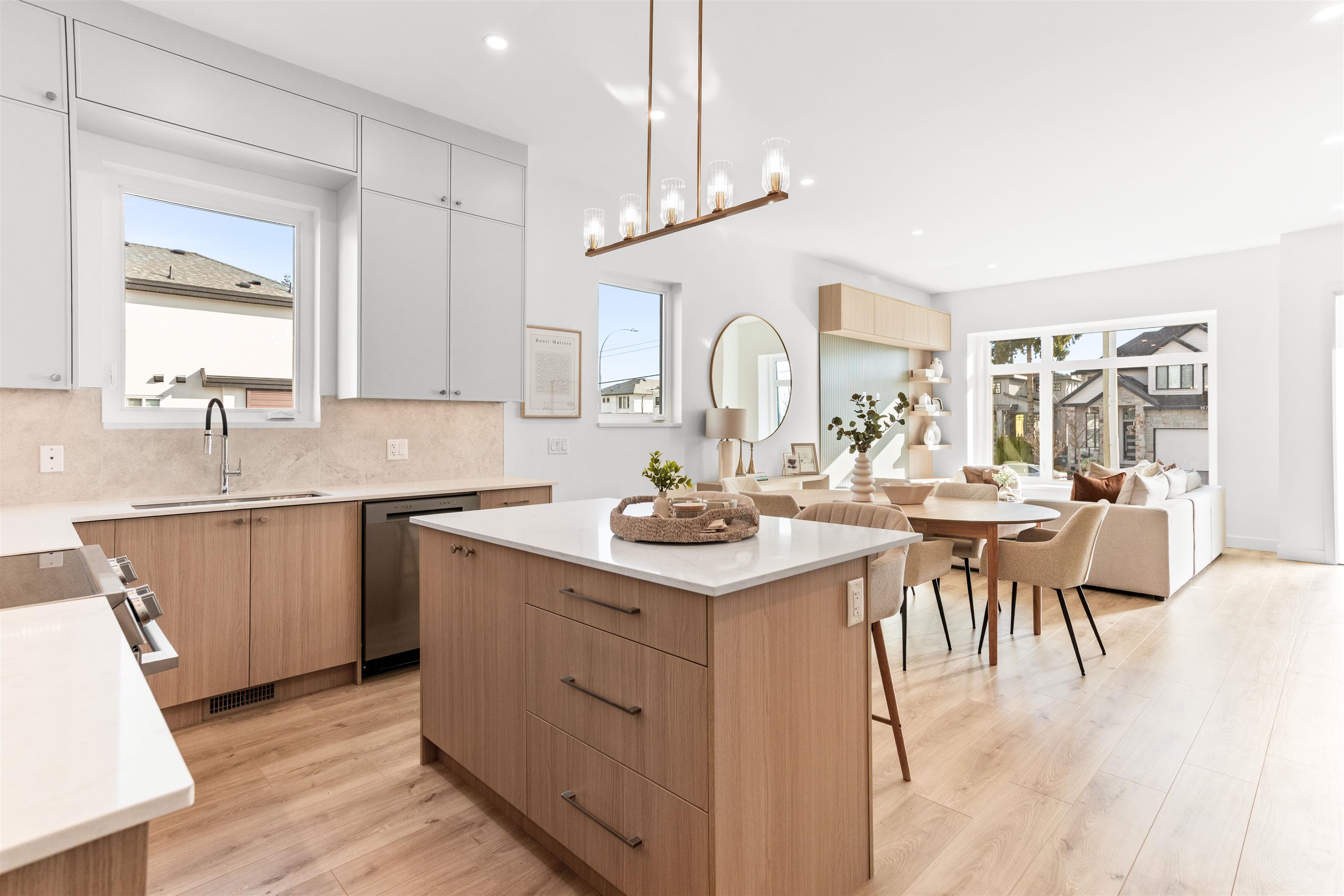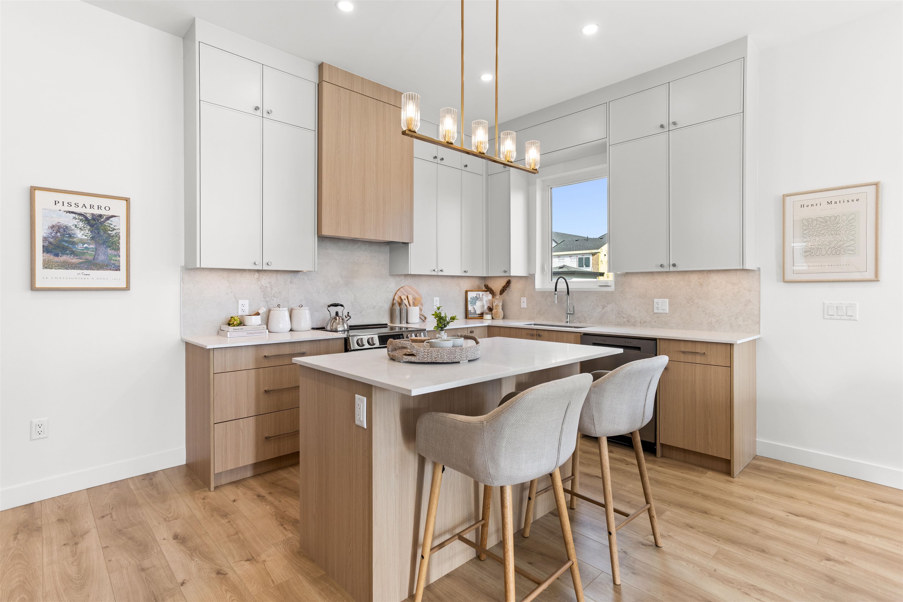 Boutique collection of modern duplex homes in sunny South Surrey! This 3 bed, 2.5 bath half duplex with a 2 bedroom COACH HOUSE offers a functional layout ideal for families or rental income.Main floor features a spacious kitchen w/custom cabinetry, quartz countertops, stainless steel appliances w/induction range, large island with eating bar. 10’ ceilings, laminate flooring,walk-out access to backyard from the main floor. High-efficiency gas furnace with A/C for year-round comfort. Built-in millwork includ...