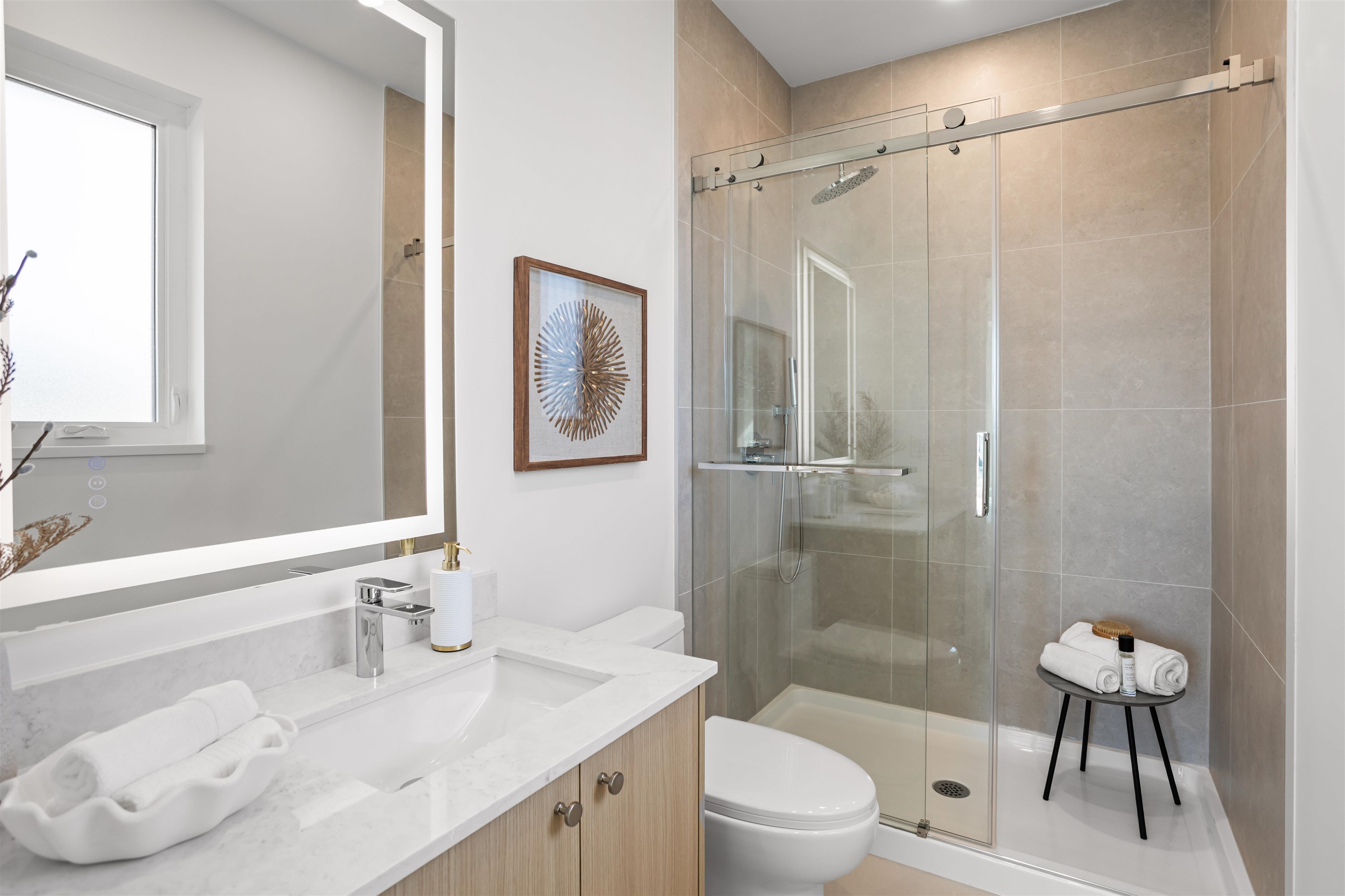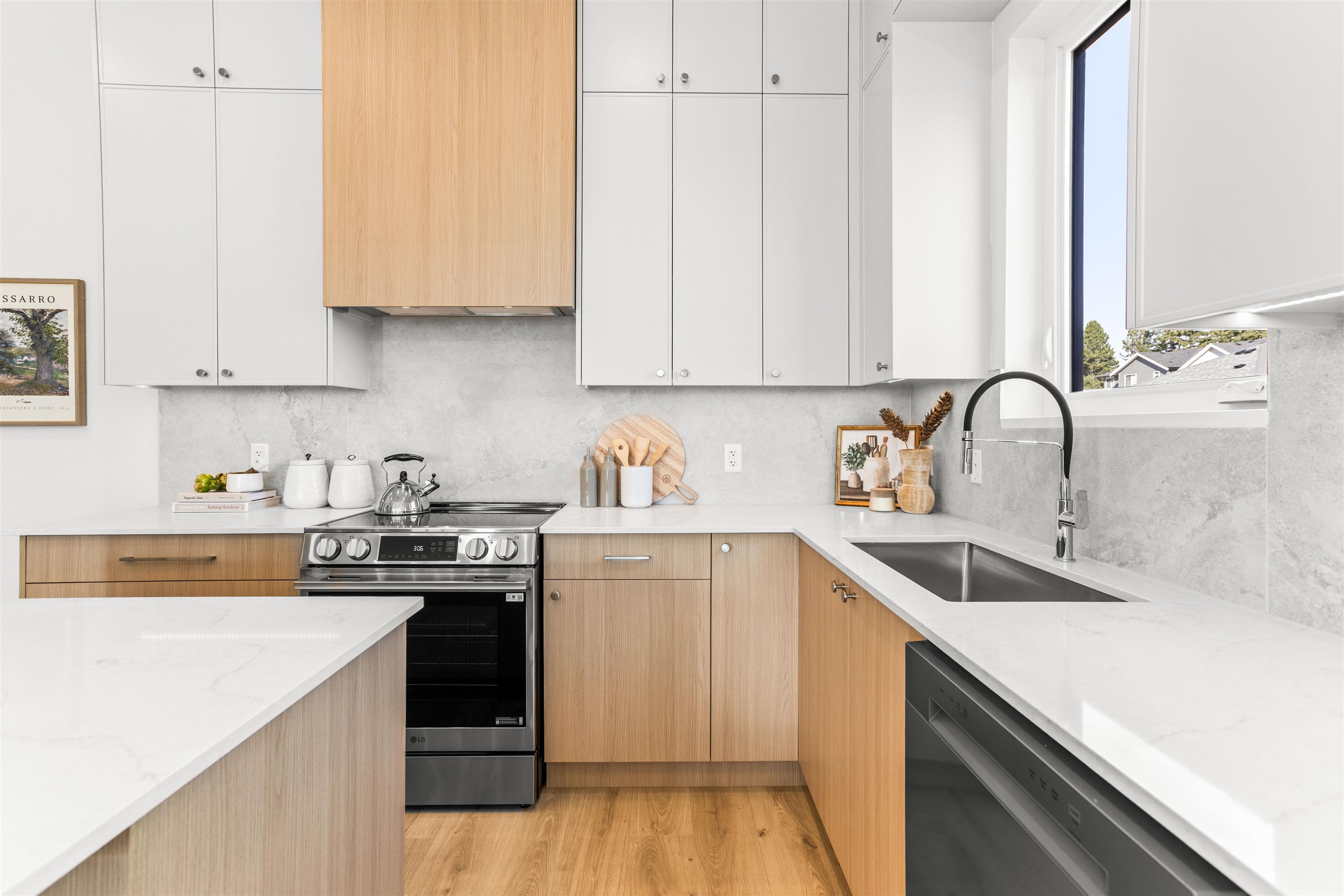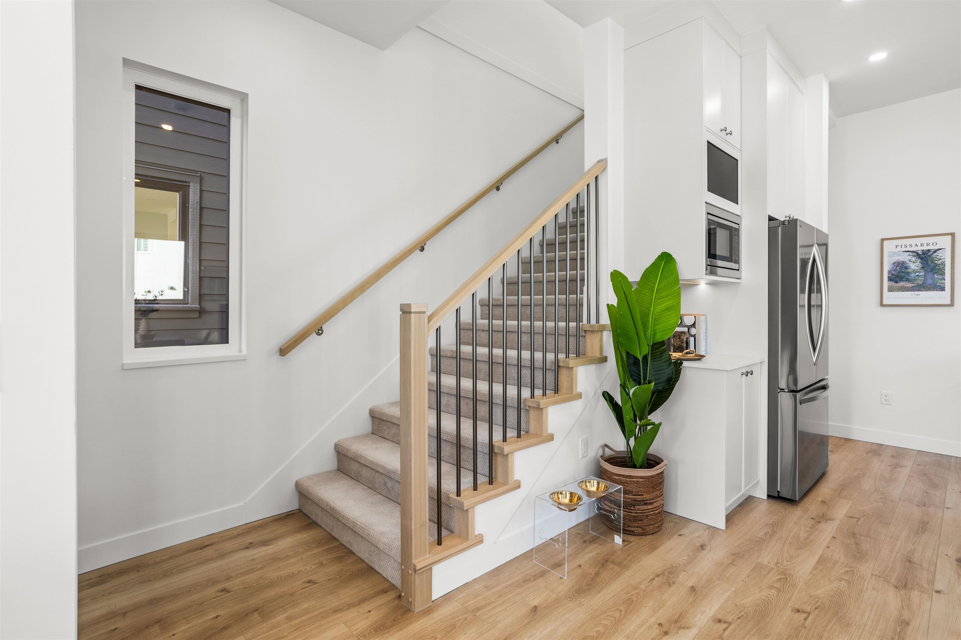 Boutique collection of modern duplex homes in sunny South Surrey! This 3 bed, 2.5 bath half duplex with a 2 bedroom COACH HOUSE offers a functional layout ideal for families or rental income.Main floor features a spacious kitchen w/custom cabinetry, quartz countertops, stainless steel appliances w/induction range, large island with eating bar. 10’ ceilings, laminate flooring,walk-out access to backyard from the main floor. High-efficiency gas furnace with A/C for year-round comfort. Built-in millwork includ...