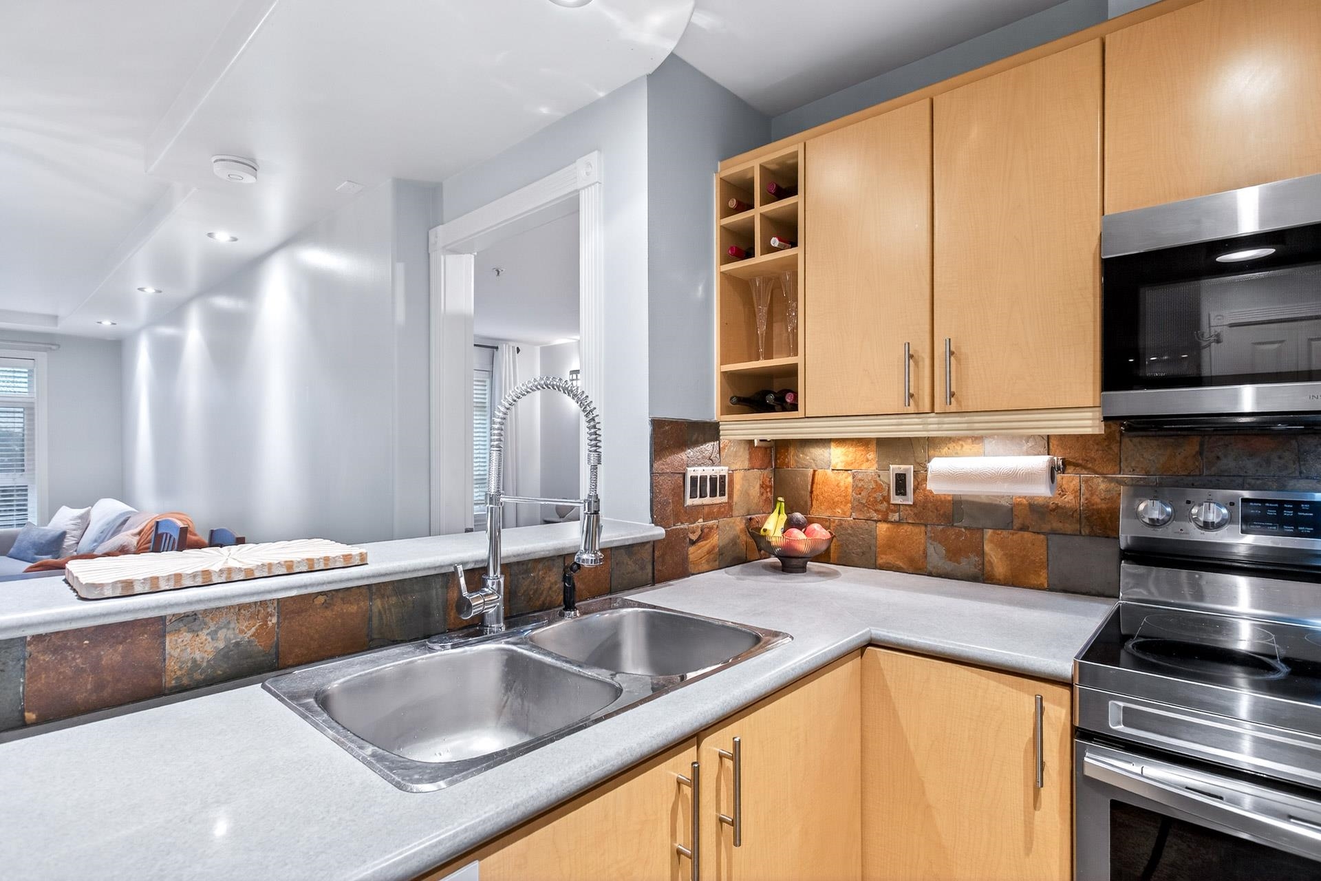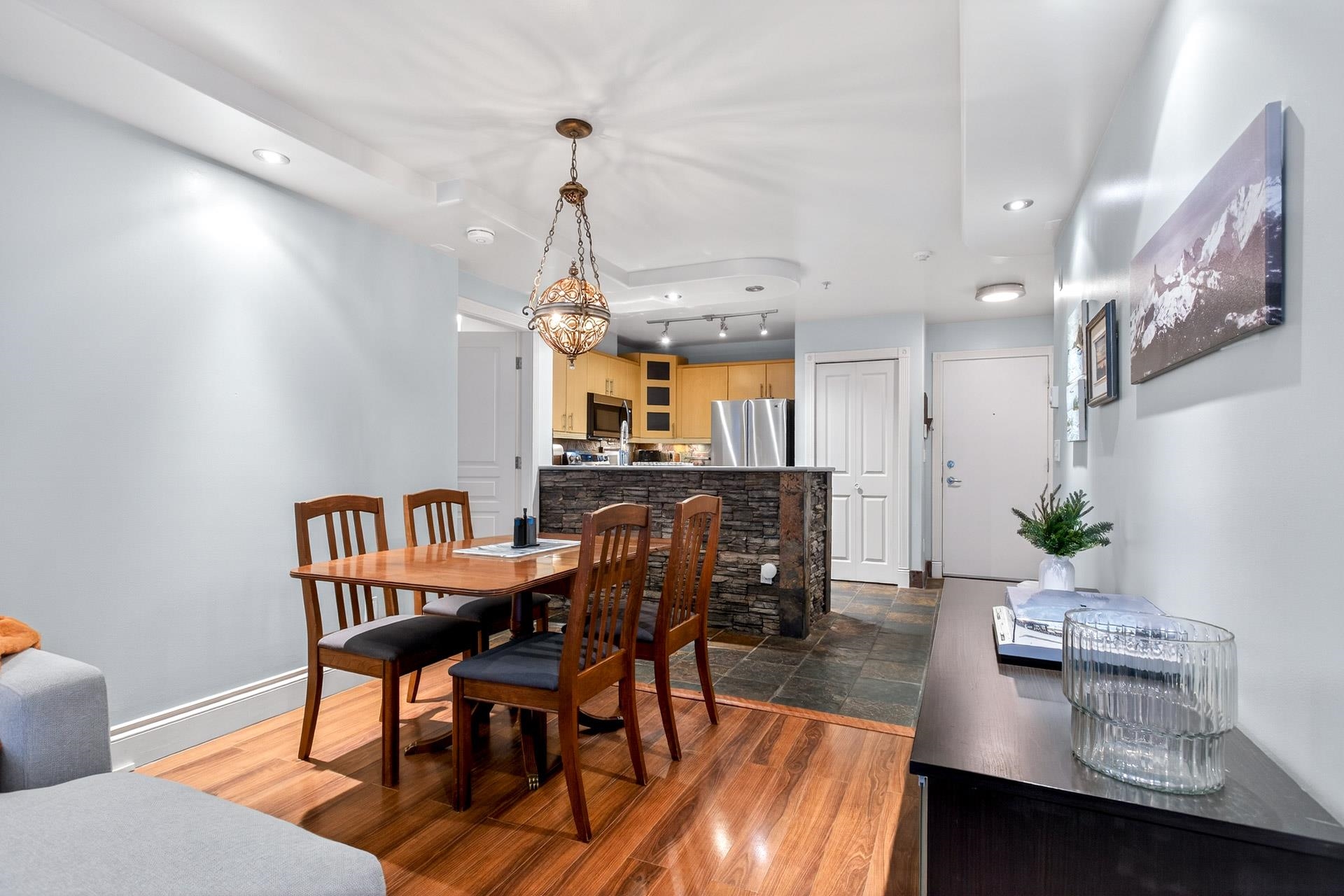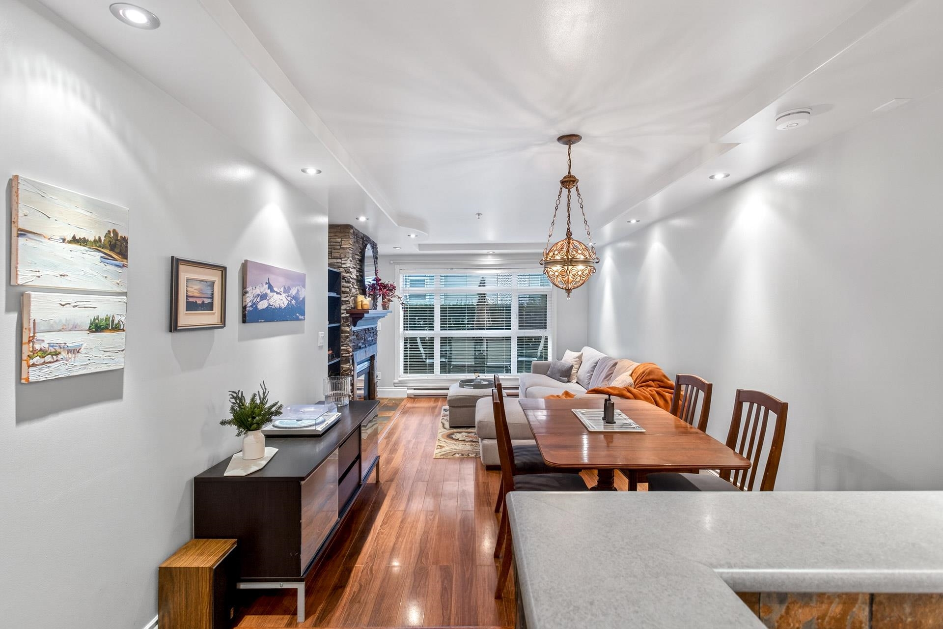 Elevated ground-floor home in the desirable Sonrisa, ideally located facing the quiet courtyard w/ mountain views. Spacious 2 bdrm / 2 bath layout w/ bdrms on separate sides—ideal for families & guests. Extra-large patio perfect for entertaining or outdoor living. It has been thoughtfully renovated over time w/ upgrades throughout, incl s/s appliances, newer flooring, updated lighting & finishes. Cozy gas f/p included in maint. fee. Unbeatable Port Moody location—steps to SkyTrain and WCE, Rocky Point Park,...