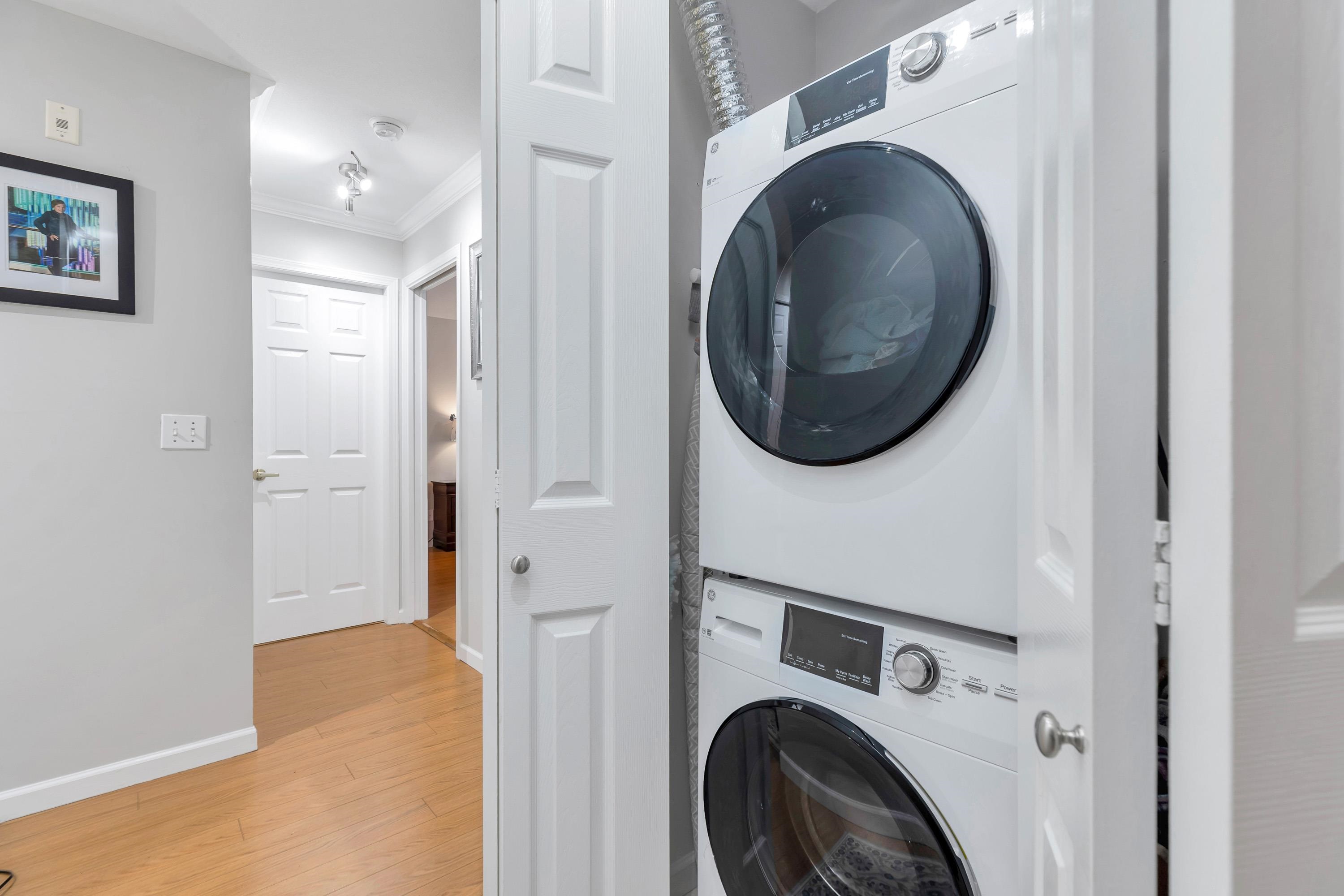 Bright, happy, and move-in ready! Welcome to this 2 bed, 1 bath, 1 parking gem with sunny patio, perfect for morning coffee or evening relaxation. The space feels bright and spacious with a Galley style white kitchen, brand-new washer & dryer, fresh paint throughout, and sleek electric blinds for effortless living. Cozy up by the gas fireplace in the living room, then step outside and enjoy being just steps to town-shops, cafes, and daily essentials right at your doorstep. Clean, modern, and full of good vi...