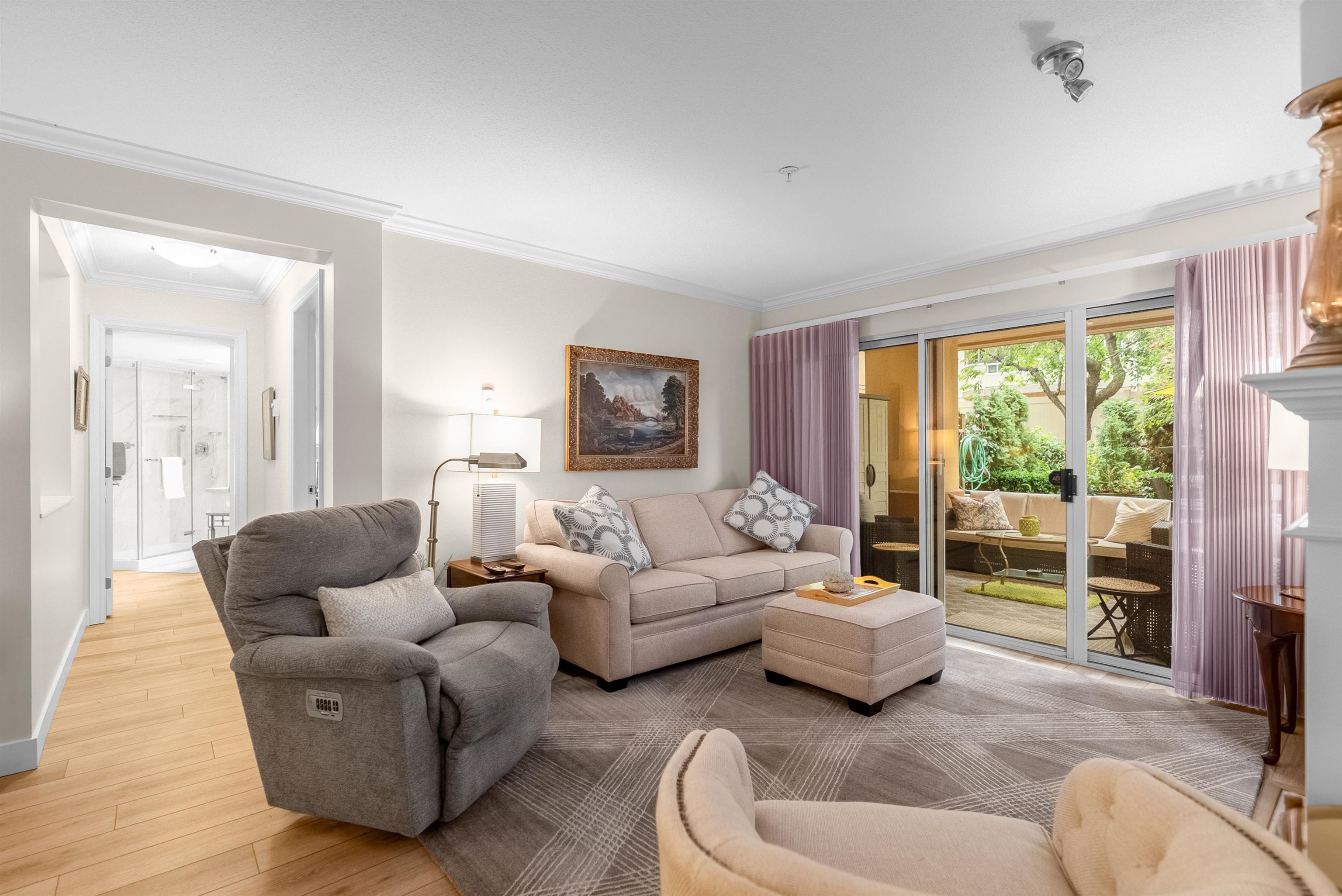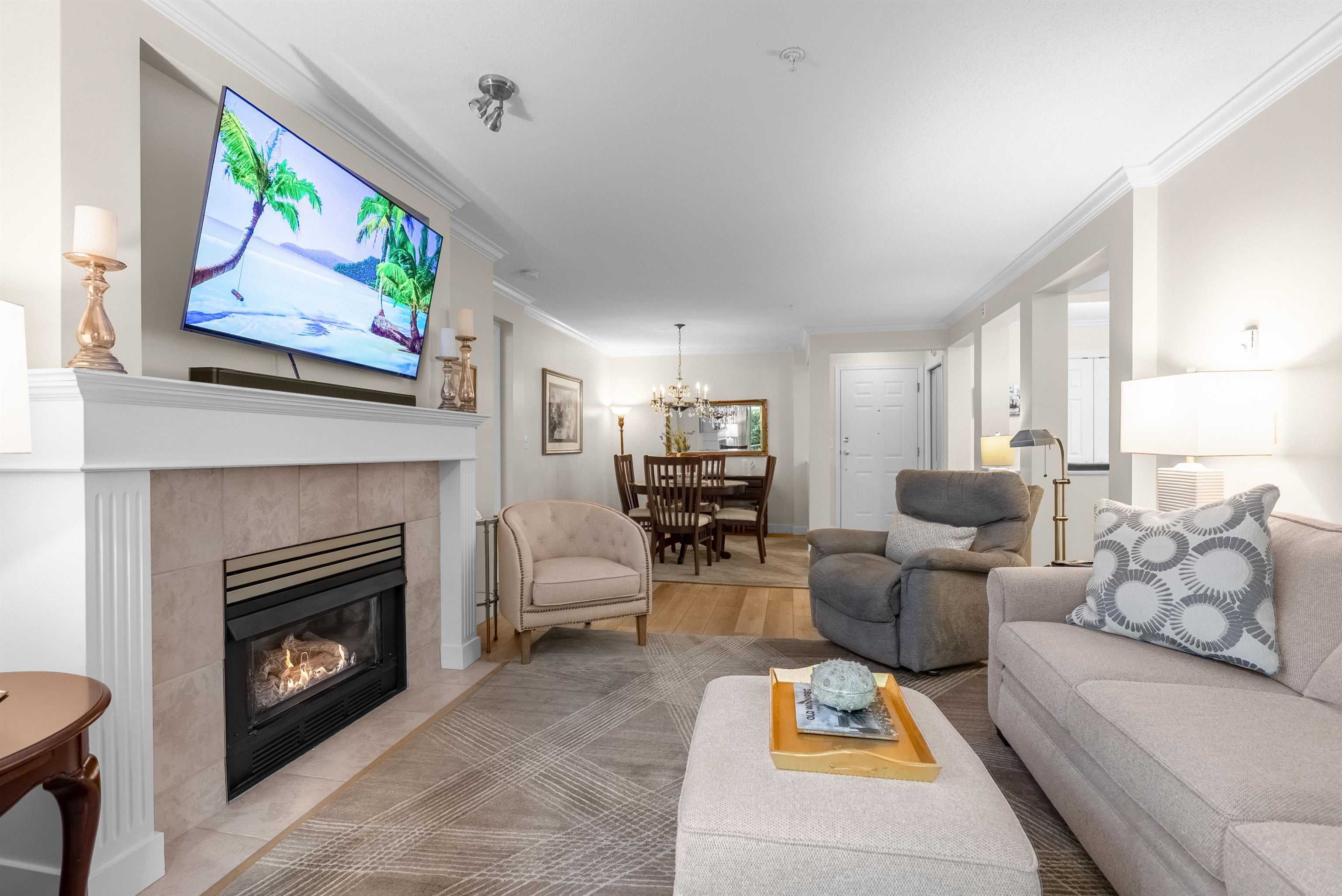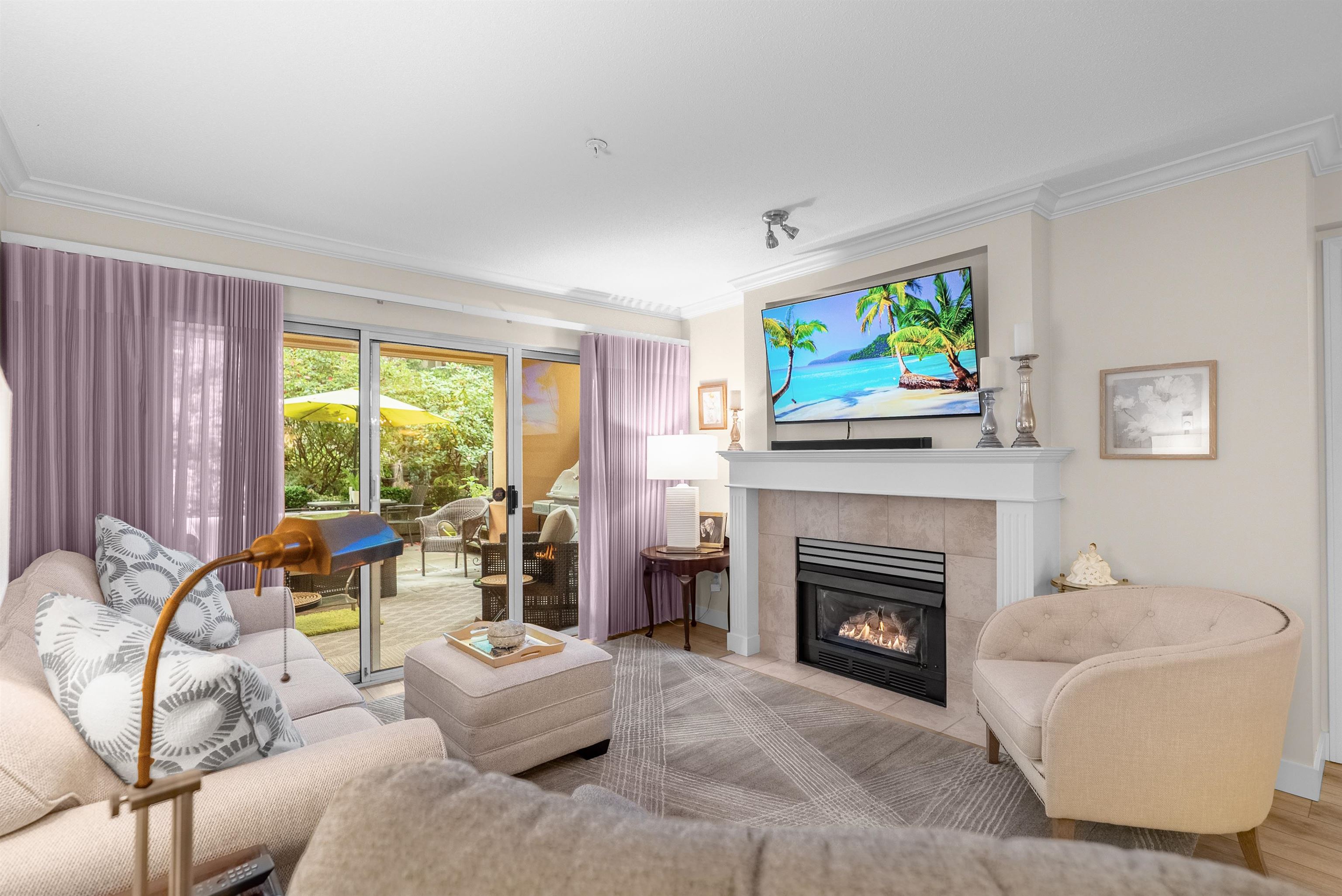 Discover this spacious, beautifully updated ground-level home in the highly desirable Villa Pacific community. Bright and inviting, it features large windows, elegant vinyl flooring, a cozy gas fireplace, and a modern kitchen with high-end LG appliances and refreshed bathrooms. The smart floor plan offers two well-separated bedrooms: a king-sized primary suite with refined ensuite and a generous queen-sized second bedroom. Step outside to your expansive, private covered patio, perfect for year-round enjoyme...