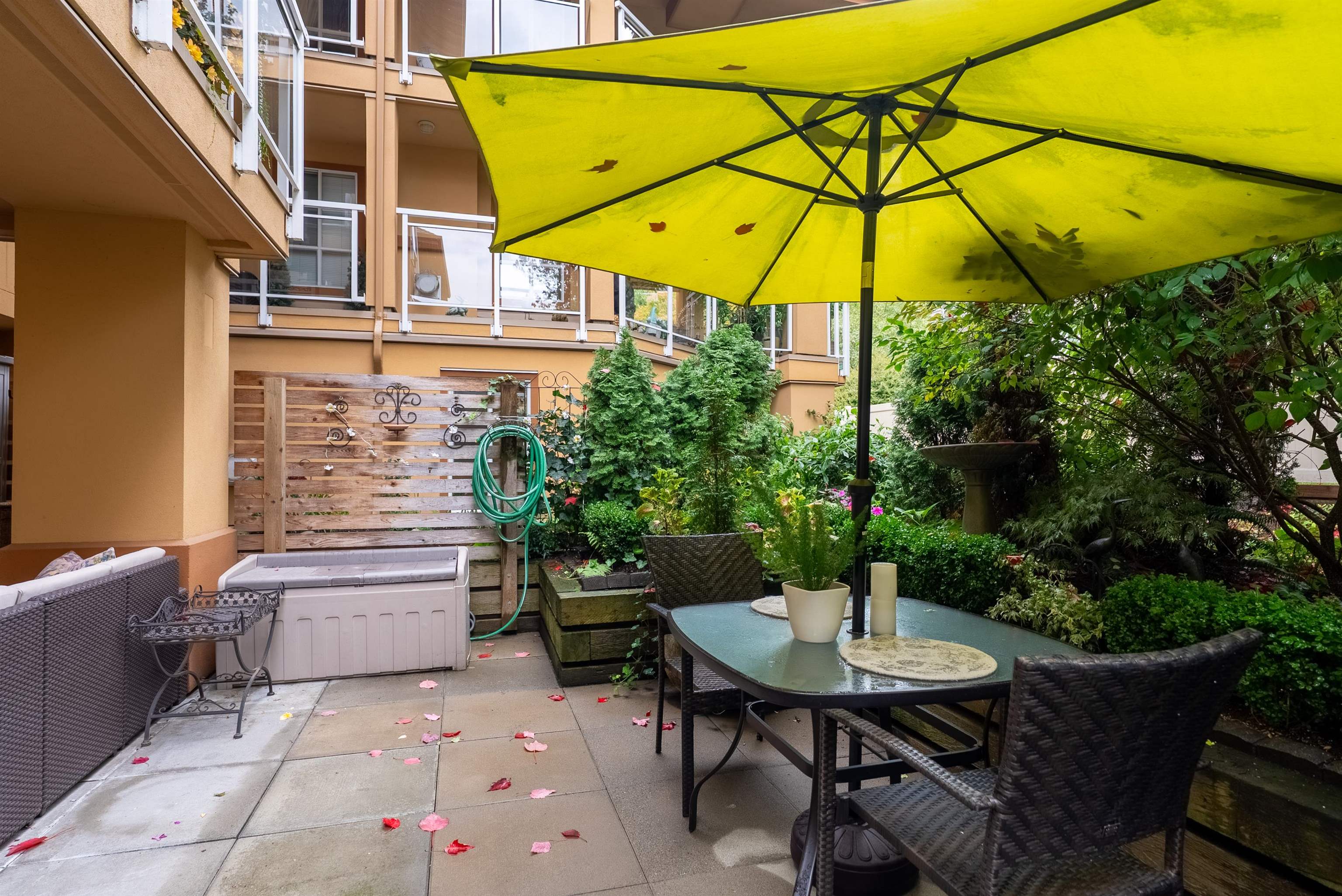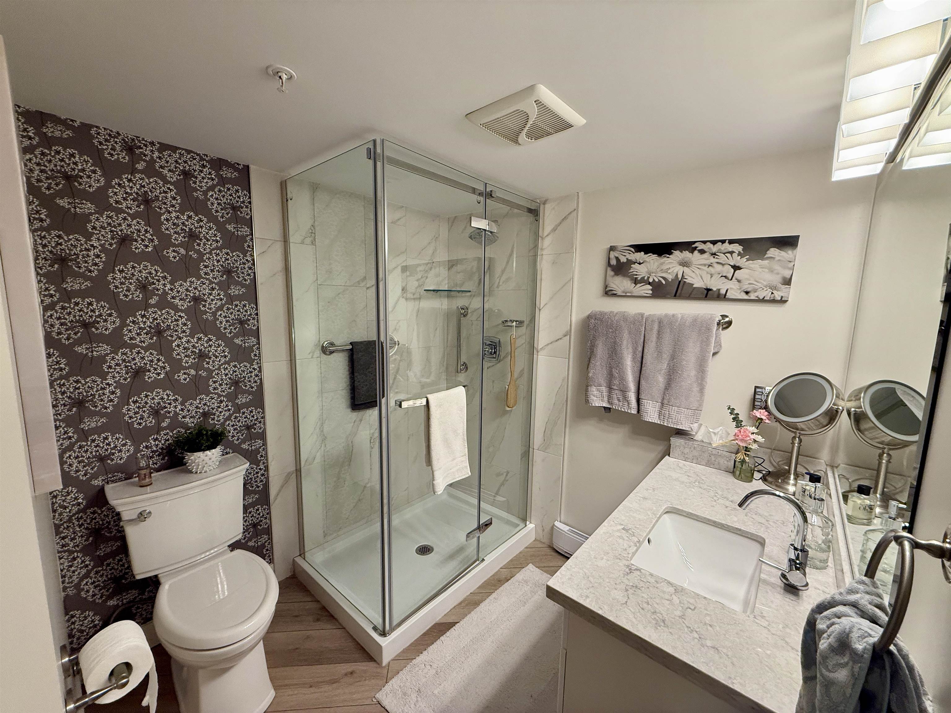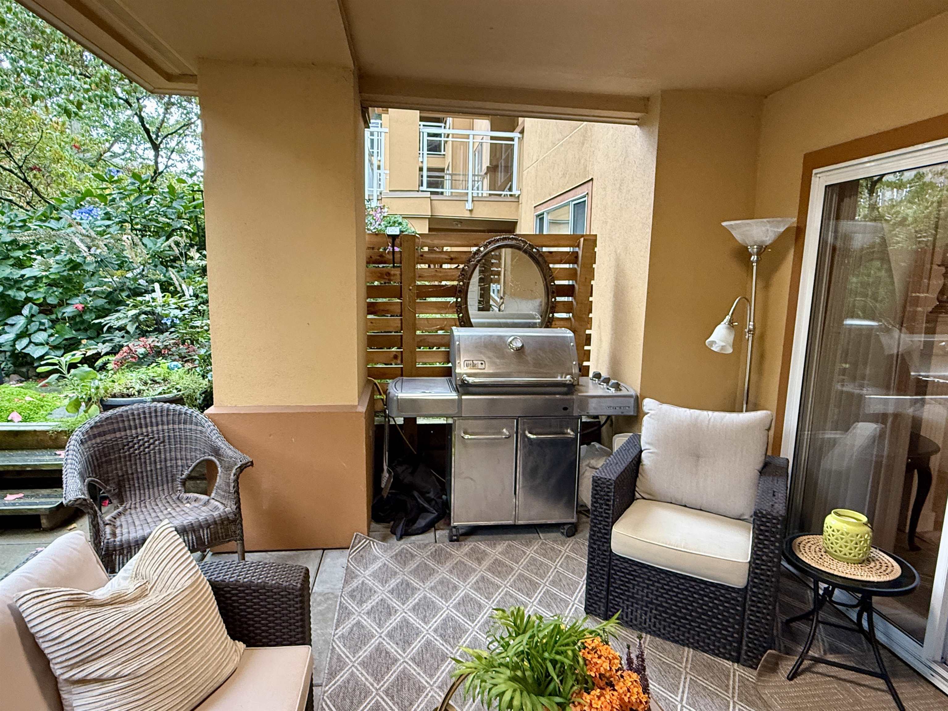 Discover this spacious, beautifully updated ground-level home in the highly desirable Villa Pacific community. Bright and inviting, it features large windows, elegant vinyl flooring, a cozy gas fireplace, and a modern kitchen with high-end LG appliances and refreshed bathrooms. The smart floor plan offers two well-separated bedrooms: a king-sized primary suite with refined ensuite and a generous queen-sized second bedroom. Step outside to your expansive, private covered patio, perfect for year-round enjoyme...