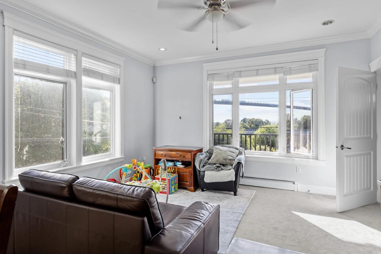 Perched on a 5,920 sq.ft. elevated corner lot with mountain and Alex Fraser Bridge views, this spacious Nordel home blends comfort, flexibility, and strong income potential. The main floor offers a bright living room, large kitchen, and a convenient primary bedroom. Upstairs boasts 4 generously sized bedrooms, each with its own ensuite. The expansive 1,410 sq.ft. basement with 6’5” ceiling provides exciting possibilities—whether you choose to transform it into a media room, or customize it to suit your life...