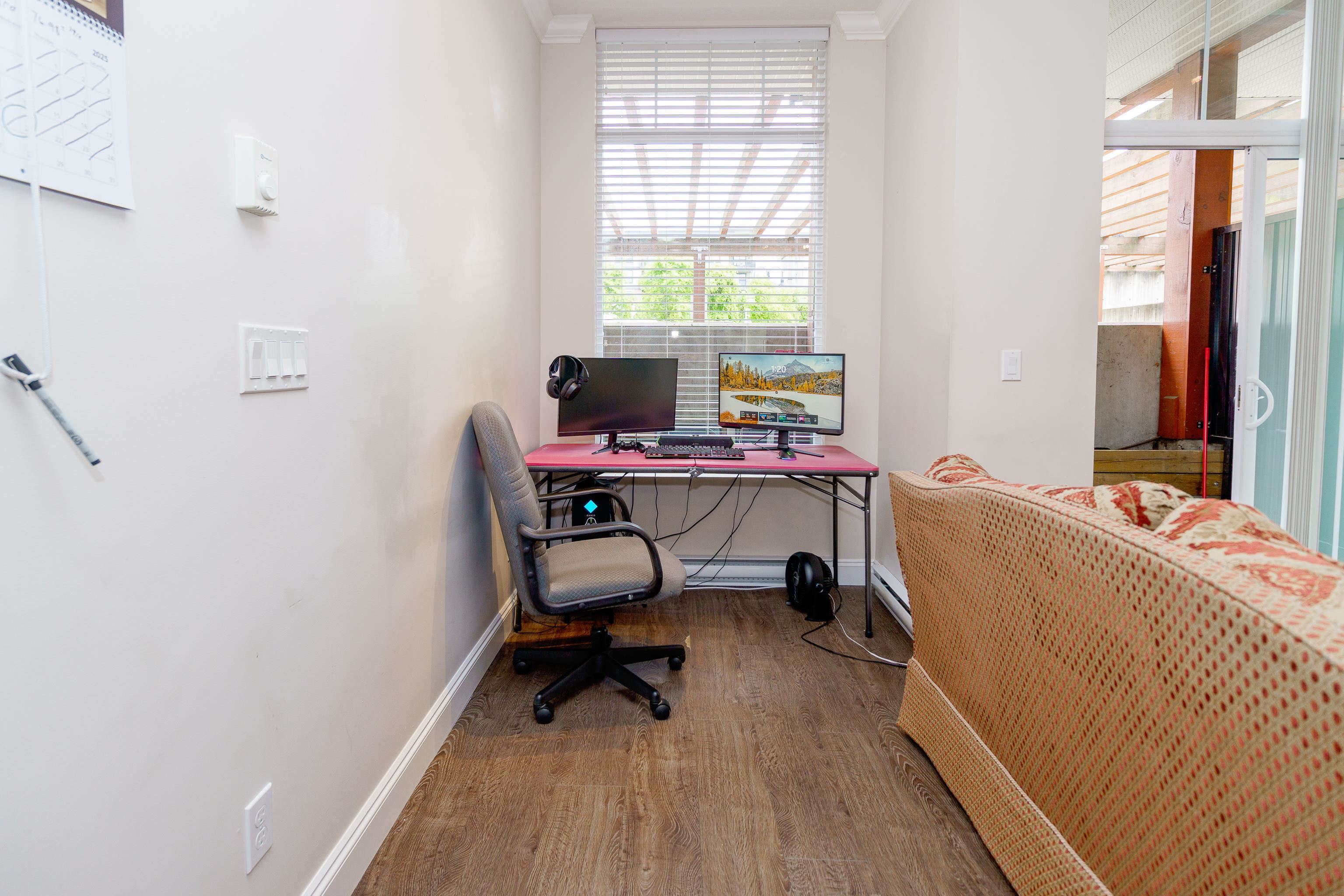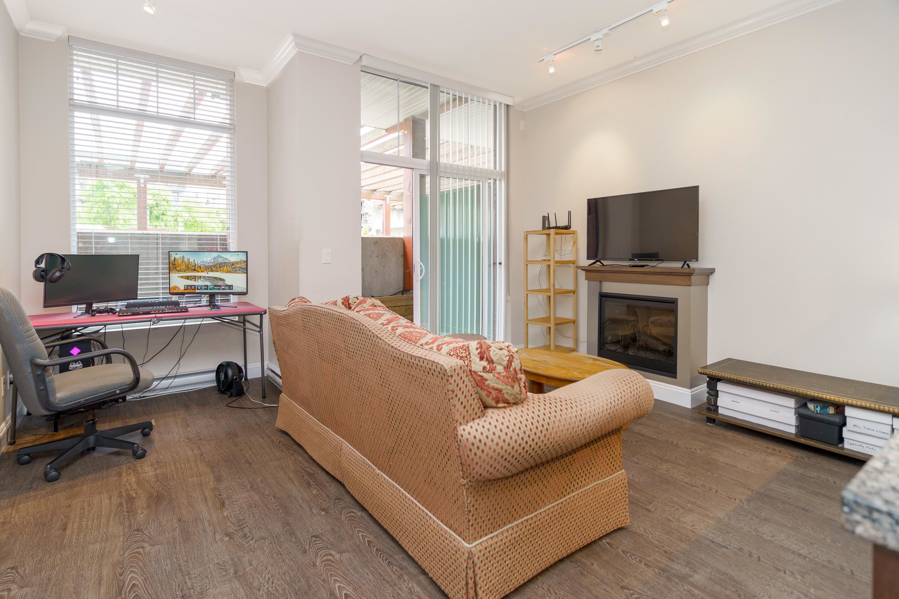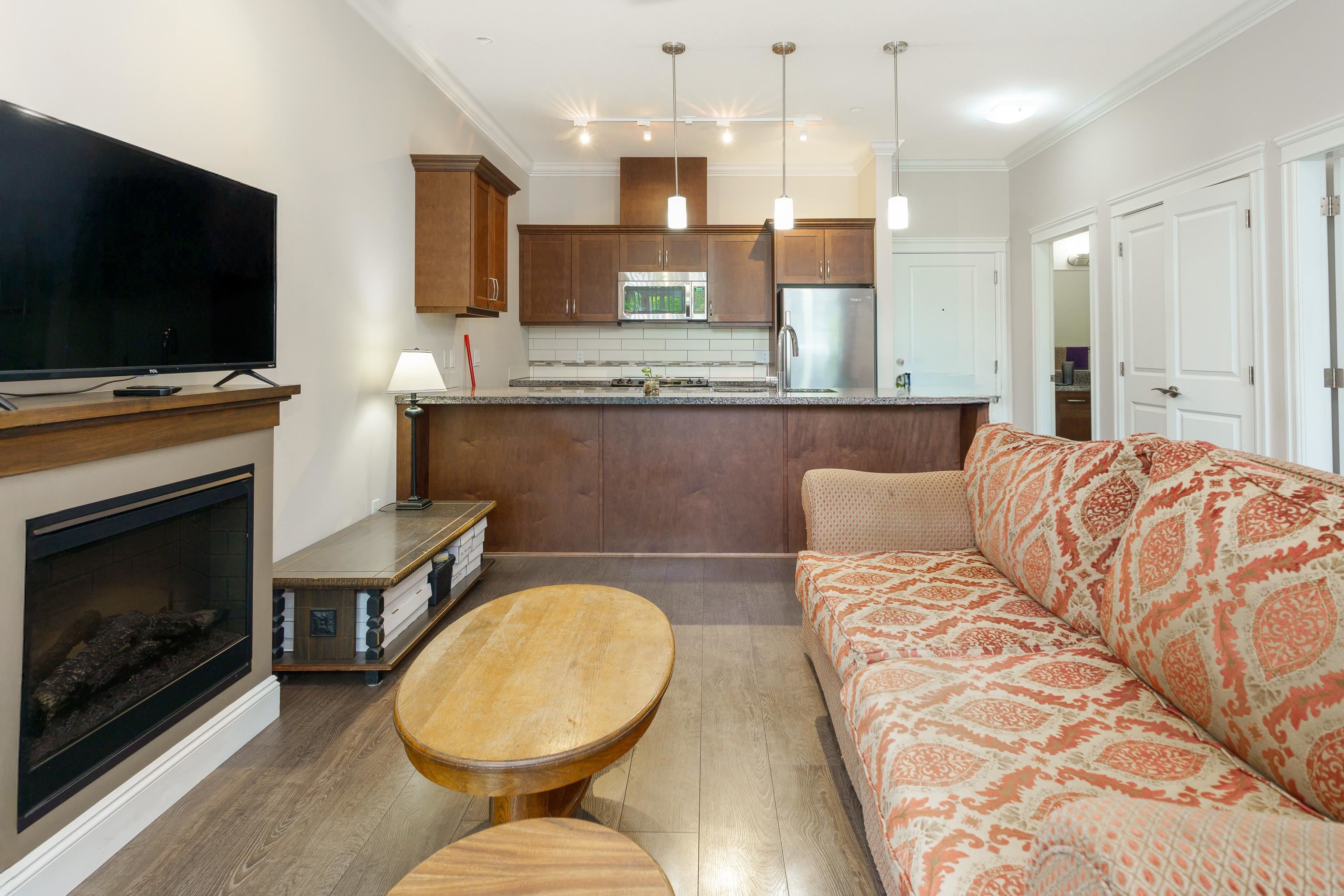 Bright and modern 1-bedroom condo in sought-after Brickwater Village! Nearly 600 sq ft of open-concept living with soaring 11-ft ceilings and large windows that fill the space with natural light. Overlooking the quiet courtyard, this home features quality laminate flooring, a spacious layout, and contemporary finishes. Located in the heart of town with restaurants, shopping, transit, and recreation just steps away. Ideal for first-time buyers or investors seeking style, comfort, and convenience.