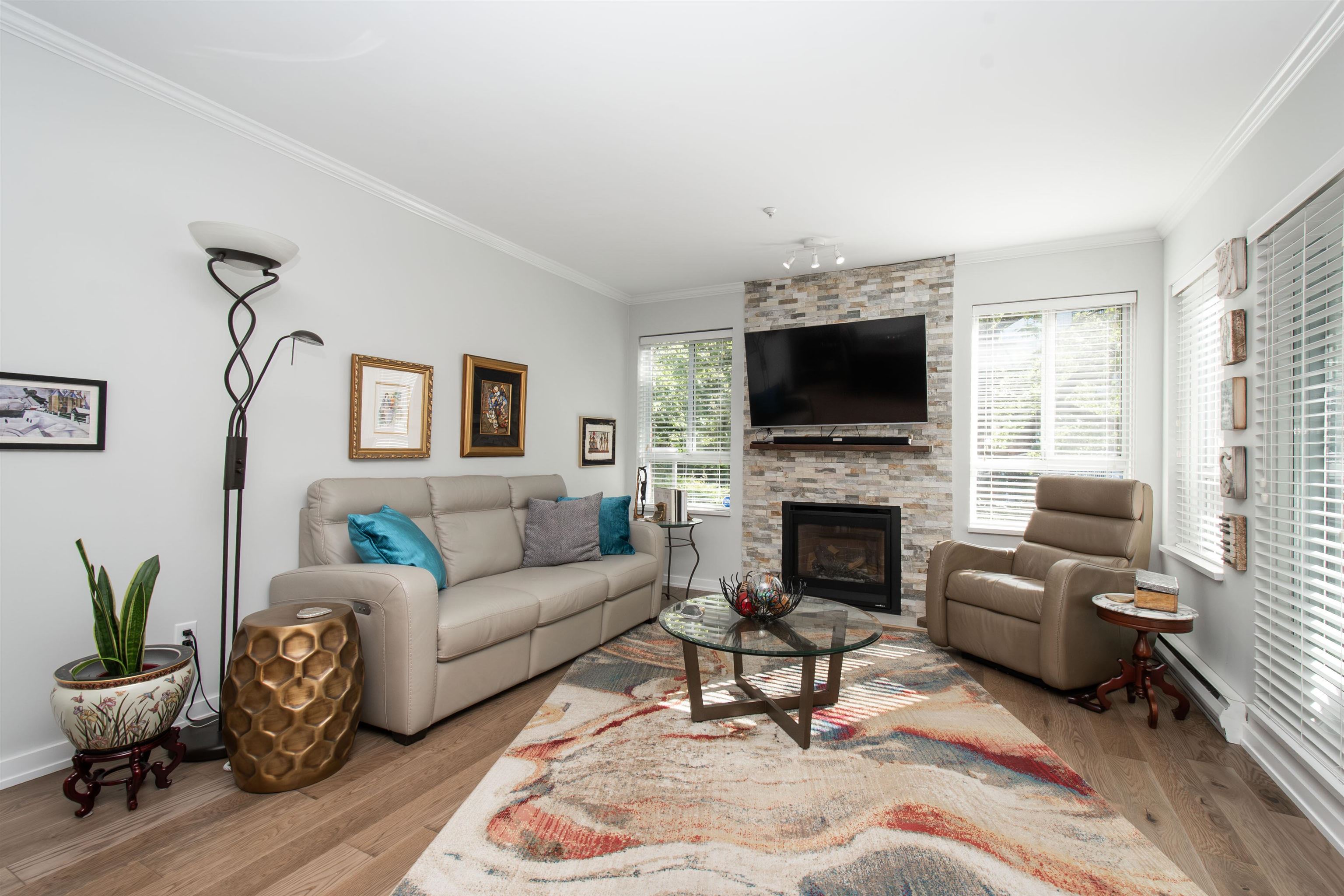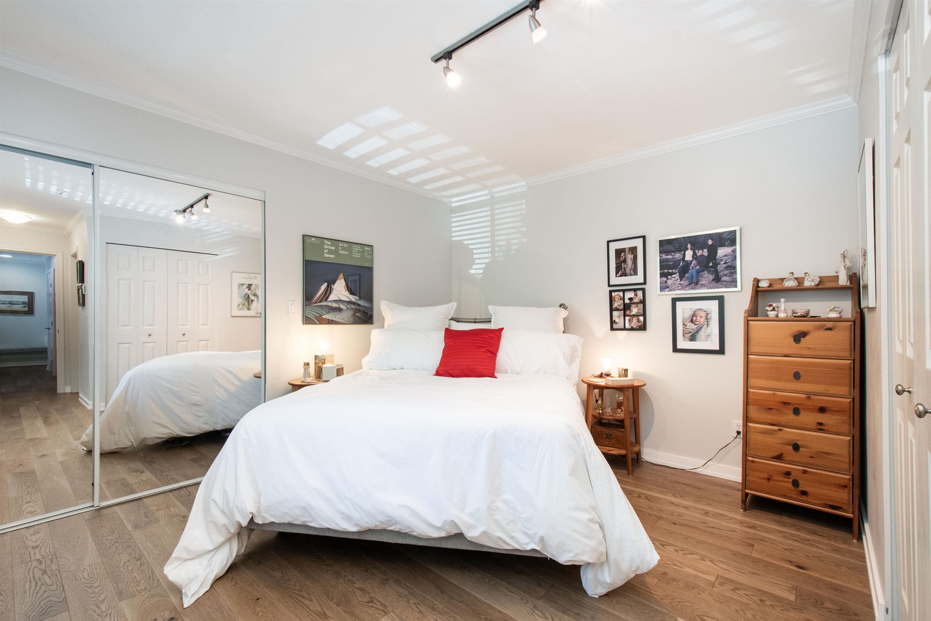 This freshly painted SW-facing above ground condo offers 2 bedrooms, 2 bathrooms & 960 sq.ft. of bright living with 2 balconies, new hardwood floors, upgraded baths, a renovated kitchen with new cabinets, near-new quartz counters & a newer gas fireplace with stone ledger. The primary bedroom fits a king bed with 2 closets and a new ensuite walk-in shower, while the second bedroom includes a wall bed with a brand-new Casper mattress. With in-suite laundry, pet-friendly bylaws, parking, 2 bike lockers, storag...