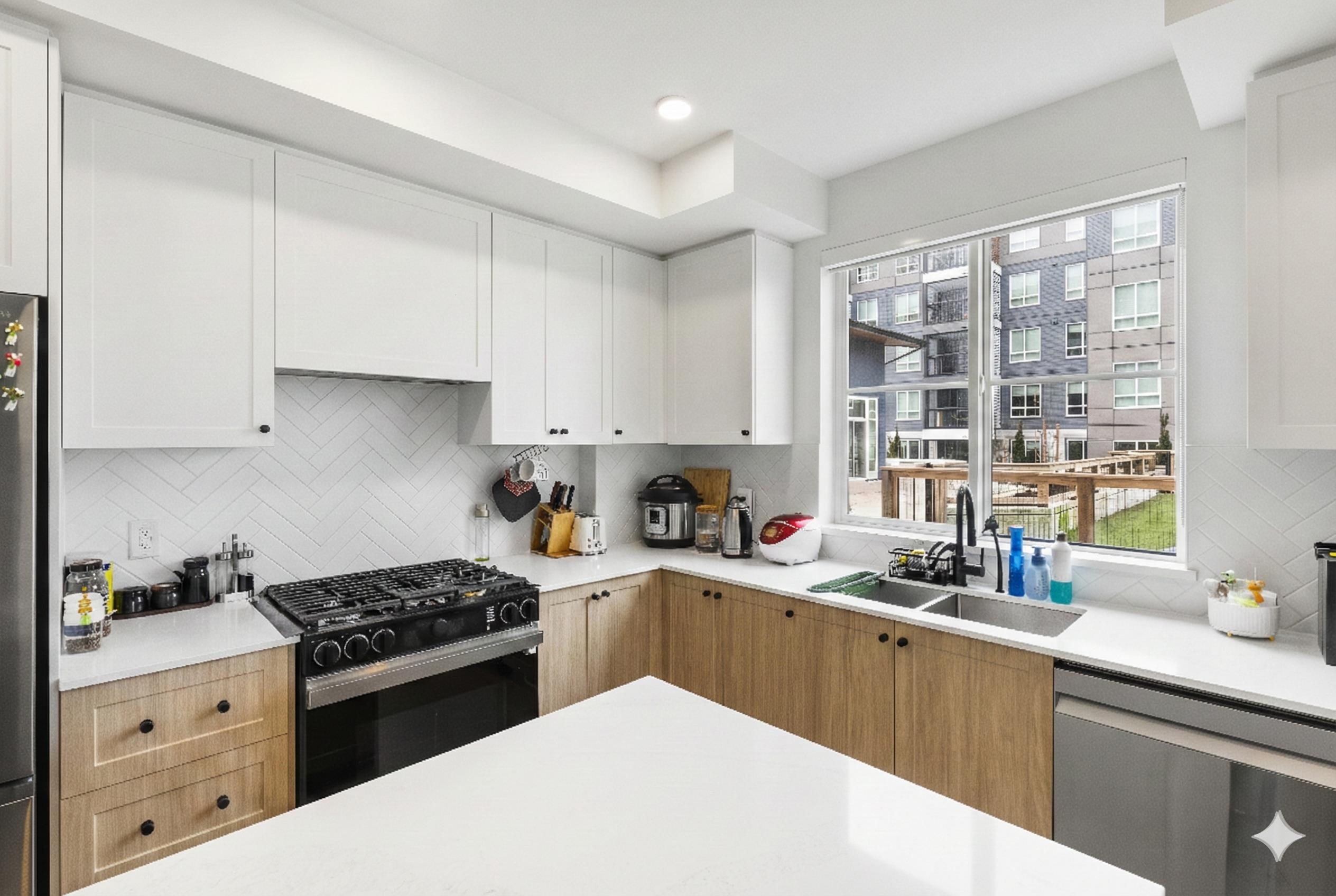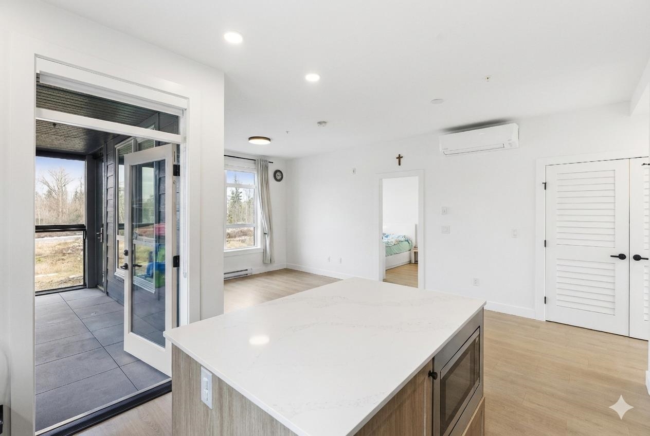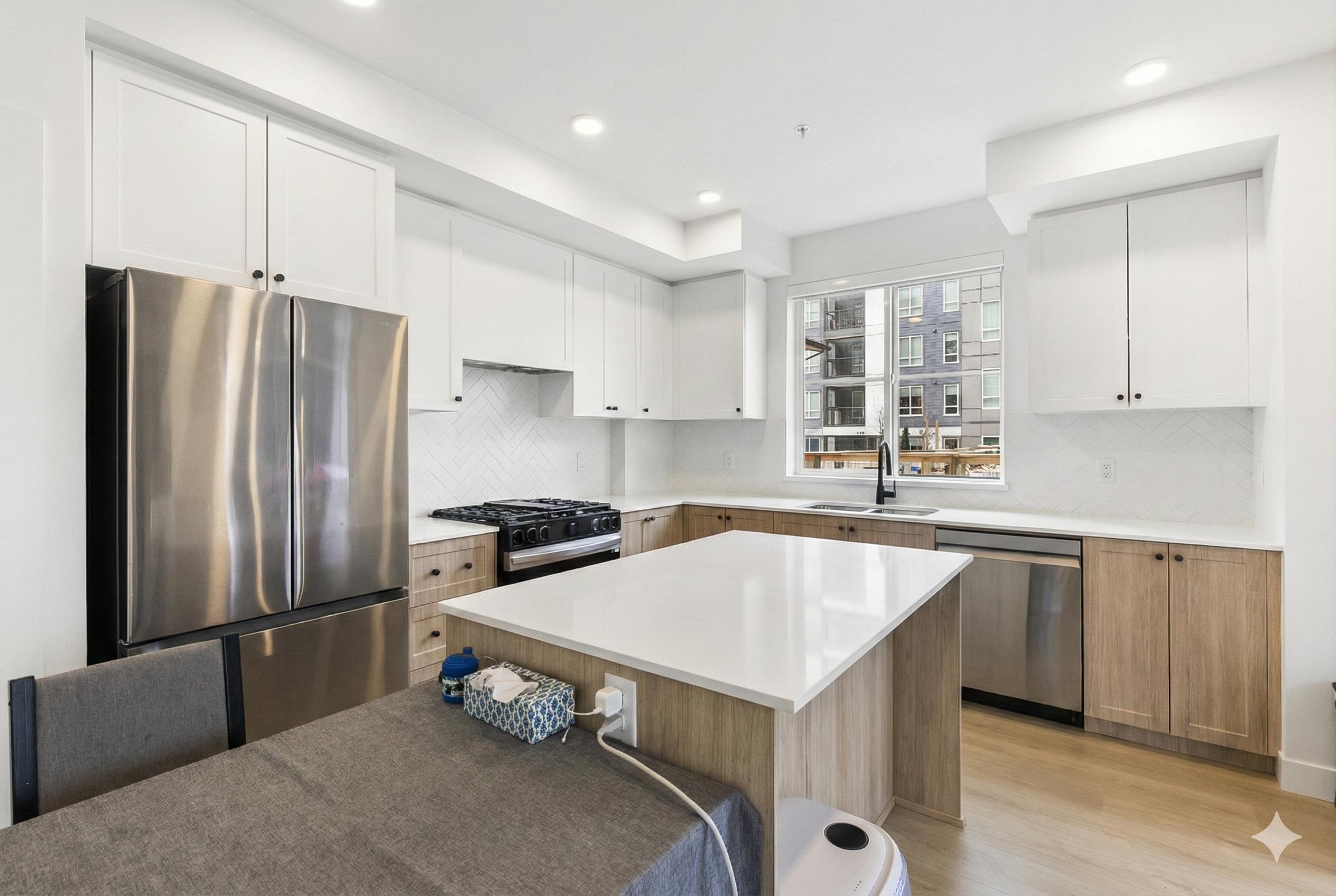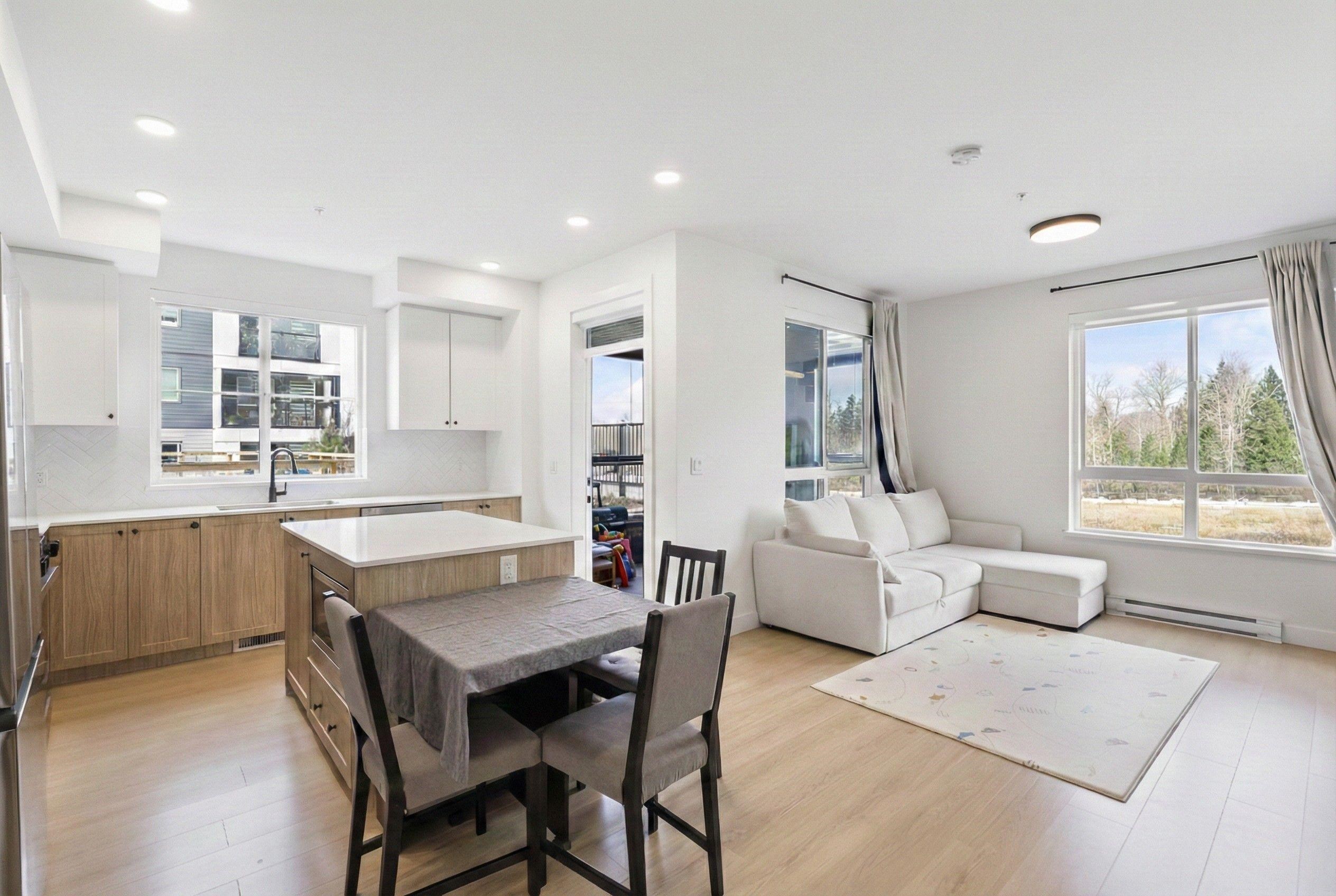 GROUND FLOOR CORNER 2 BED 2 BATH at Hayer Town Centre, located on the quiet courtyard side of Building B. This well designed home offers 911 sqft plus a 150 sqft solarium with gas hookup, creating true year round usable space. The primary bedroom features a walk in closet and an ensuite with double sinks. The kitchen is designed for everyday living with a gas range, quartz countertops, soft close cabinetry, and a window over the sink. Upgrades include laminate flooring throughout and full air conditioning. ...