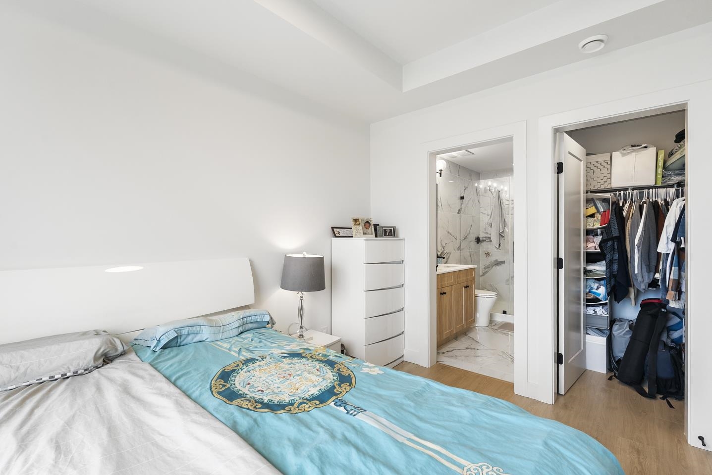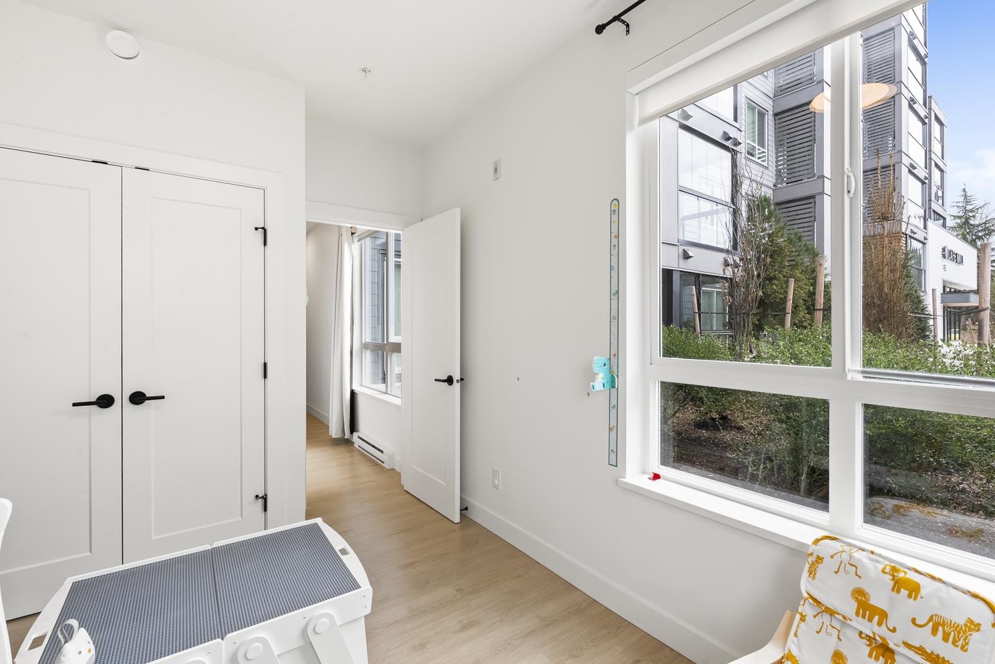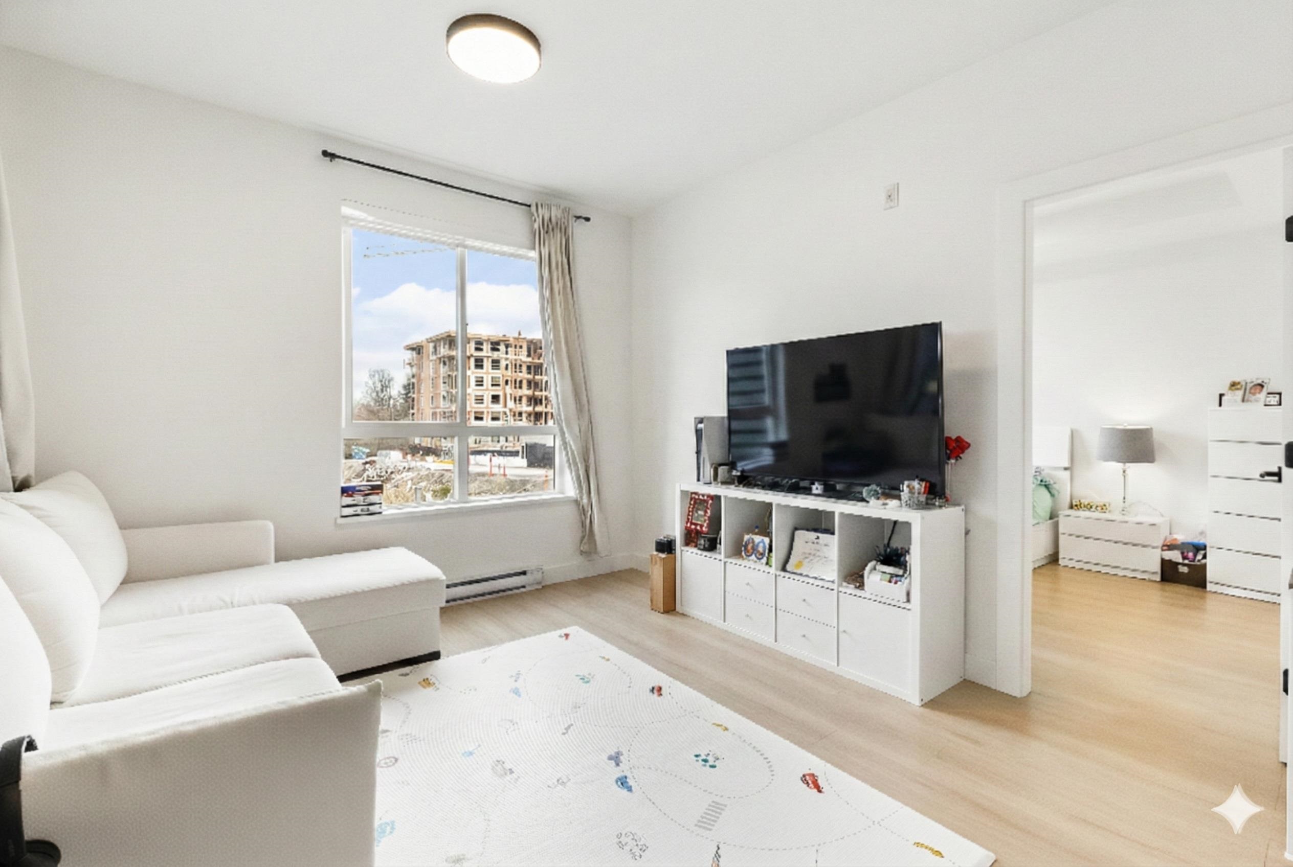 GROUND FLOOR CORNER 2 BED 2 BATH at Hayer Town Centre, located on the quiet courtyard side of Building B. This well designed home offers 911 sqft plus a 150 sqft solarium with gas hookup, creating true year round usable space. The primary bedroom features a walk in closet and an ensuite with double sinks. The kitchen is designed for everyday living with a gas range, quartz countertops, soft close cabinetry, and a window over the sink. Upgrades include laminate flooring throughout and full air conditioning. ...