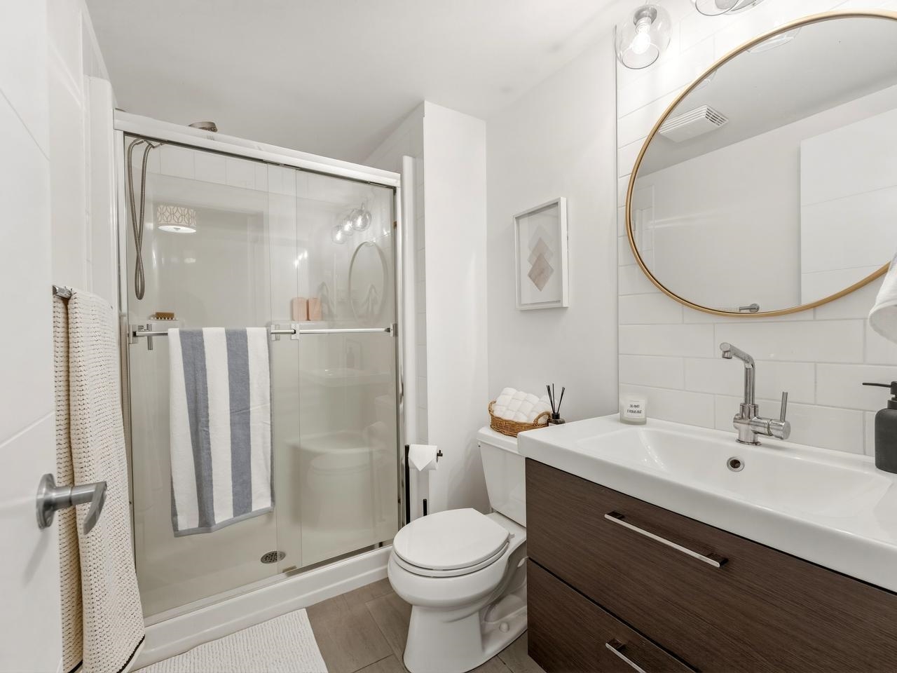 Beautifully renovated 2 bed - 2 bath corner unit in the heart of Lower Lonsdale. Offering over 900 sq/ft of thoughtfully designed interior space, this home perfectly blends comfort, style & functionality. Step inside to discover a bright, south-facing layout flooded with natural light. The fully renovated interior showcases meticulous attention to detail, creating a warm, inviting atmosphere with timeless character. The chef-inspired kitchen features abundant windows. The spacious living area has a coz...