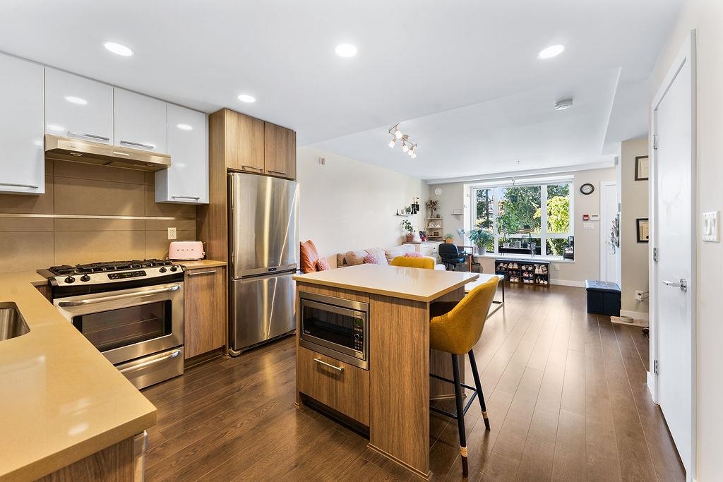 Welcome to Lift at UniverCity on Burnaby Mountain. This 2 bed, 2 bath townhouse-style home offers a private front-entry patio, open-concept living and dining area, and a modern kitchen with stone counters, stainless steel appliances, and plenty of storage. The spacious bedrooms include a primary with ensuite and generous closet space. Features include in-suite laundry, 1 EV ready parking stall, and 1 storage locker. Ideally located just steps to SFU, shops, restaurants, banks, and transit, with a playground...
