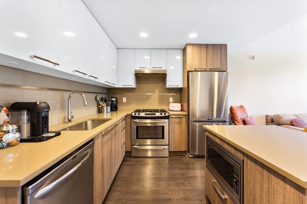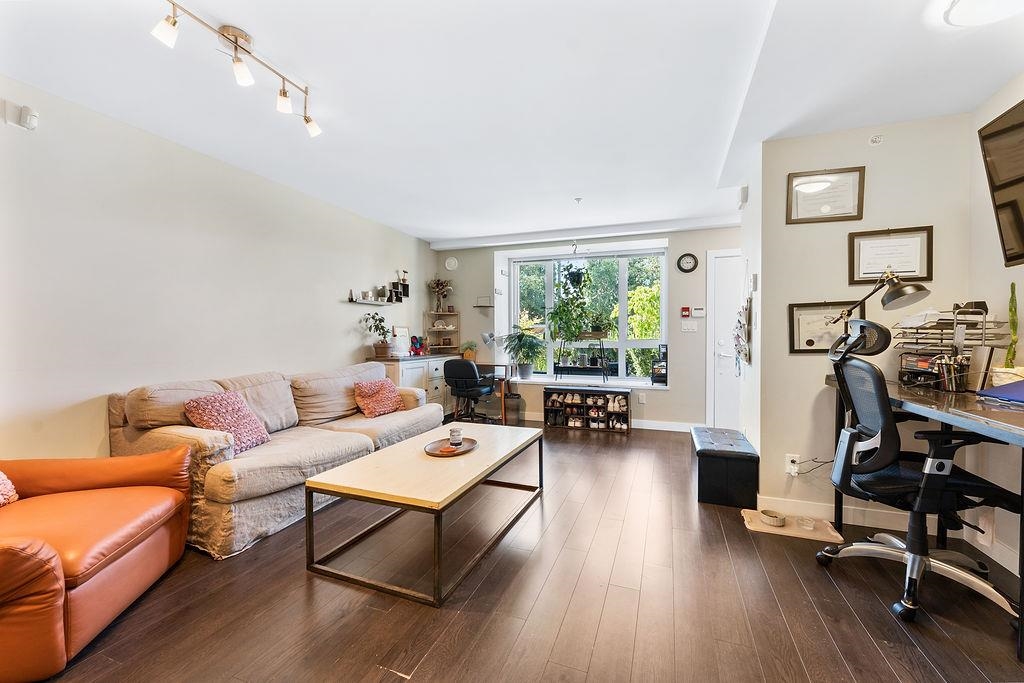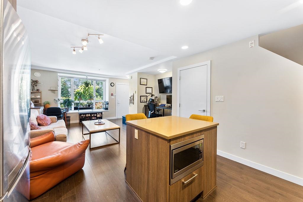 Welcome to Lift at UniverCity on Burnaby Mountain. This 2 bedroom, 2 bathroom townhouse-style home features a private front entry patio, a bright open-concept living and dining space, and a modern kitchen complete with stone countertops, stainless steel appliances, and ample storage. Both bedrooms are well-sized, including a primary suite with its own ensuite and generous closet space. Additional highlights include in-suite laundry, one EV-ready parking stall, and a storage locker. Enjoy an unbeatable locat...