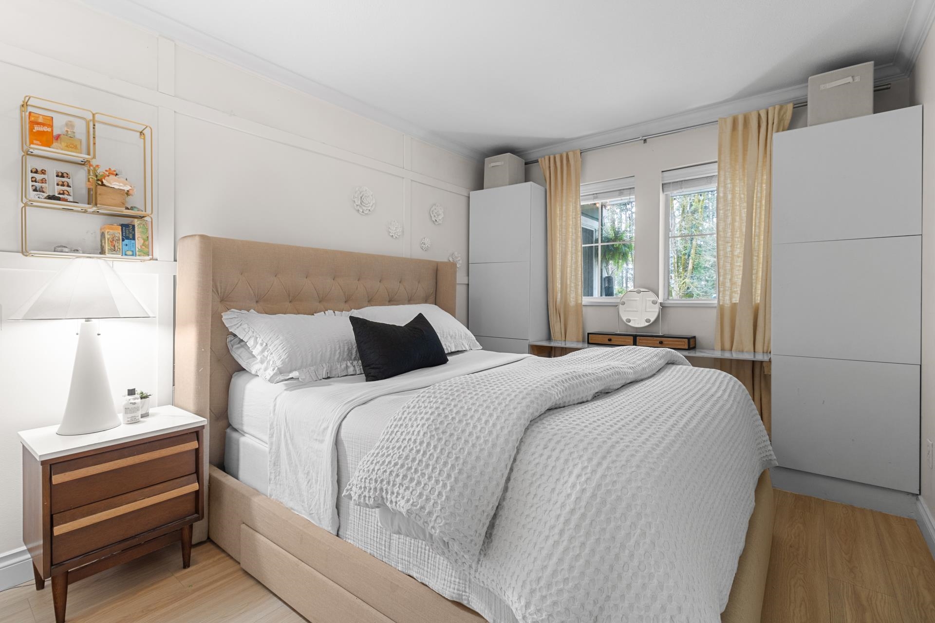 LAKESIDE TERRACE – ½ BLOCK FROM LAFARGE LAKE! Meticulously maintained 2 bed, 2 bath + flex home w/ a townhome-style feel. Flex space off primary bed is perfect for a nursery/child’s room/home office. Private walk-out patio w/ its own entrance—ideal for pets & guests. Bright west-facing exposure w/ an open, efficient layout. Upgraded kitchen & bathrooms w/ stainless steel appliances & floating shelves, plus laminate floors, crown molding & ample storage. Incl. 1 underground parking stall & 1 locker. Well-man...