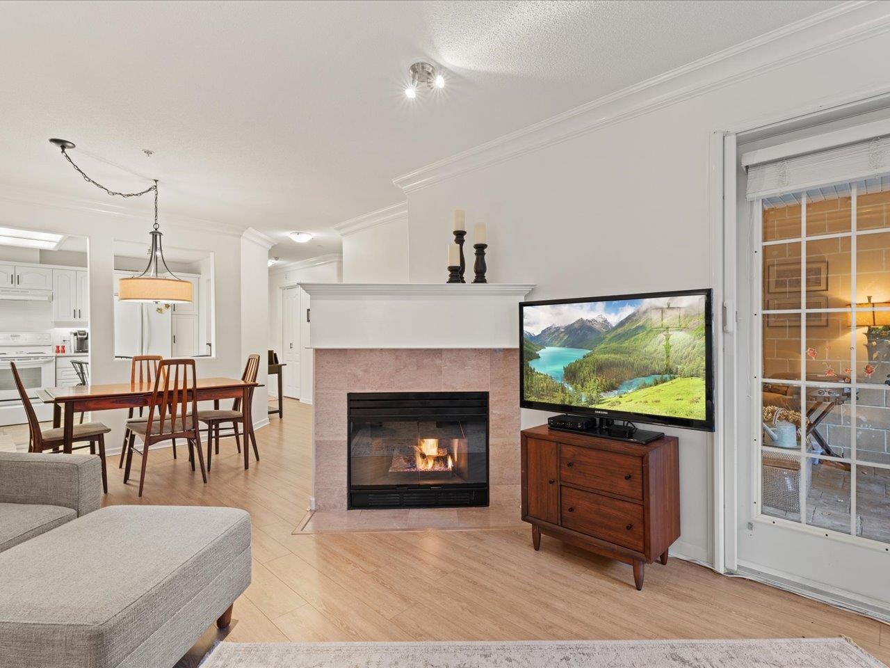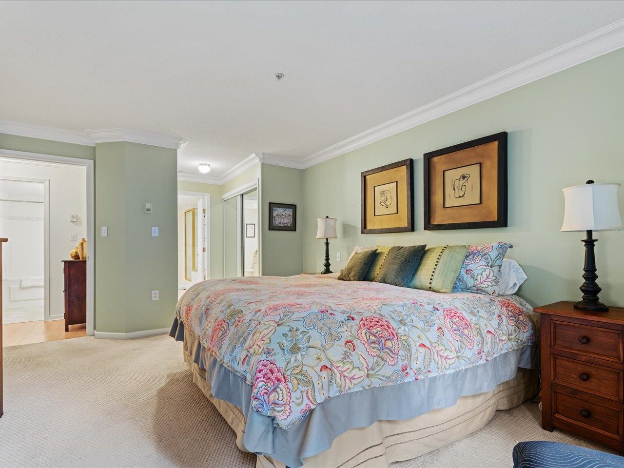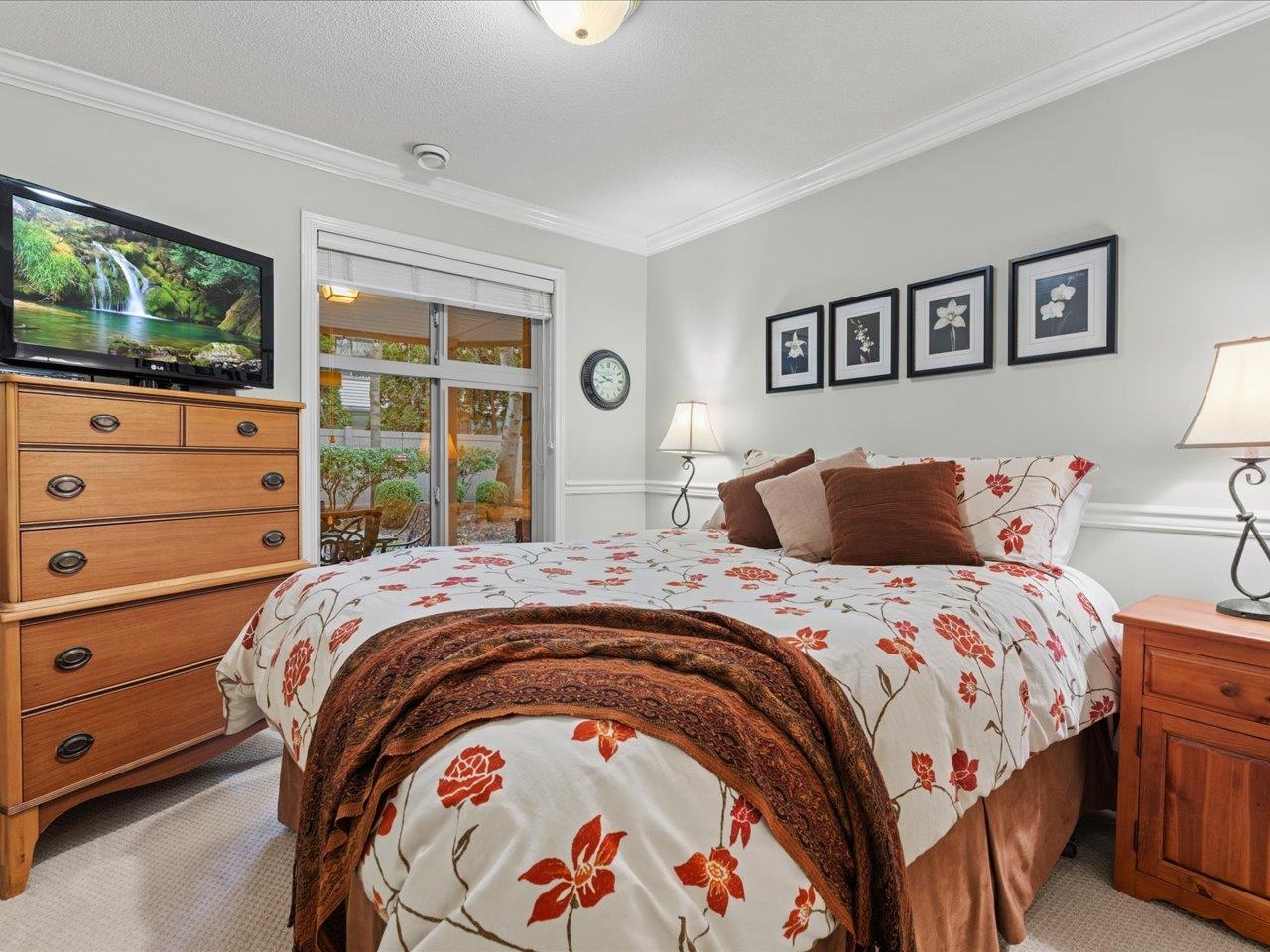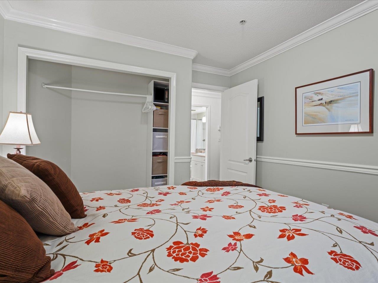 STRATFORD GARDENS - Sought-after ground-level suite on the quiet side of the complex. Meticulously cared for, this spacious 1120sqft 2 bed/2 bath home offers a thoughtful layout and inviting living space with the added bonus of a private, west-exposed patio. Crown moldings and a cozy gas fireplace add timeless character. The generous primary bedroom features a full ensuite with soaker tub and separate shower. Beautifully maintained grounds with serene fountains and manicured gardens create a peaceful, relax...