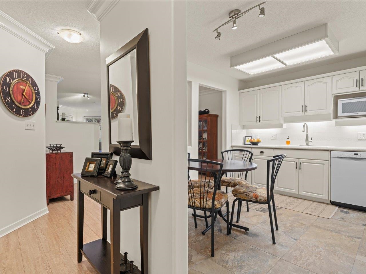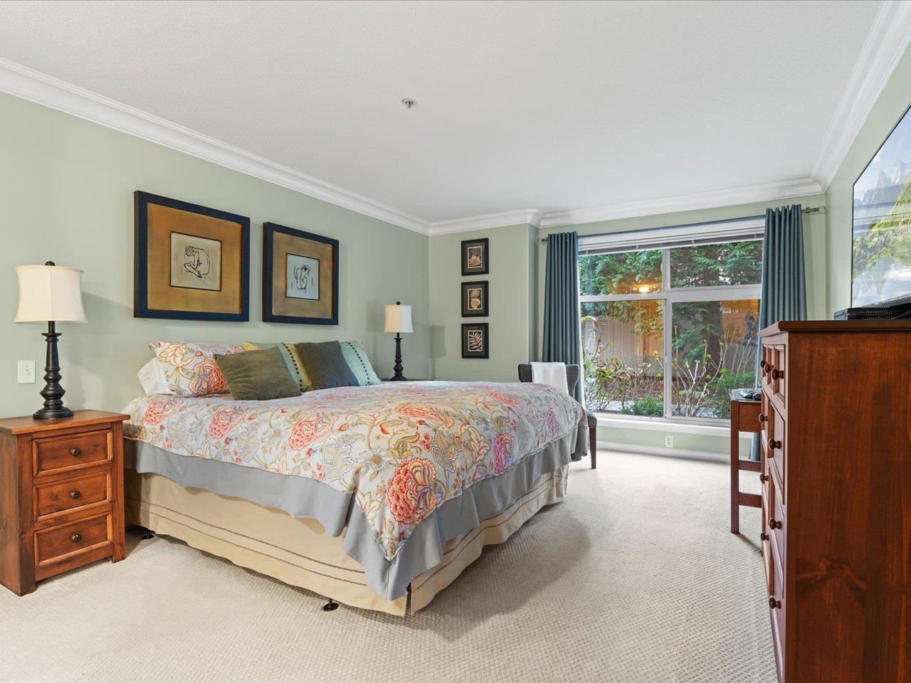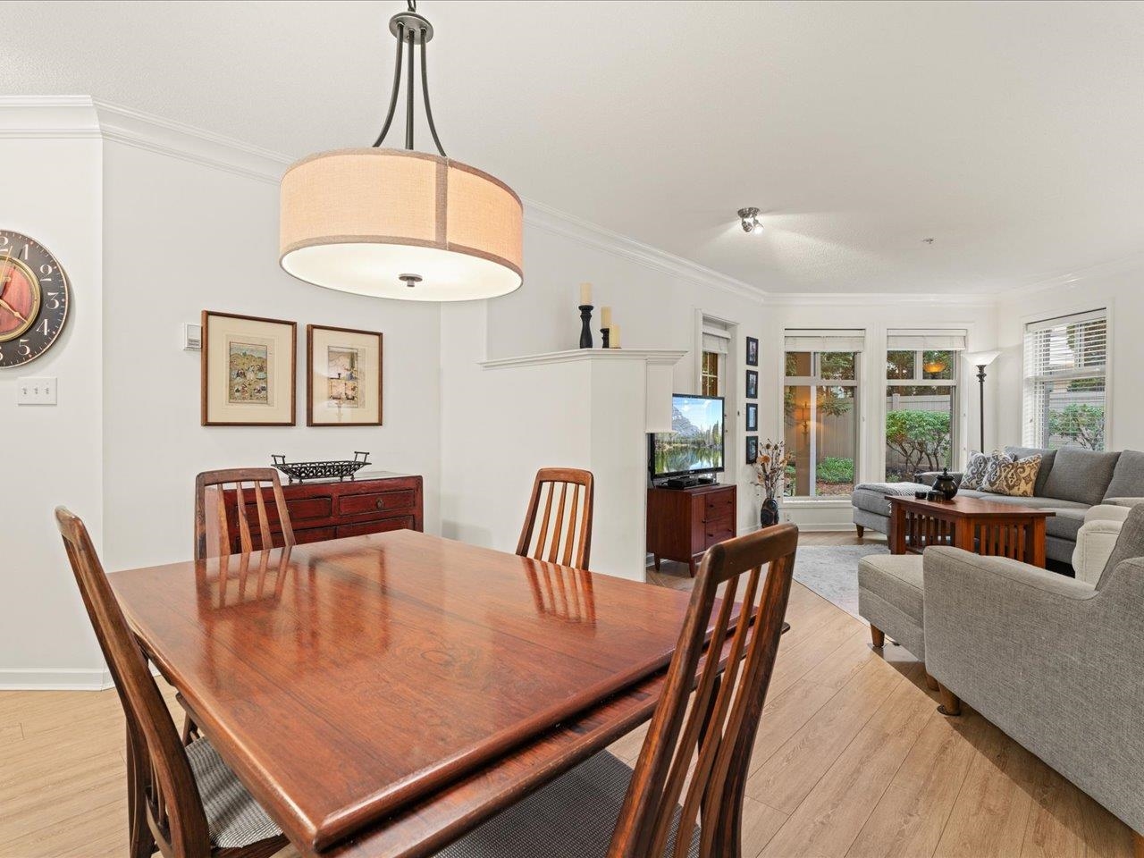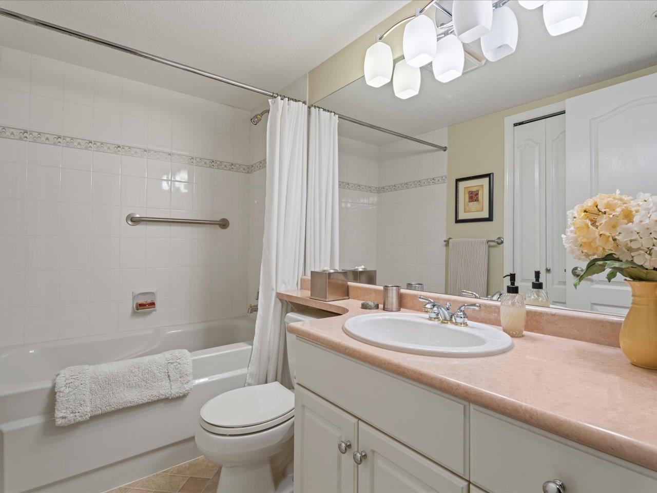 STRATFORD GARDENS - Sought-after ground-level suite on the quiet side of the complex. Meticulously cared for, this spacious 1120sqft 2 bed/2 bath home offers a thoughtful layout and inviting living space with the added bonus of a private, west-exposed patio. Crown moldings and a cozy gas fireplace add timeless character. The generous primary bedroom features a full ensuite with soaker tub and separate shower. Beautifully maintained grounds with serene fountains and manicured gardens create a peaceful, relax...