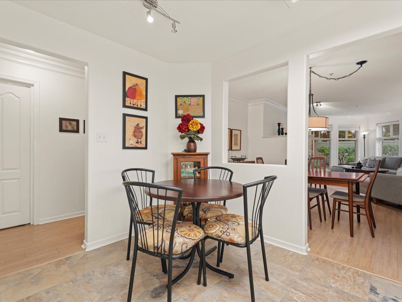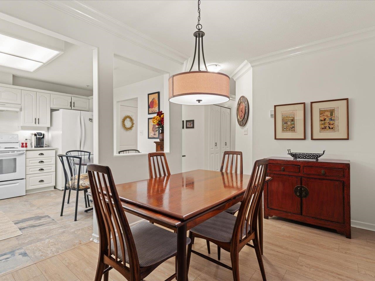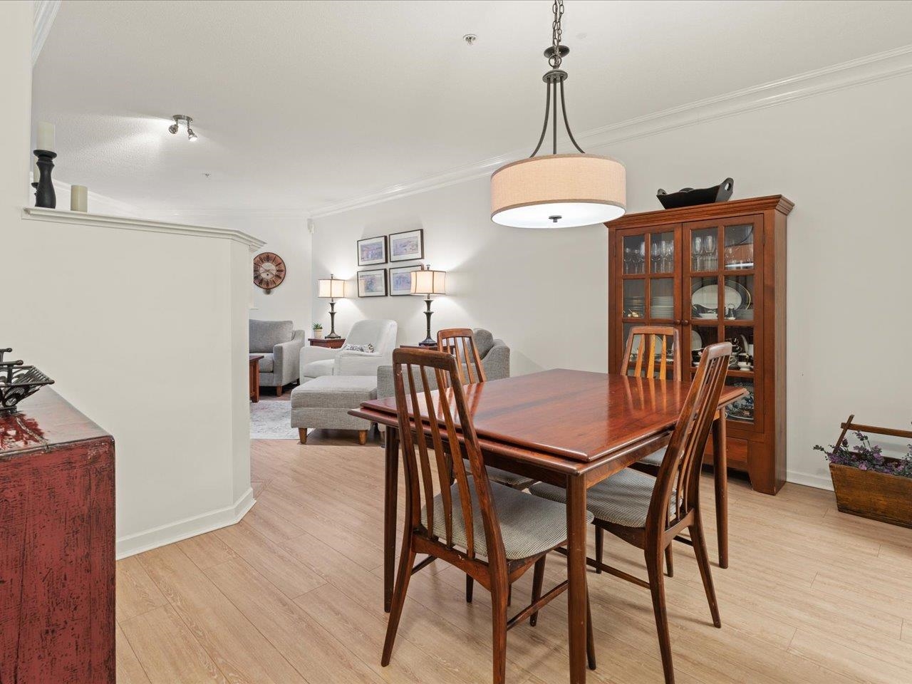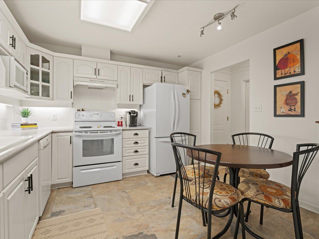 STRATFORD GARDENS - Sought-after ground-level suite on the quiet side of the complex. Meticulously cared for, this spacious 1120sqft 2 bed/2 bath home offers a thoughtful layout and inviting living space with the added bonus of a private, west-exposed patio. Crown moldings and a cozy gas fireplace add timeless character. The generous primary bedroom features a full ensuite with soaker tub and separate shower. Beautifully maintained grounds with serene fountains and manicured gardens create a peaceful, relax...