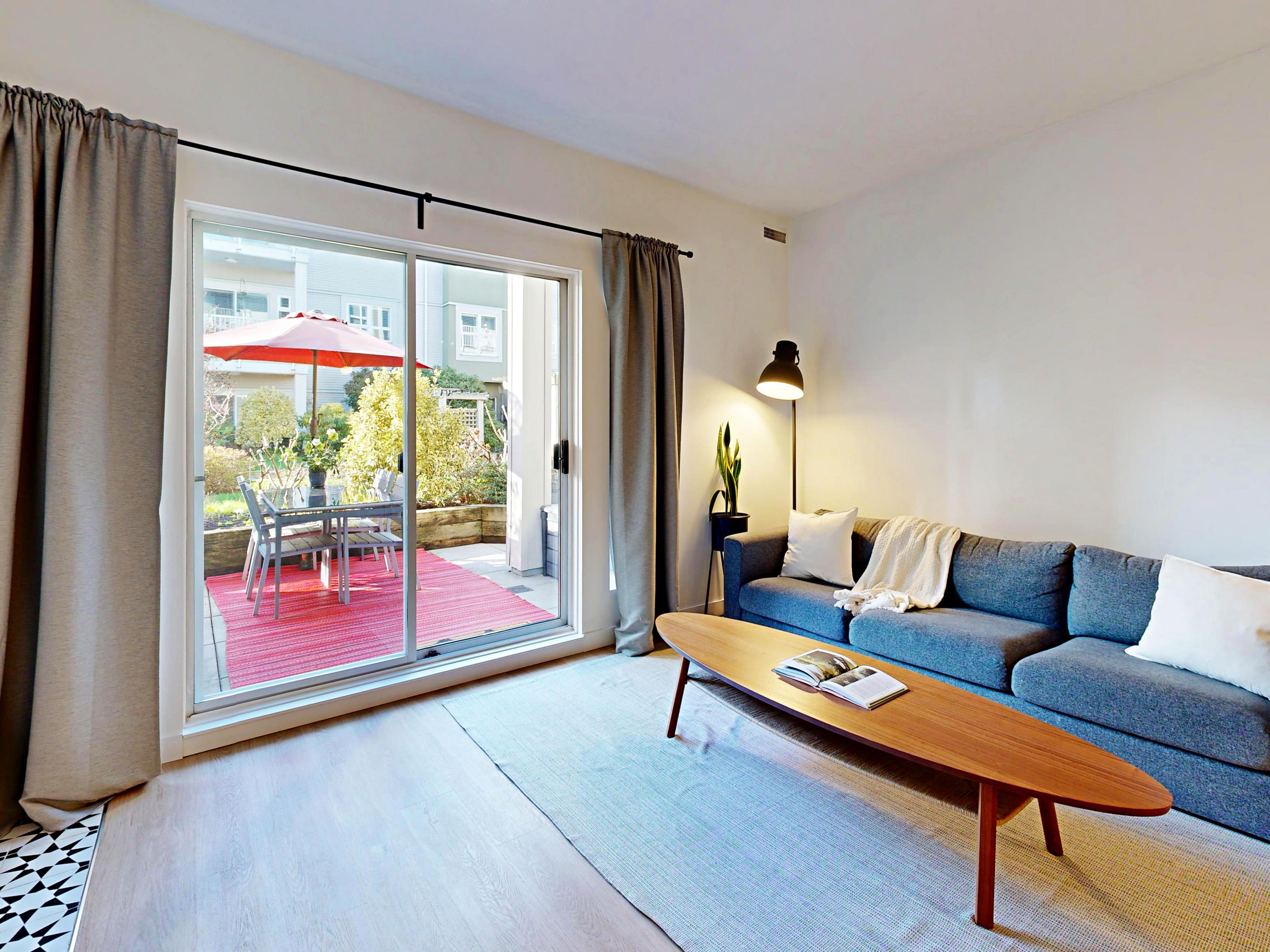 Fabulously updated with meticulous detail under professional designer oversight! Move right in & enjoy this stunning unit with nothing to do but unpack. All new kitchen, bathroom, flooring, lighting, accessories & much more - detailed list on feature sheet. Open layout with central living area that flows onto the sunny, private patio. Well positioned in the building with only 1 adjoining neighbouring unit & well removed & buffered from the street. The patio is on a quiet & beautifully landscaped courtyard. ...