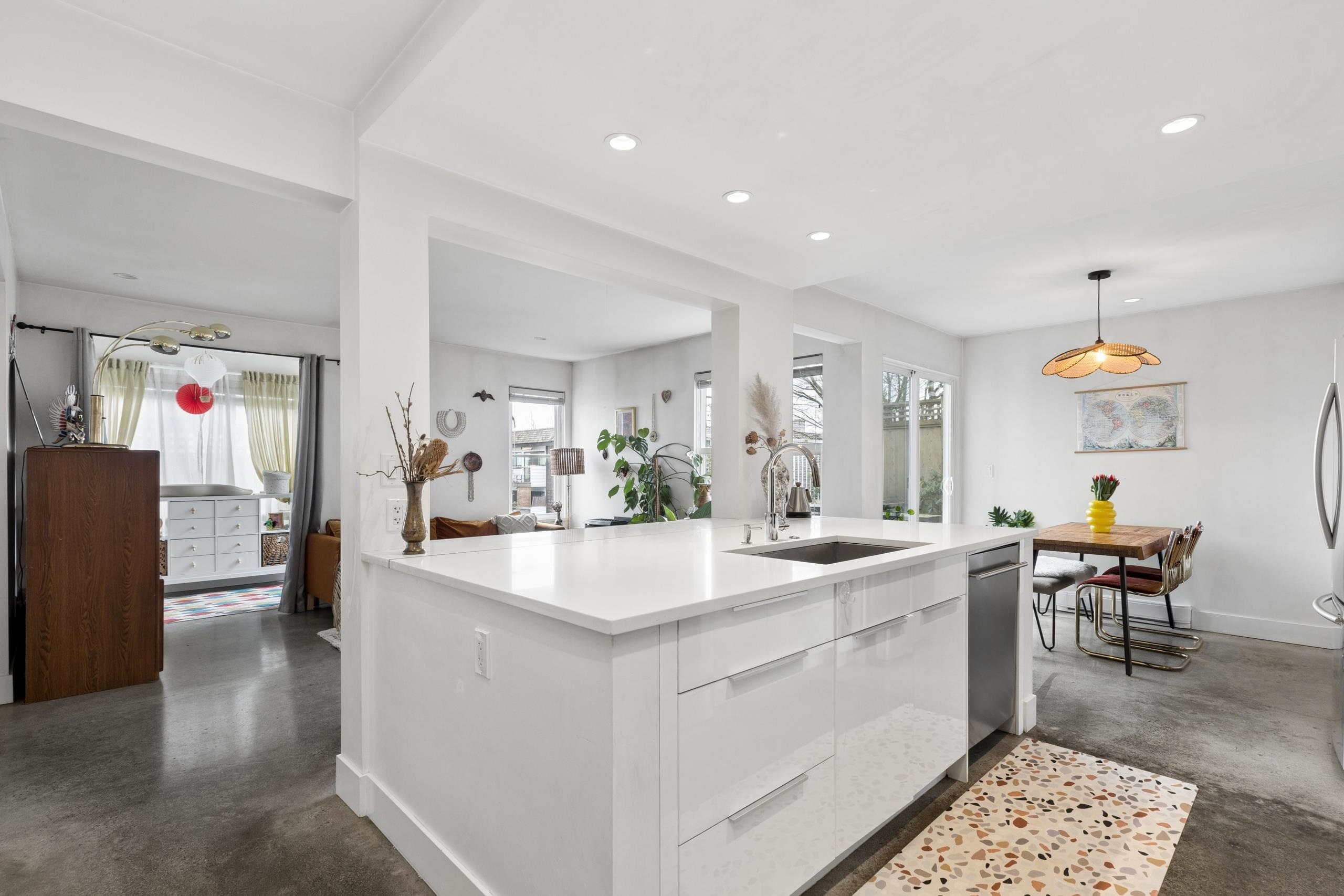 Welcome to St. George Place in the heart of Mount Pleasant. This well kept 1 bed + den corner home offers a smart layout and great indoor outdoor flow. Two private patios totalling over 440 sqft give you rare outdoor space that feels like an extension of the home, ideal for morning coffee, dinners, or entertaining. Inside, the living area is warm and inviting with a gas fireplace and easy access to the dining space and patio. The kitchen is functional and stylish with a large island, quality cabinetry, and ...