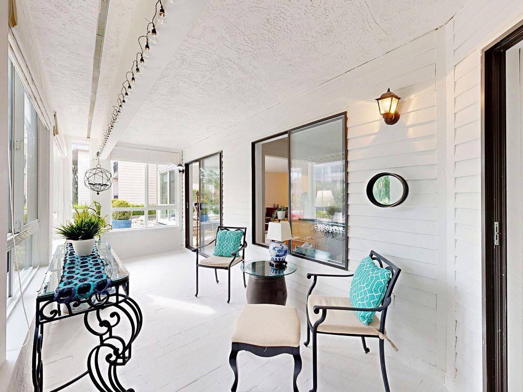 Discover this charming two-bedroom, one-and-a-half-bath boutique condo, with a modernized kitchen perfect for any chef. Freshly painted interiors enhance its 1,013 Square foot layout, including a sunlit 138 Square foot solarium with southeast-facing exposure. Enjoy a spacious 66 Square foot storage locker and a secure underground gated parking spot (#12). Community lounge with dinette available for larger group events. Nestled on a quiet street, it's steps away from the Semiahmoo Shopping Centre, restaurant...